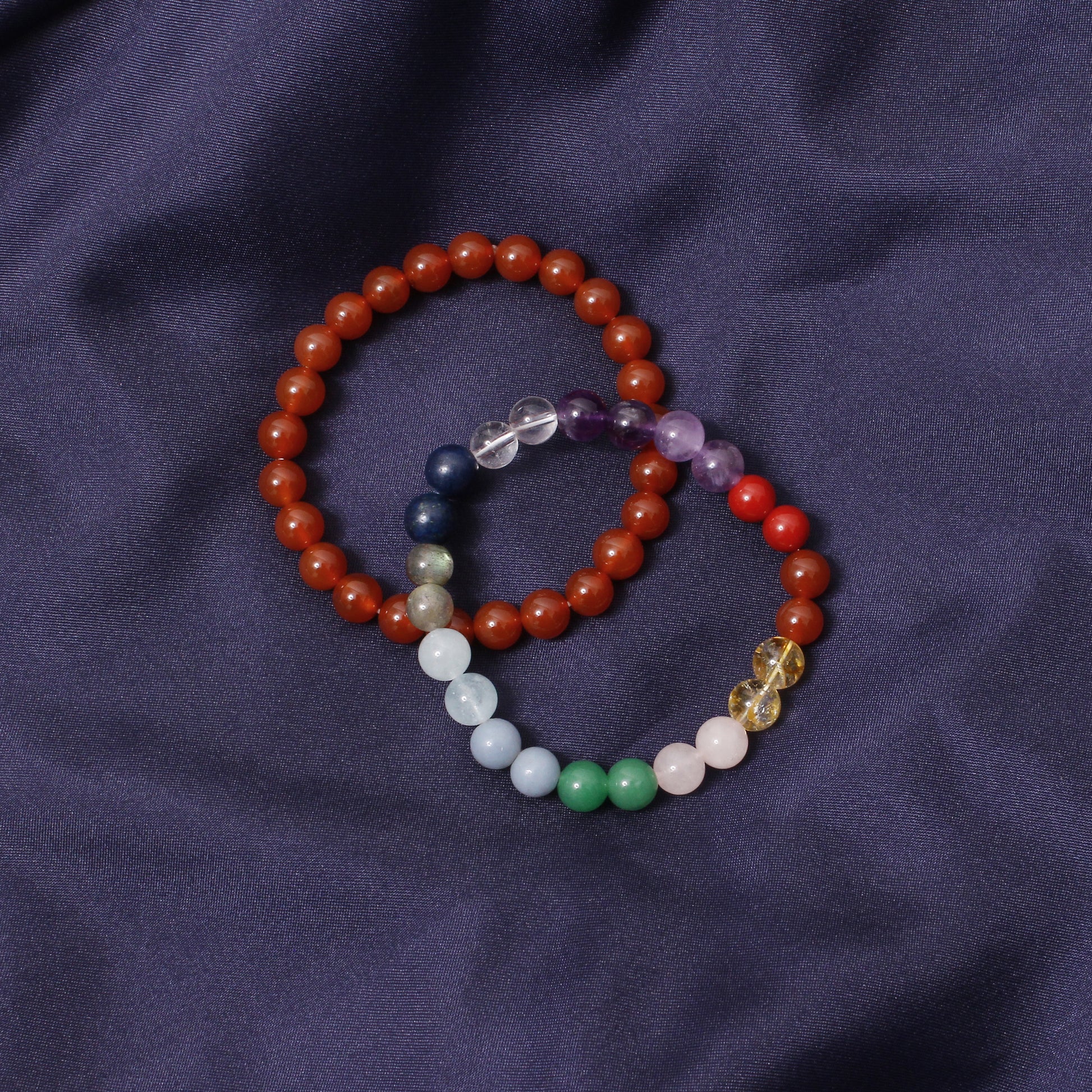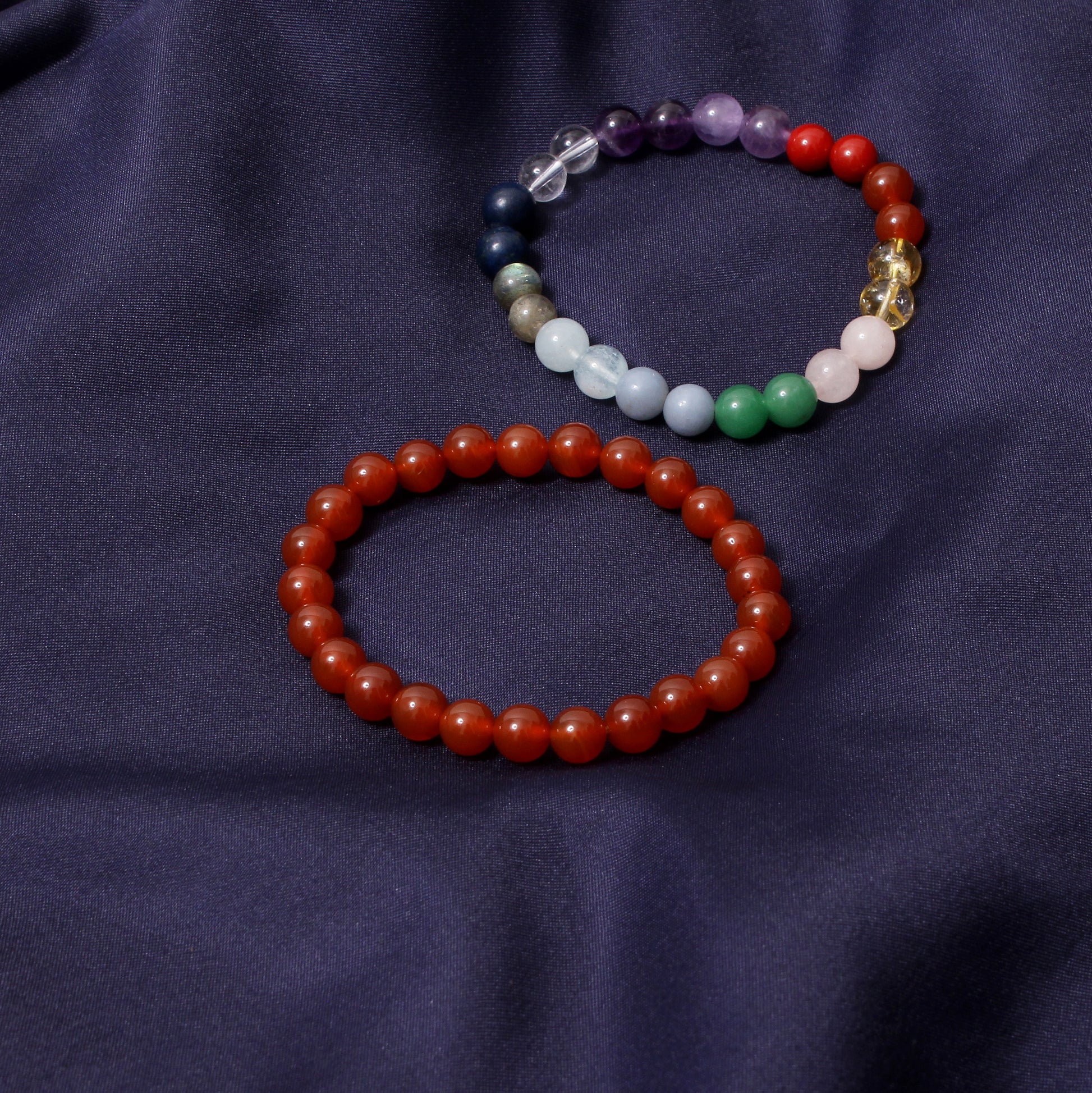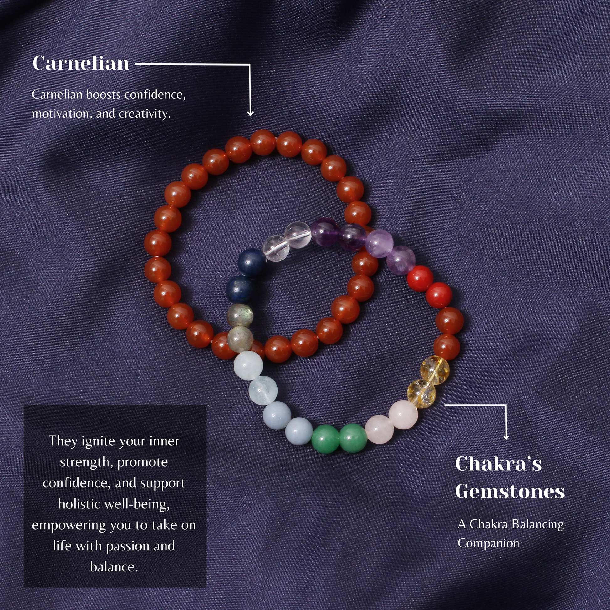 7 Chakras + Carnelian Healing Stretchable Gemstone Bracelet – Confidence, Creativity & Balance