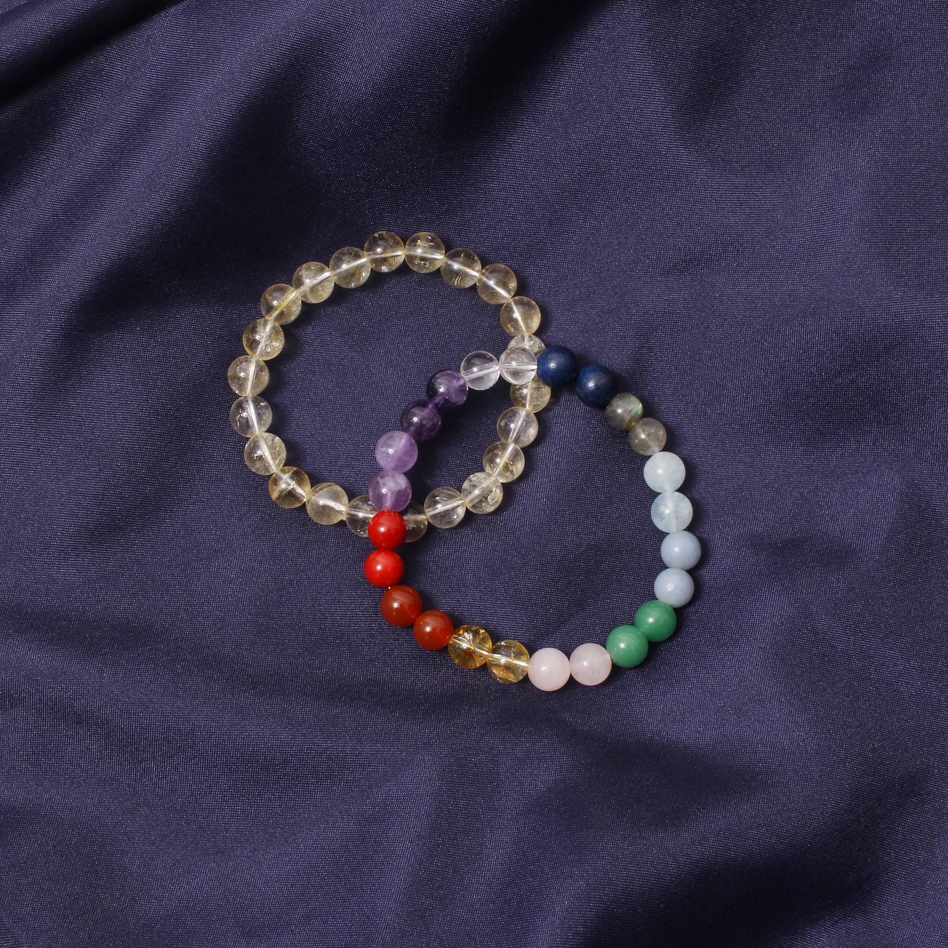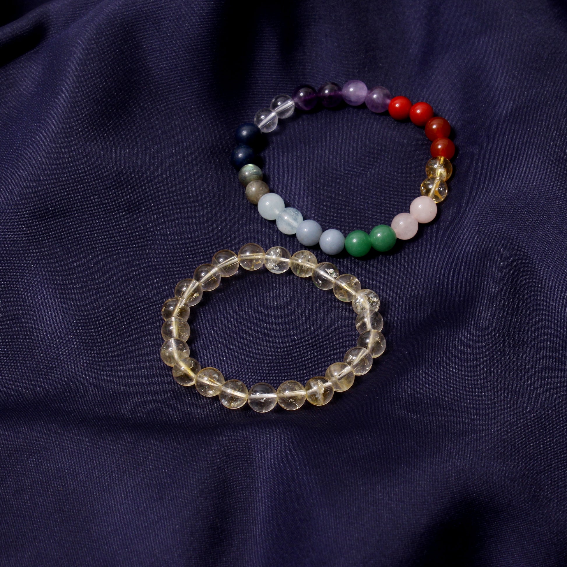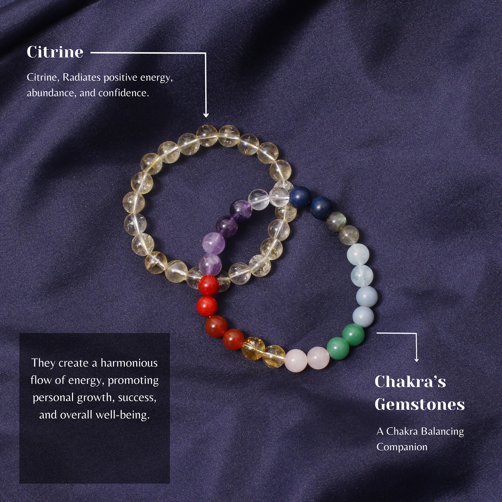 7 Chakras + Citrine Healing Stretchable Gemstone Bracelet – Energy, Abundance & Confidence