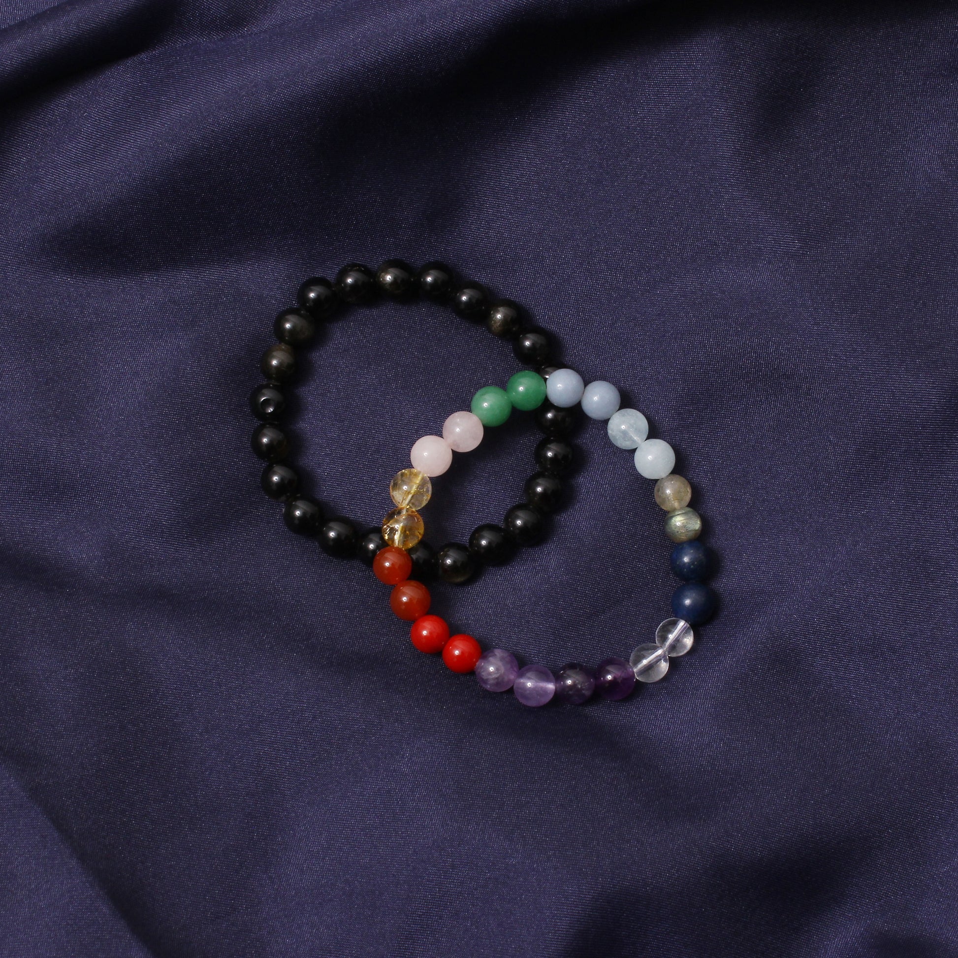 ITEM : 7 Chakras + Gold Sheen Obsidian Healing Stretchable Gemstone Bracelet