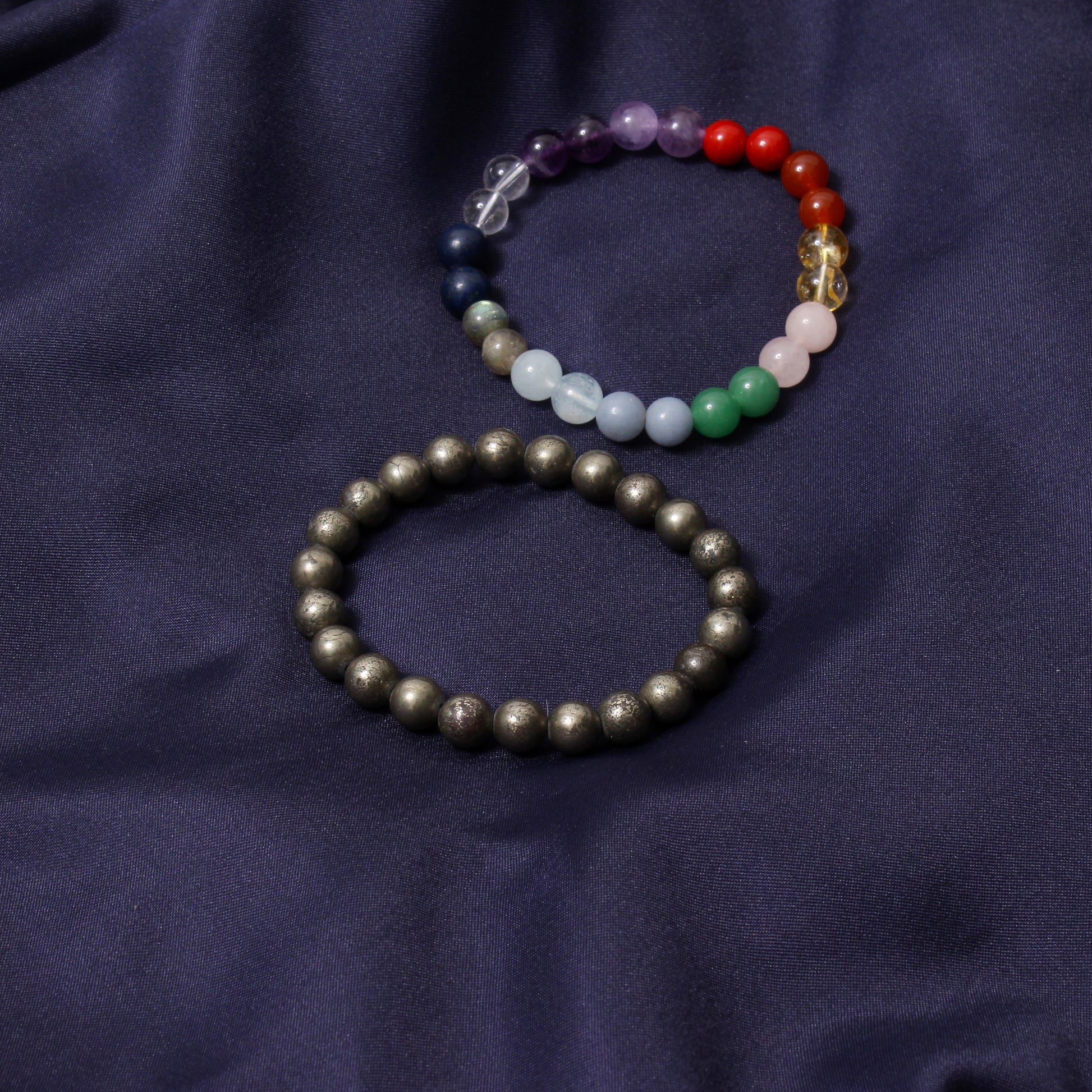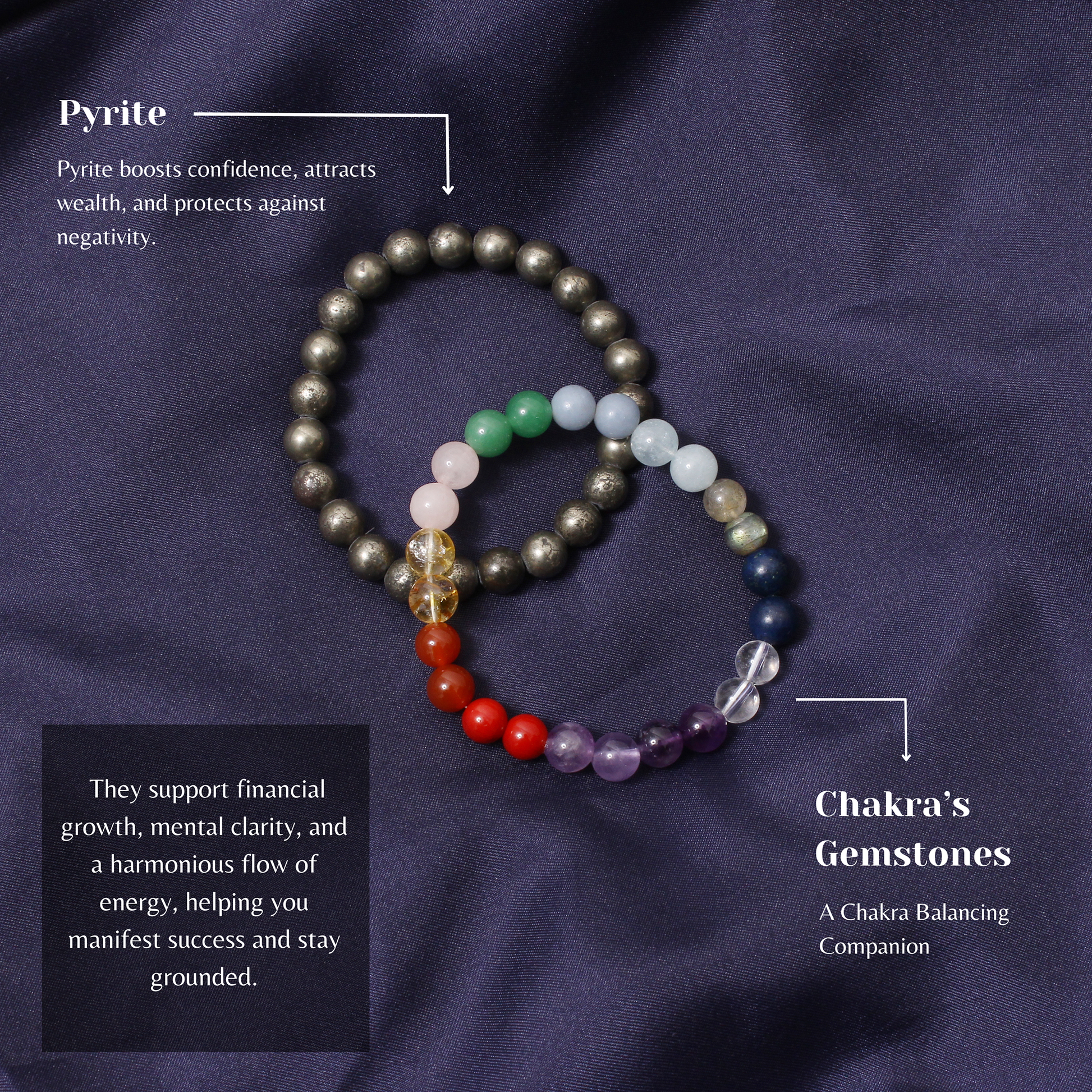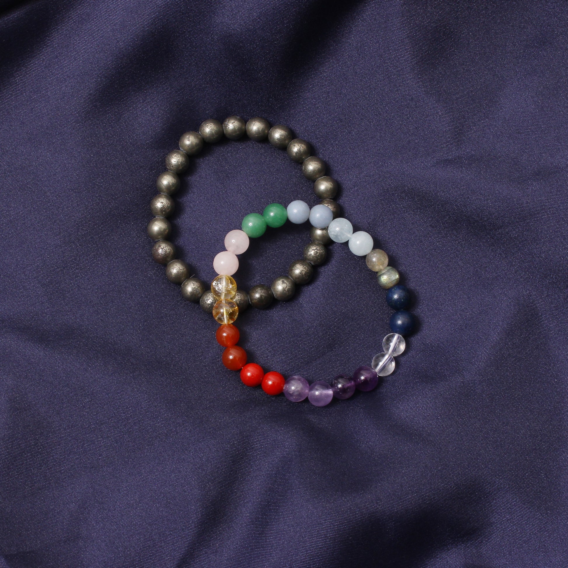 7 Chakras + Pyrite Healing Stretchable Gemstone Bracelet – Confidence, Wealth & Protection