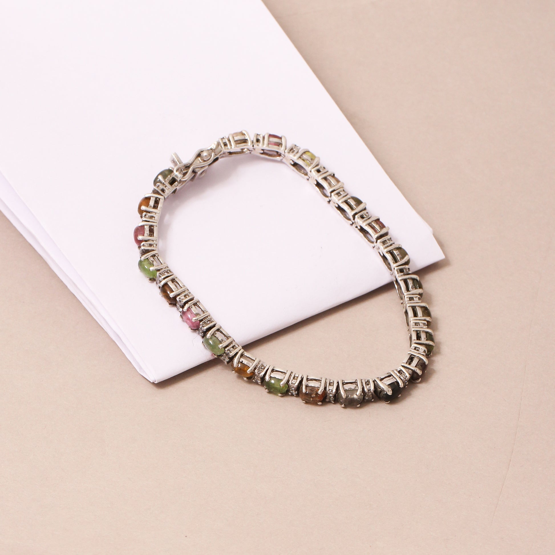 ITEM : 925 Stering Silver Multi Tourmaline Gemstone Bracelet