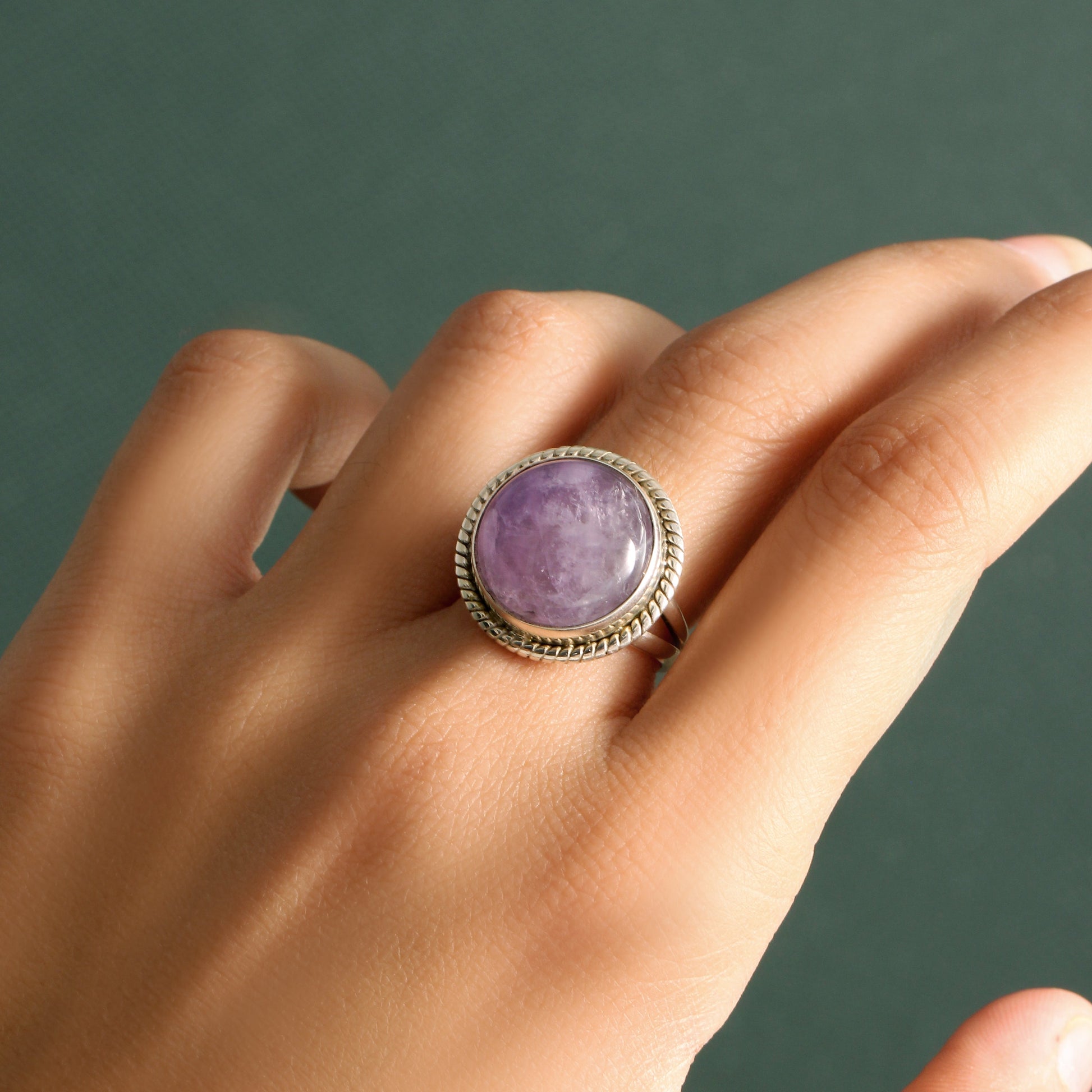 925 Sterling Silver Amethyst Gemstone Ring – Calming Purple Gemstone for Balance & Spiritual Growth