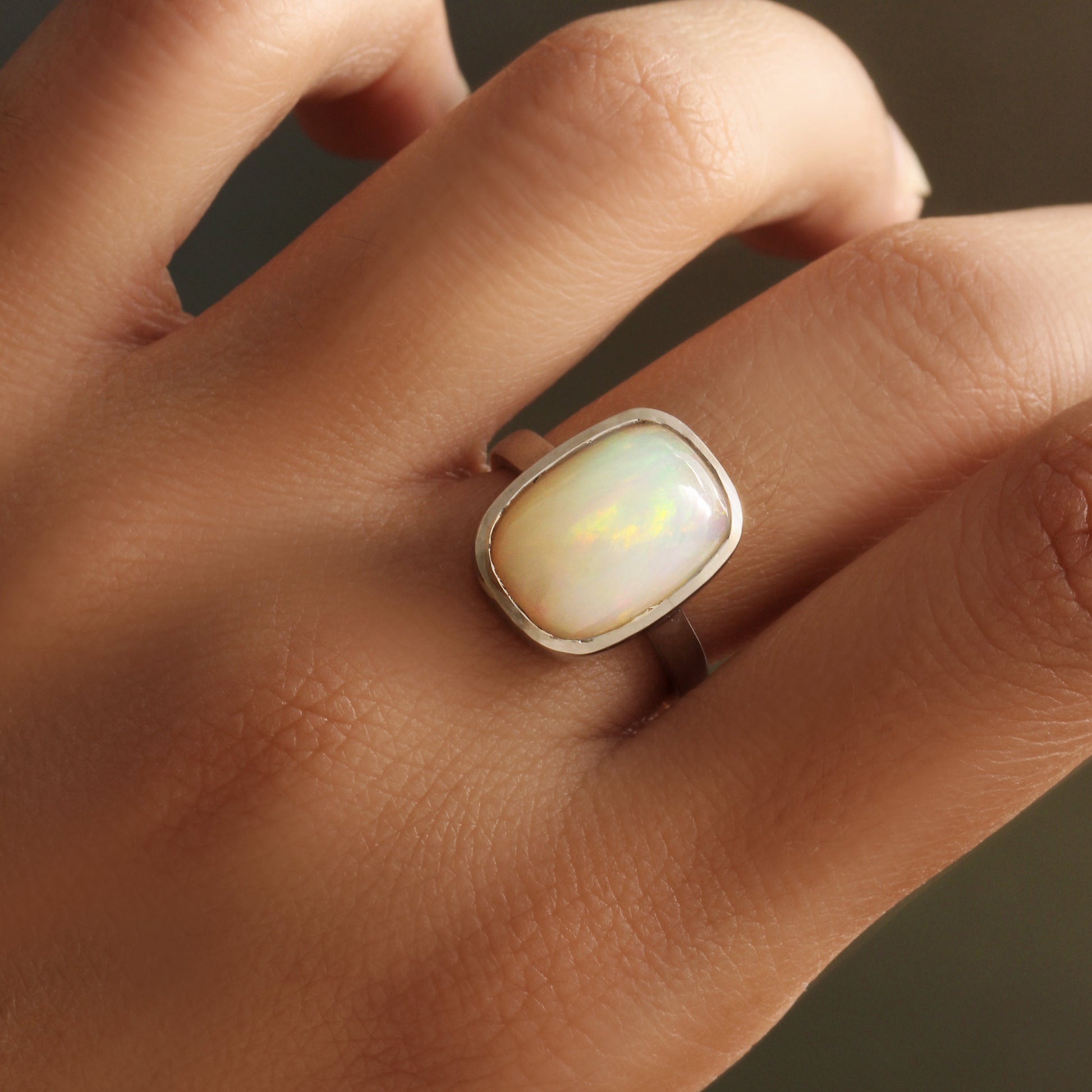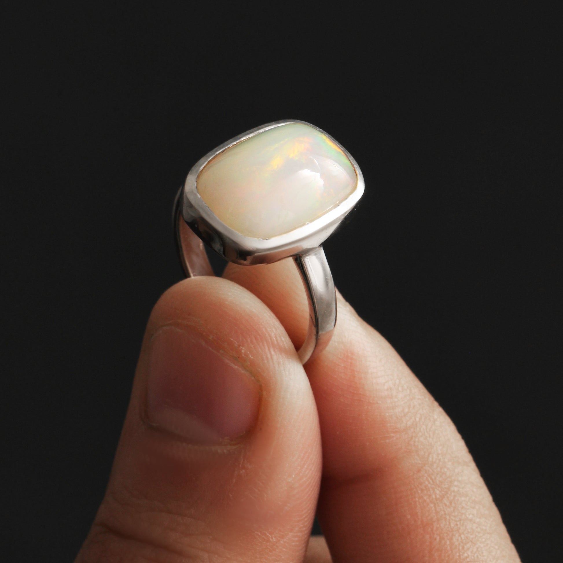 925 Sterling Silver Ethiopian Opal Gemstone Ring – Iridescent Elegance & Emotional Clarity