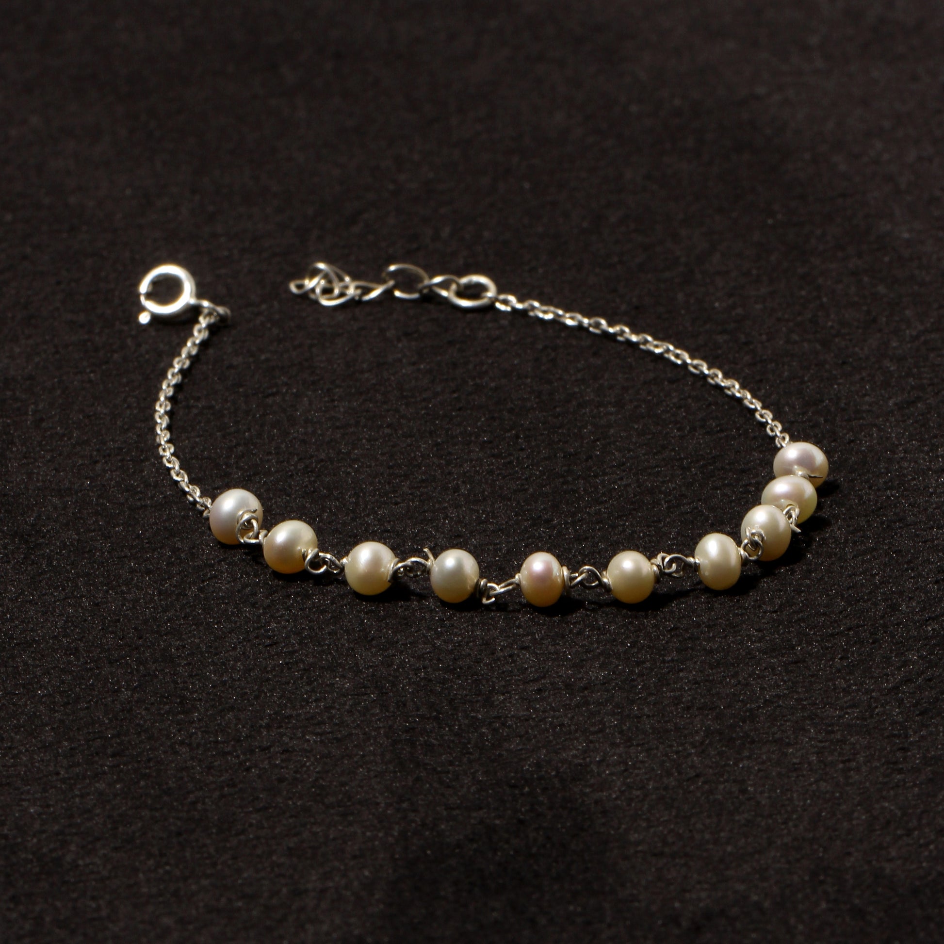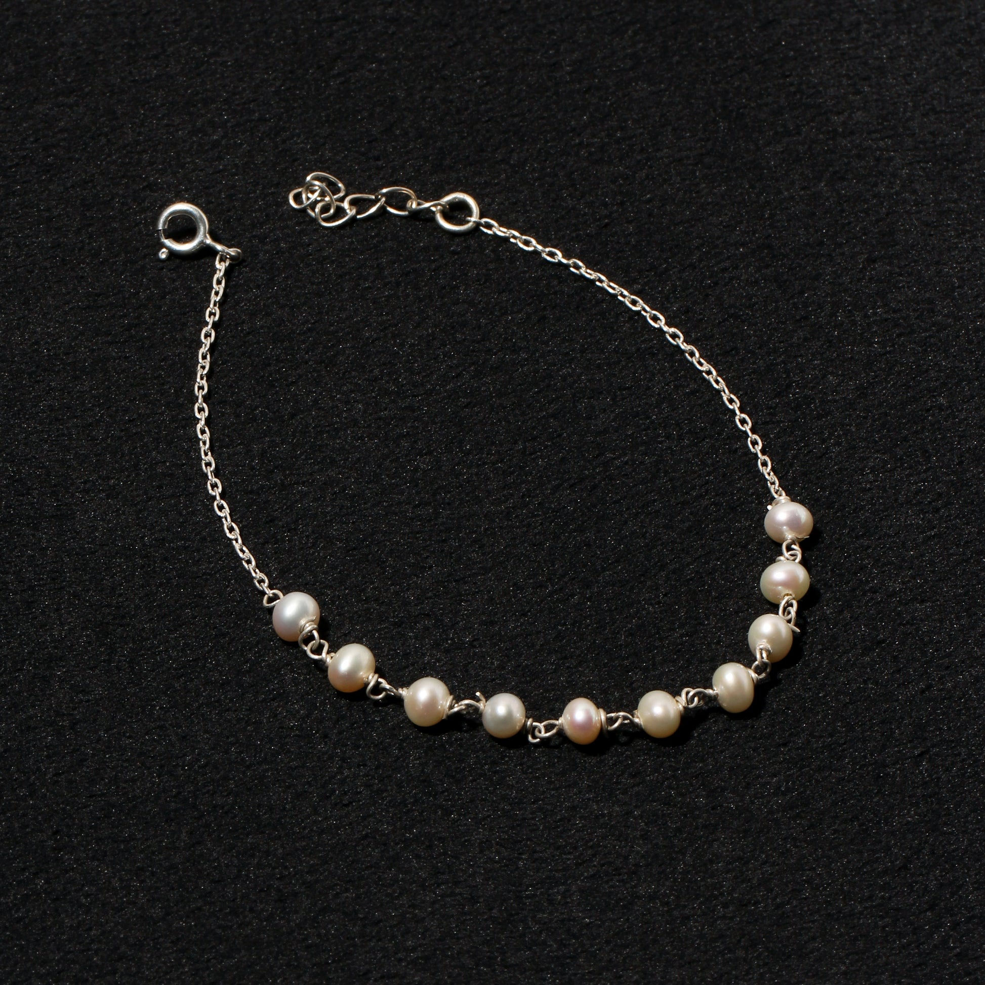 925 Sterling Silver Freshwater Pearl Rosary Chain Bracelet – Classic Elegance & Natural Grace