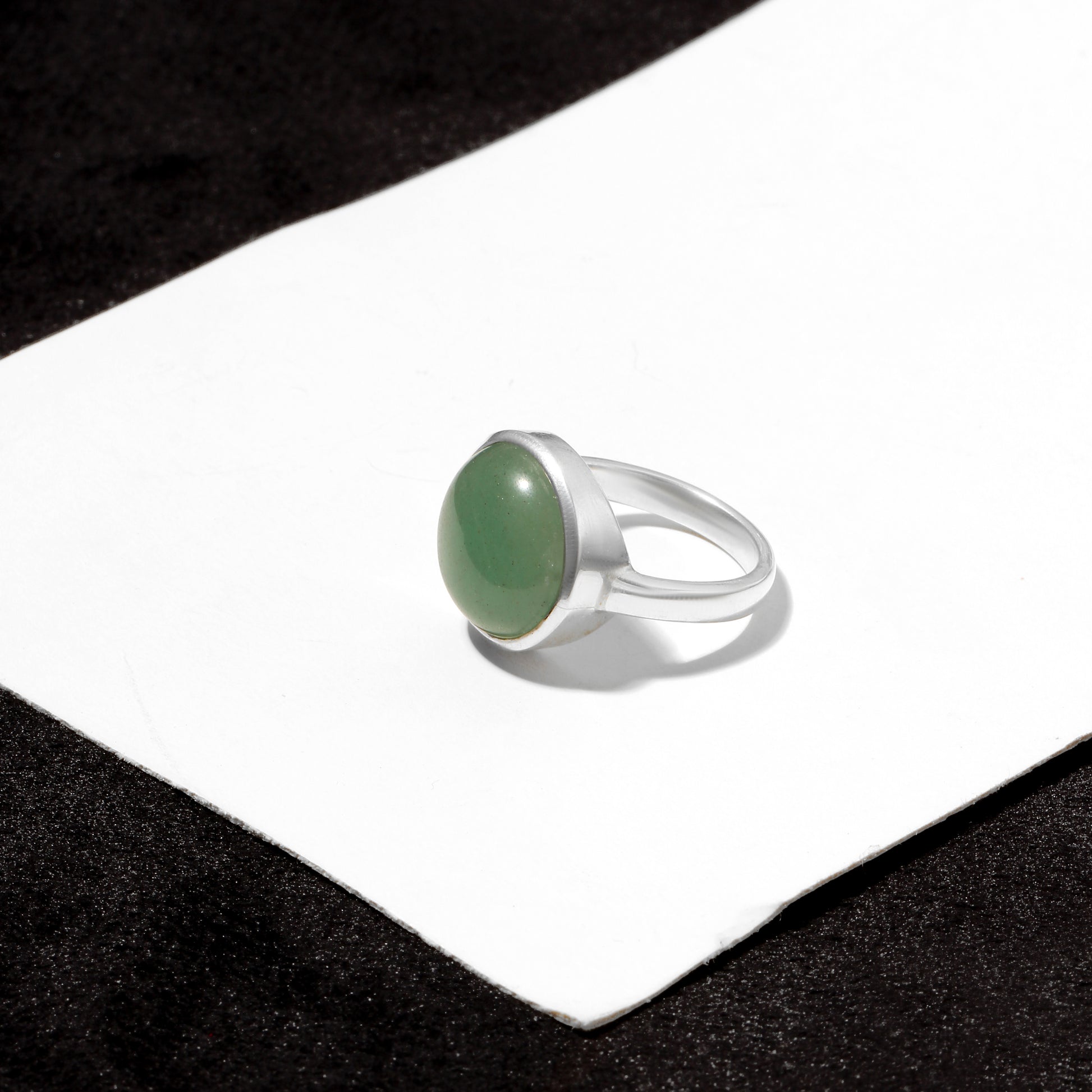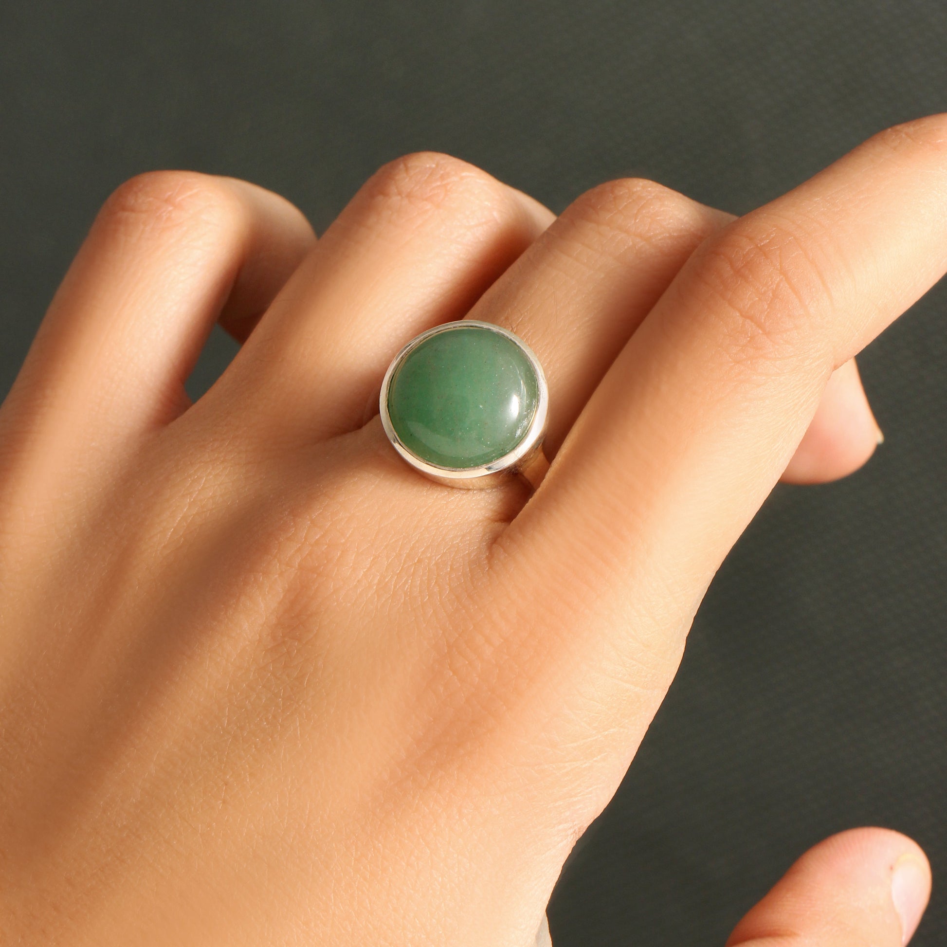 Elevate your energy and style with this elegant green aventurine ring, known as the Stone of Opportunity. Set in 925 sterling silver, its smooth round cabochon cut promotes calmness, prosperity, and emotional balance. A perfect healing gift for confidence, success, and everyday positivity.