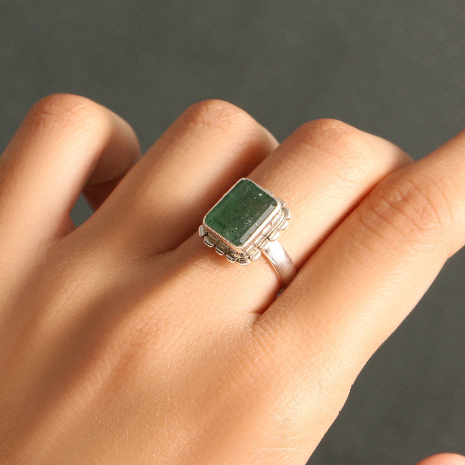 925 Sterling Silver Green Strawberry Quartz Gemstone Ring – Heart Chakra Stone for Love & Positivity