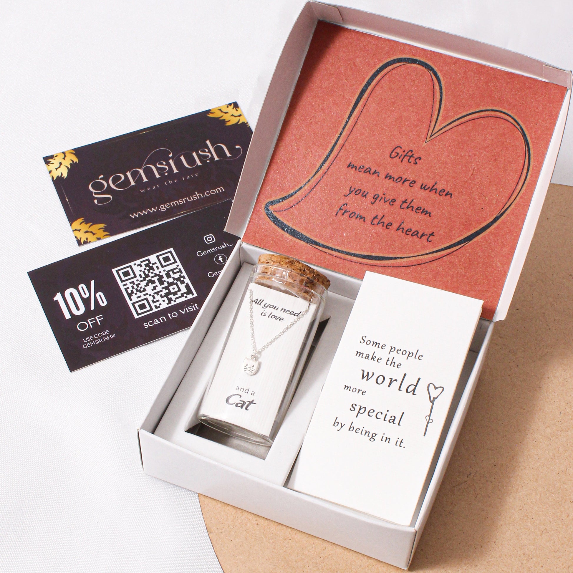 Celebrate your love for cats with this elegant minimalist cat pendant necklace. Crafted in sterling silver, this delicate piece makes the perfect gift for cat lovers. Thoughtfully packaged in a charming keepsake bottle, it's a heartwarming way to share joy and appreciation. Ideal for birthdays, anniversaries, or just because!