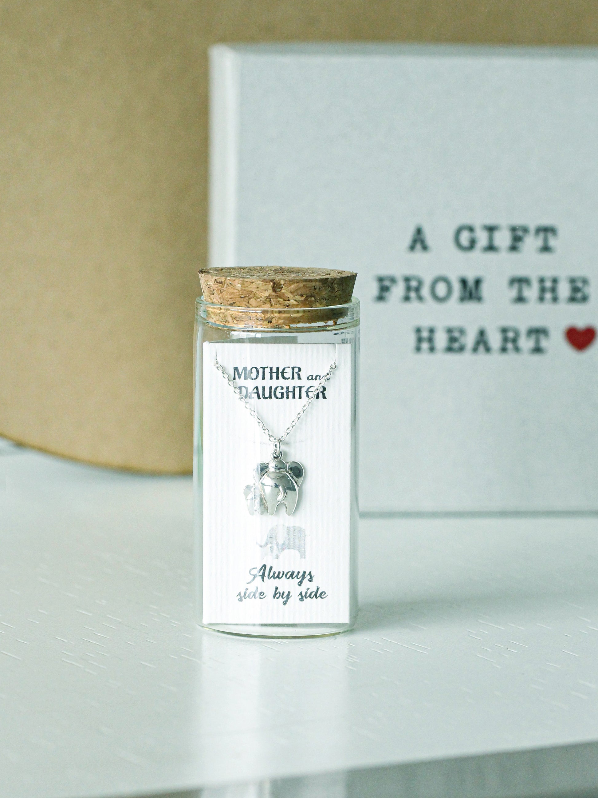 925 Sterling Silver Mother & Daughter Elephant Pendant Necklace – Always Side by Side | Gift Set