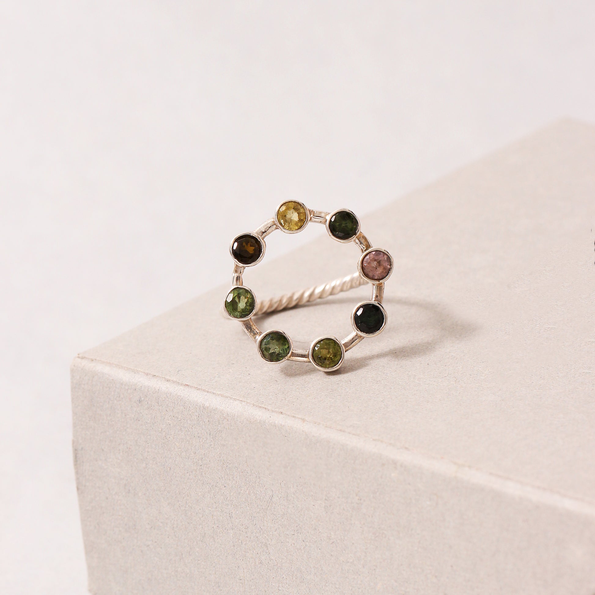 925 Sterling Silver Multi-Color Tourmaline Circle Ring – Vibrant Gemstone Elegance