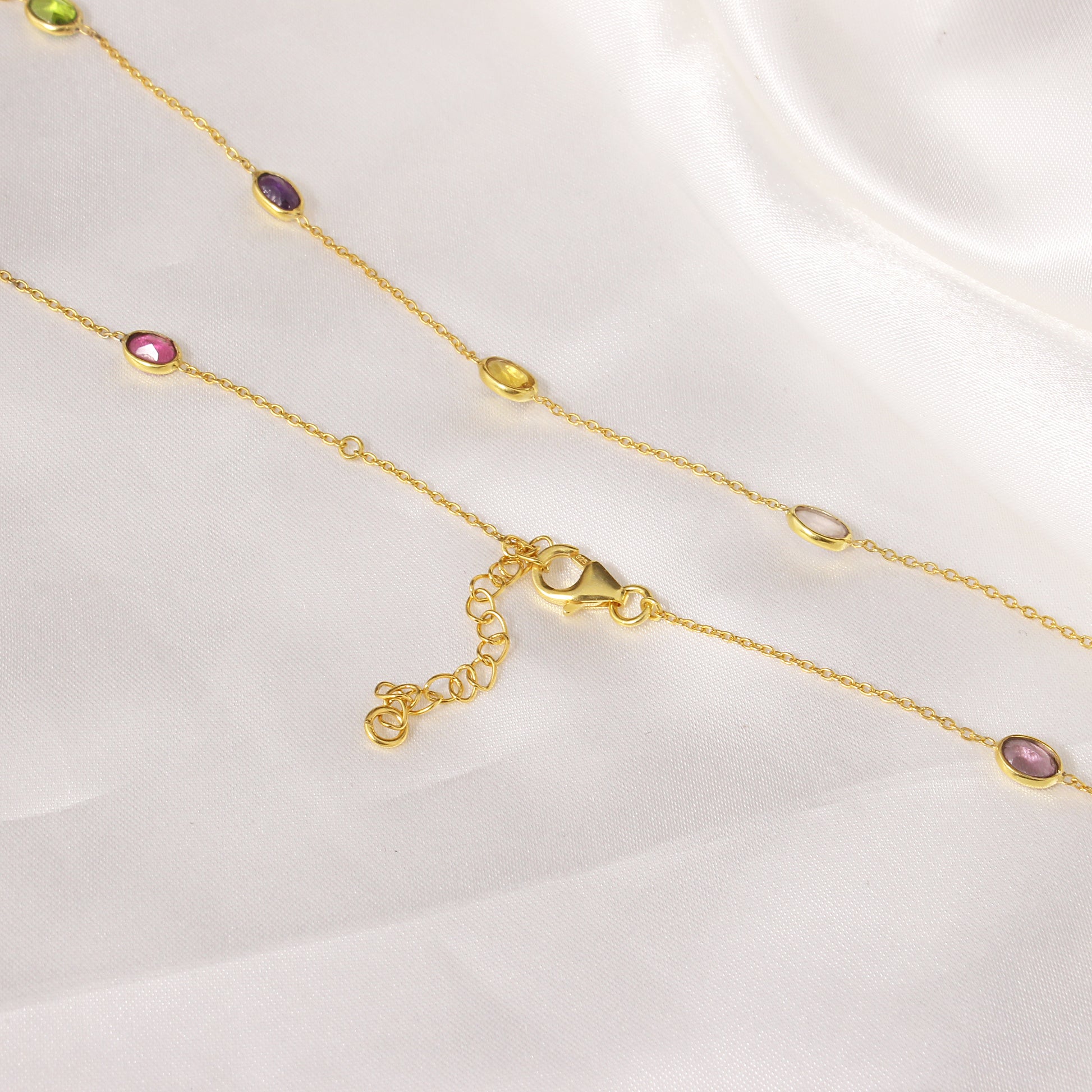 Adorn yourself with the timeless beauty of this 925 sterling silver chain necklace, featuring natural multi-colored gemstones. Perfect for everyday elegance or special occasions, this versatile piece adds a vibrant and sophisticated touch to any outfit.