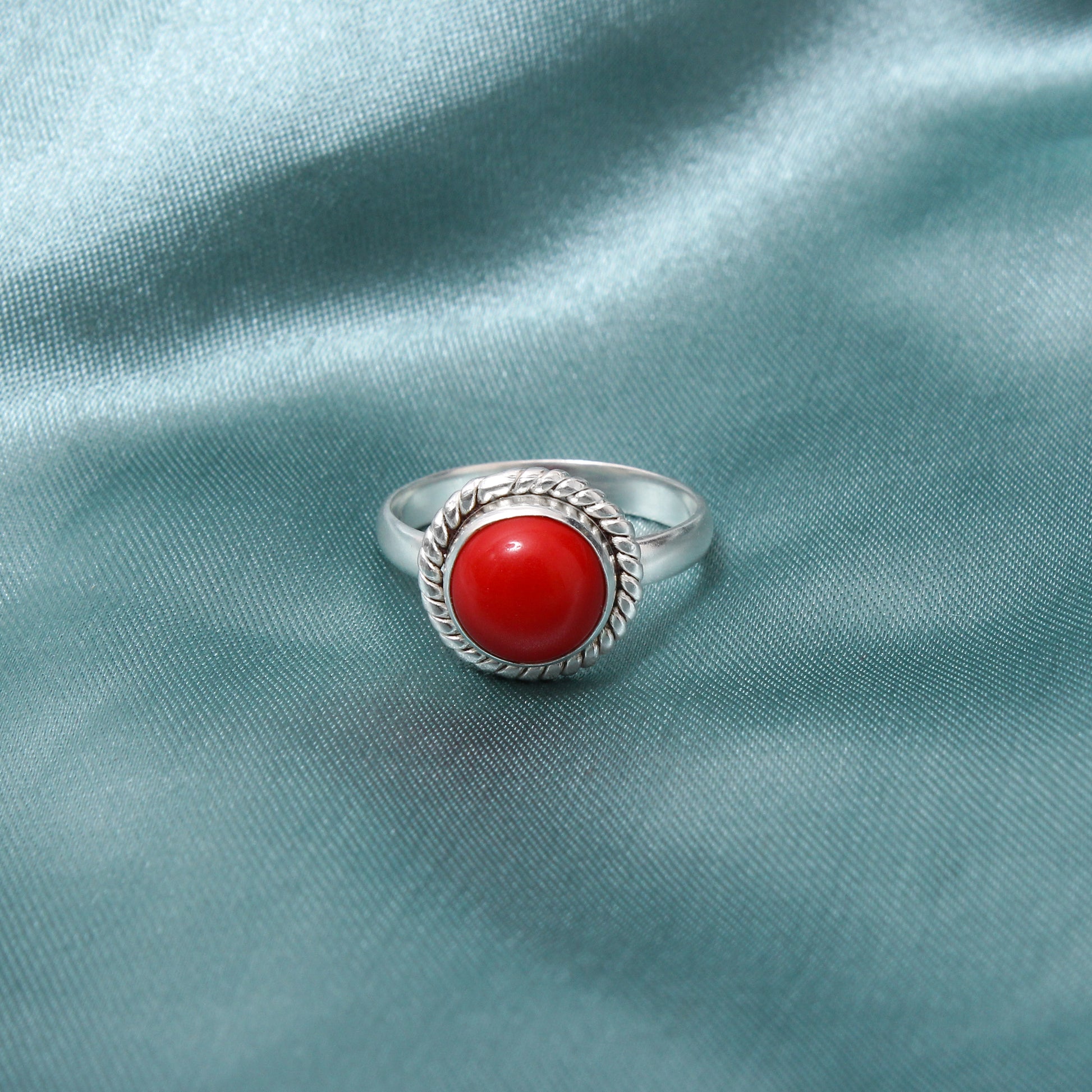 925 Sterling Silver Natural Red Coral Gemstone Ring – Timeless Elegance & Positive Energy
