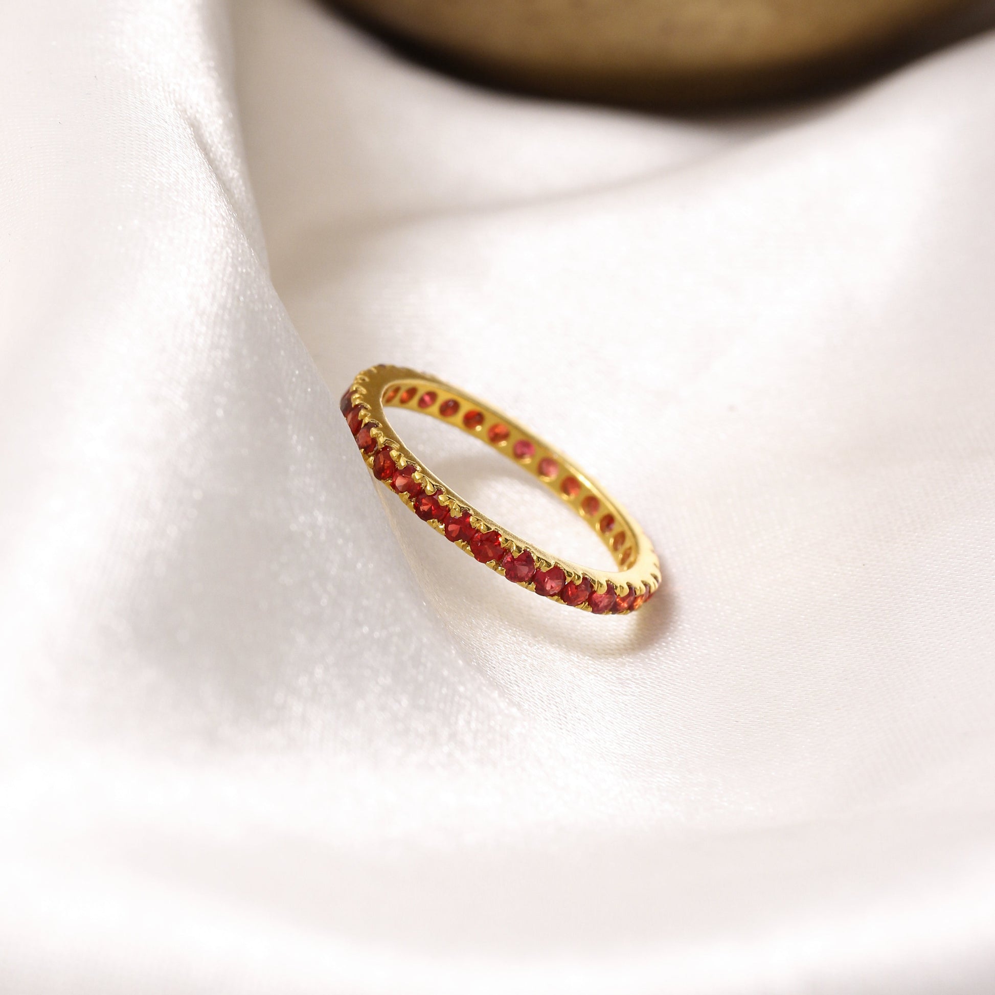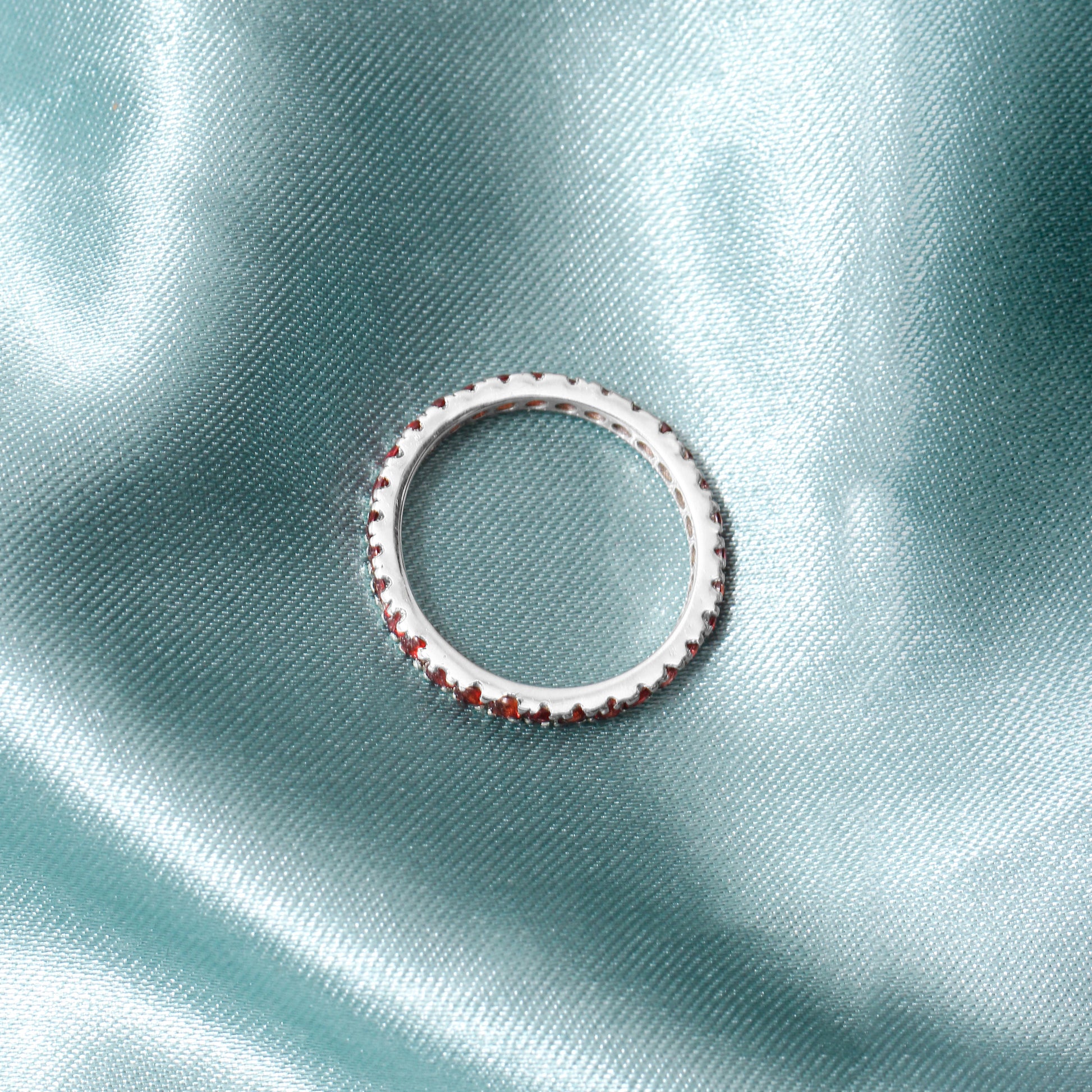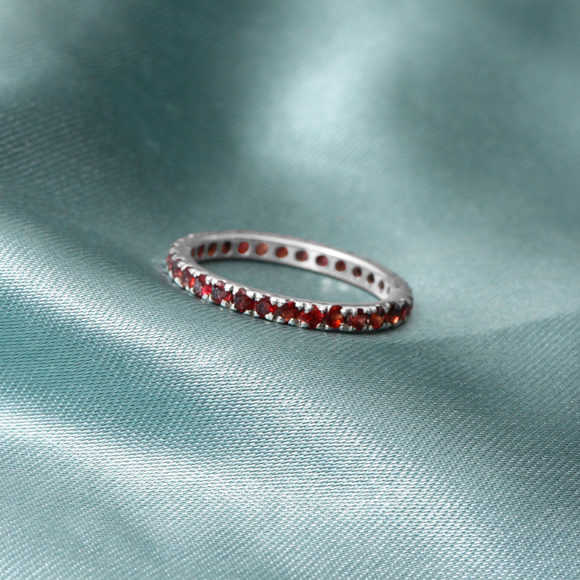 Elegant Rhodolite Garnet Eternity Band Ring – Natural Red Sparkle in 925 Silver