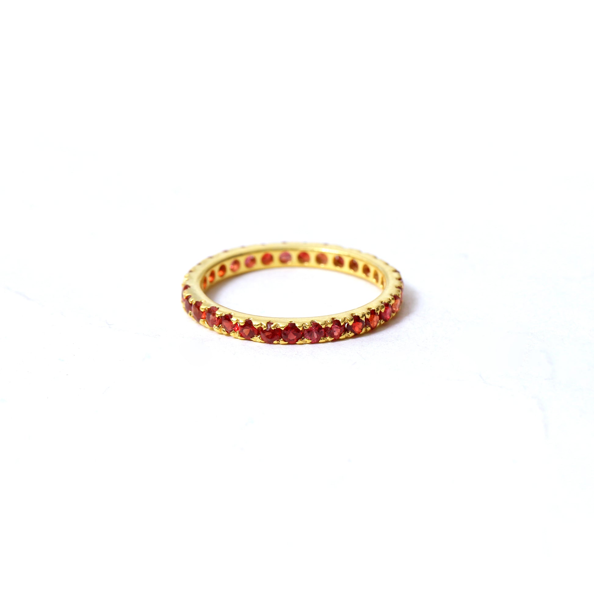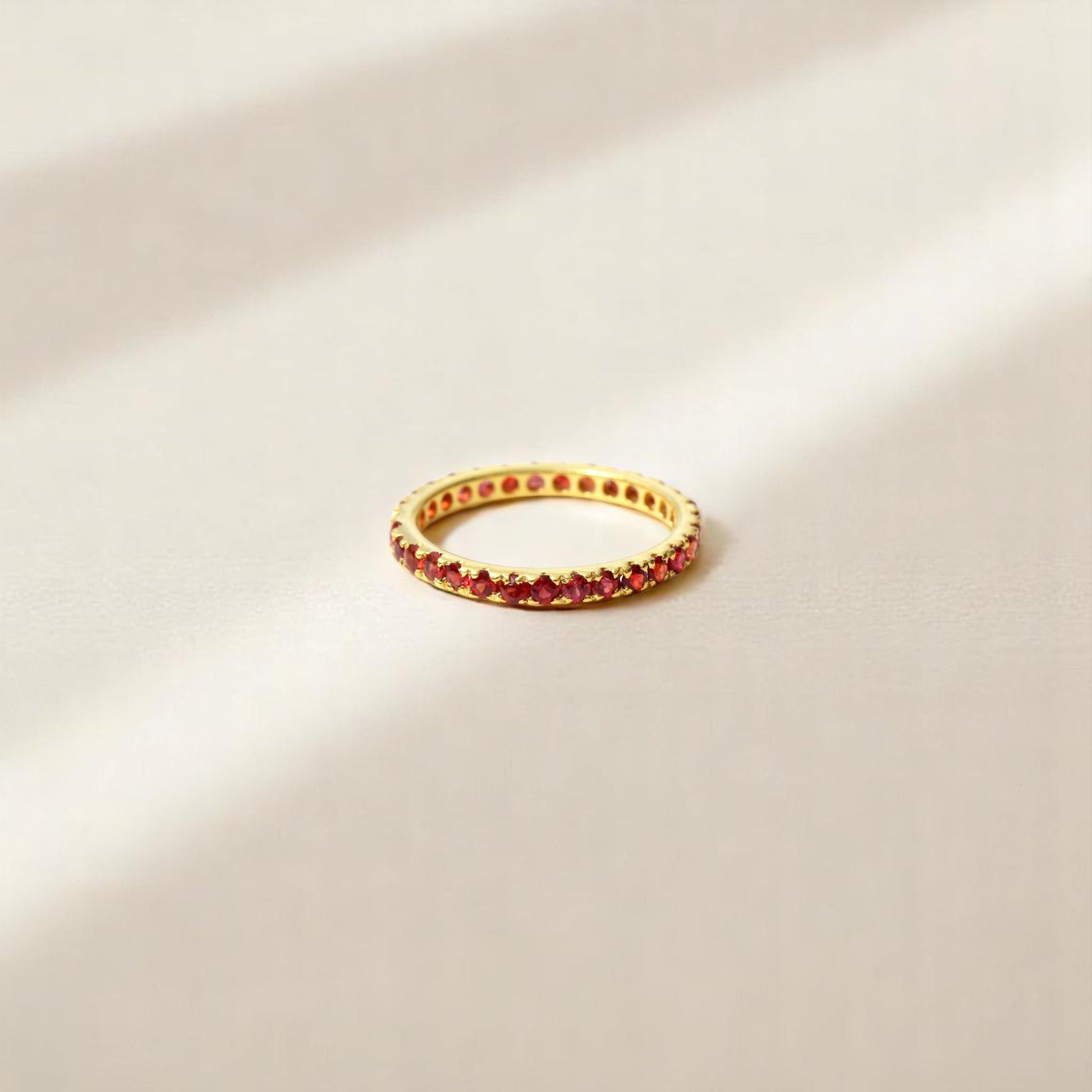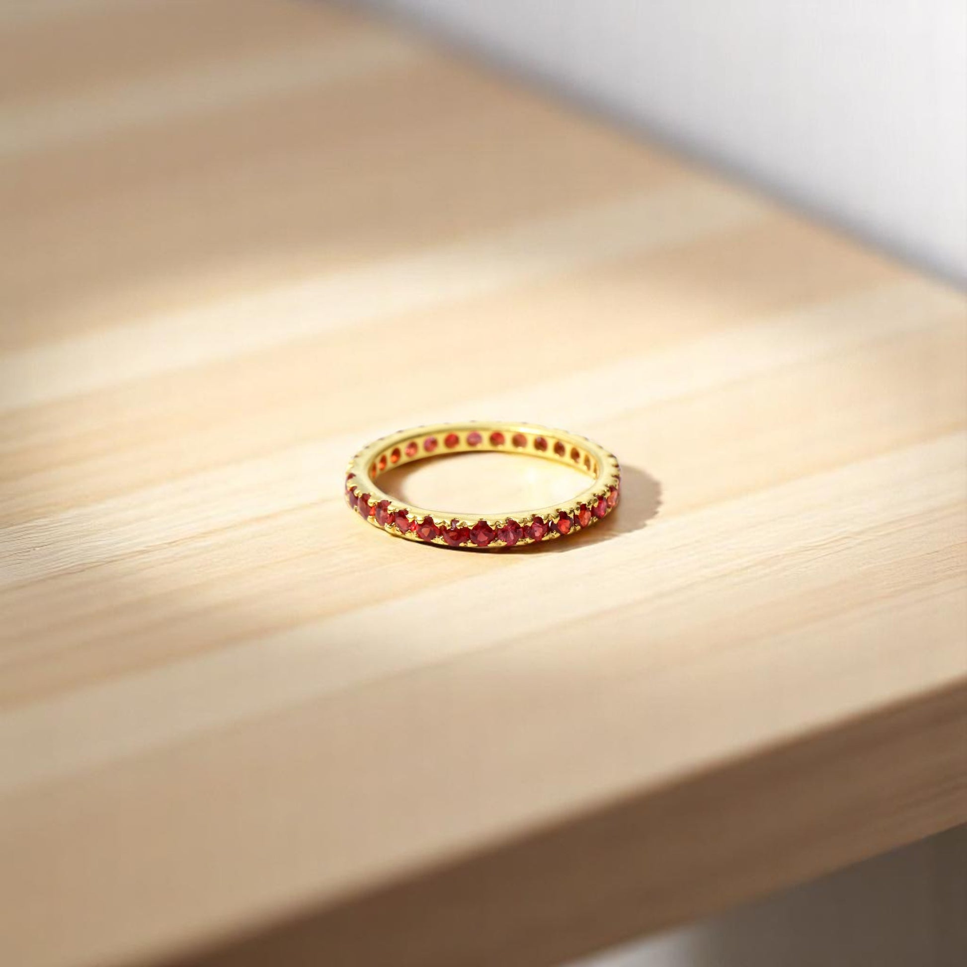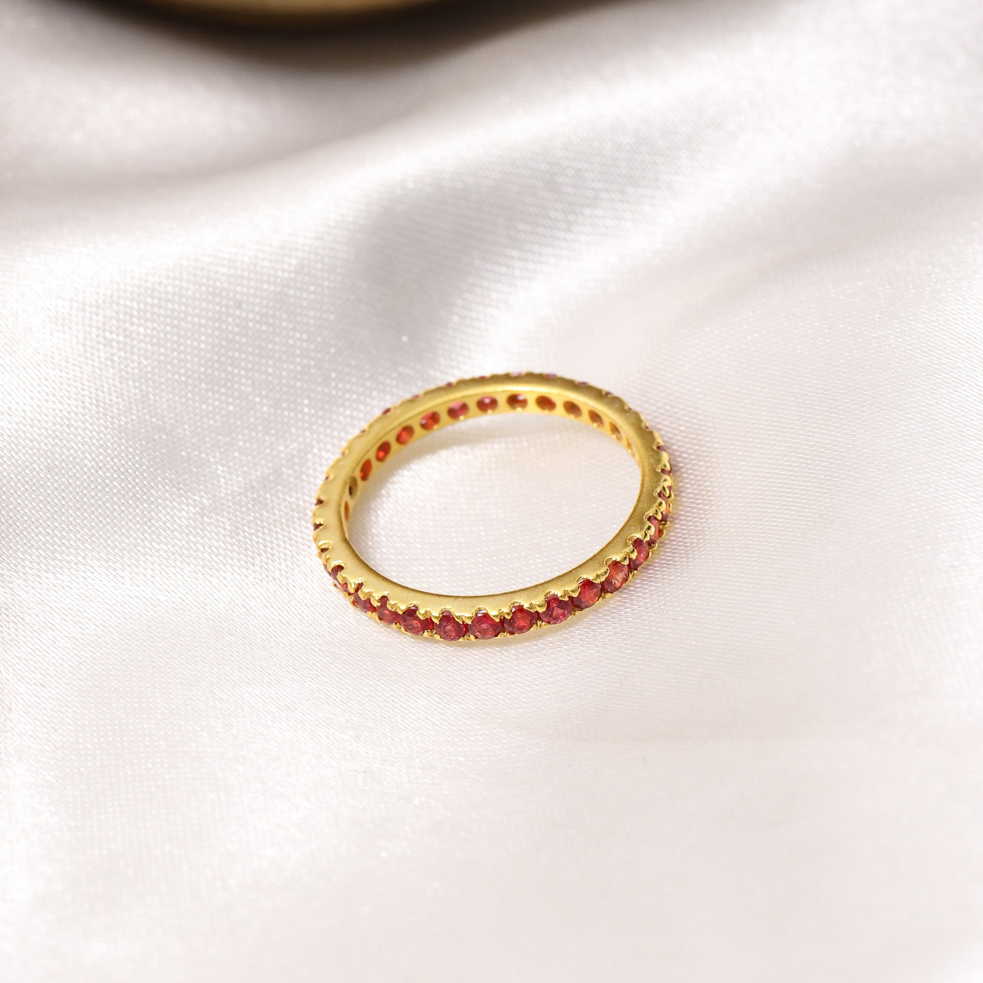 Elegant Rhodolite Garnet Eternity Band Ring – Natural Red Sparkle in 925 Silver