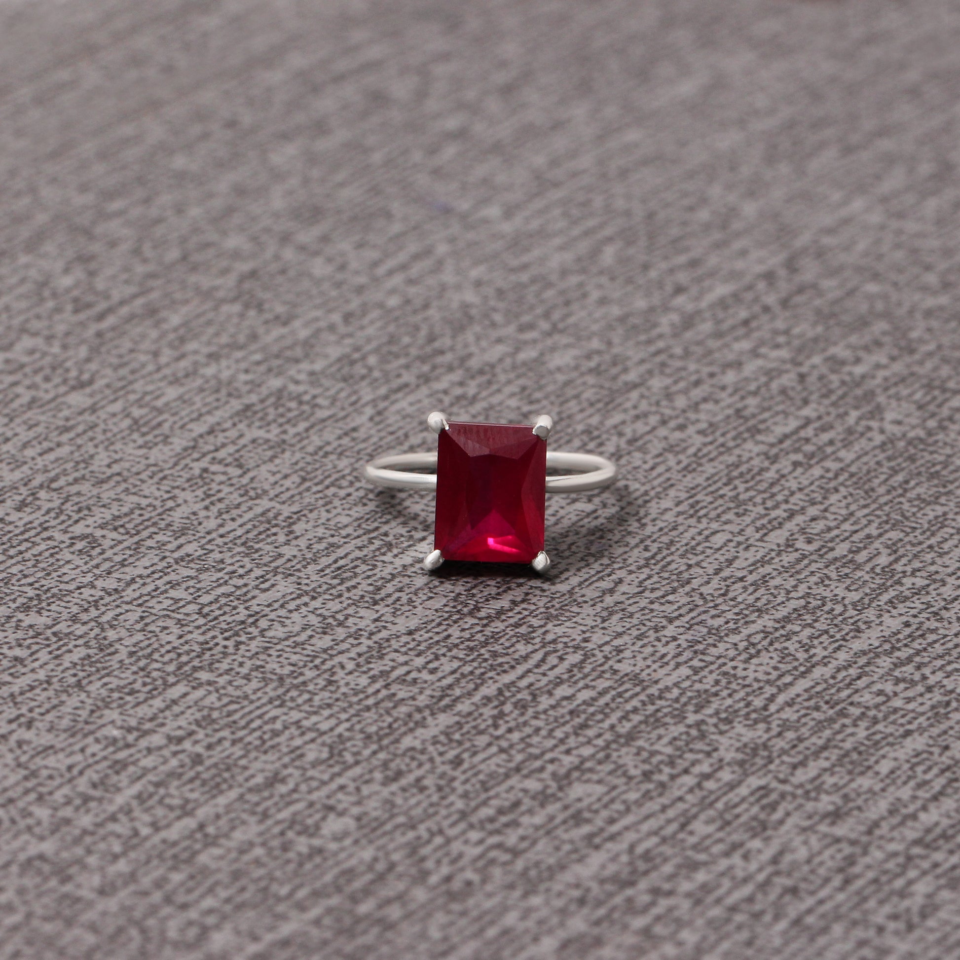 Enhance your look with this 925 Sterling Silver Ruby Red Gemstone Ring, featuring a stunning rectangular red gemstone set in durable sterling silver. Symbolizing passion, vitality, and success, this ring adds timeless elegance and vibrant energy to your jewelry collection. Perfect for gifting or everyday wear!