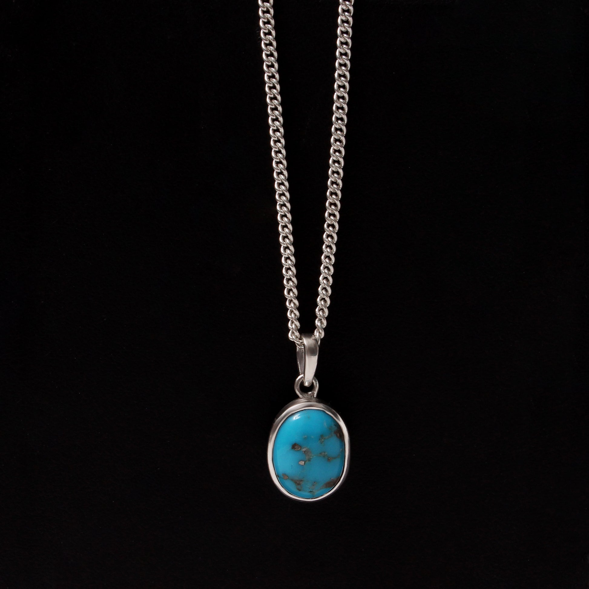 ITEM: 925 Sterling Silver Natural Turquoise Pendant Necklace