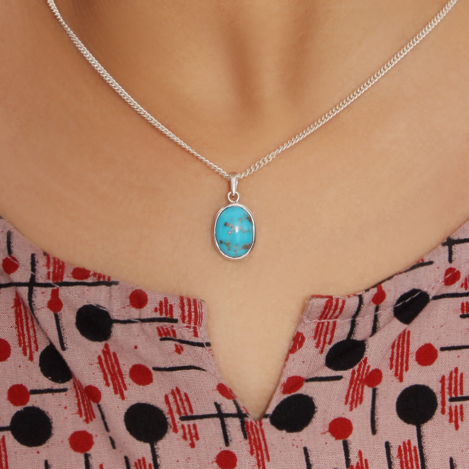 Natural Turquoise Pendant Necklace – Sterling Silver Chain | Calming Stone of Protection & Positivity