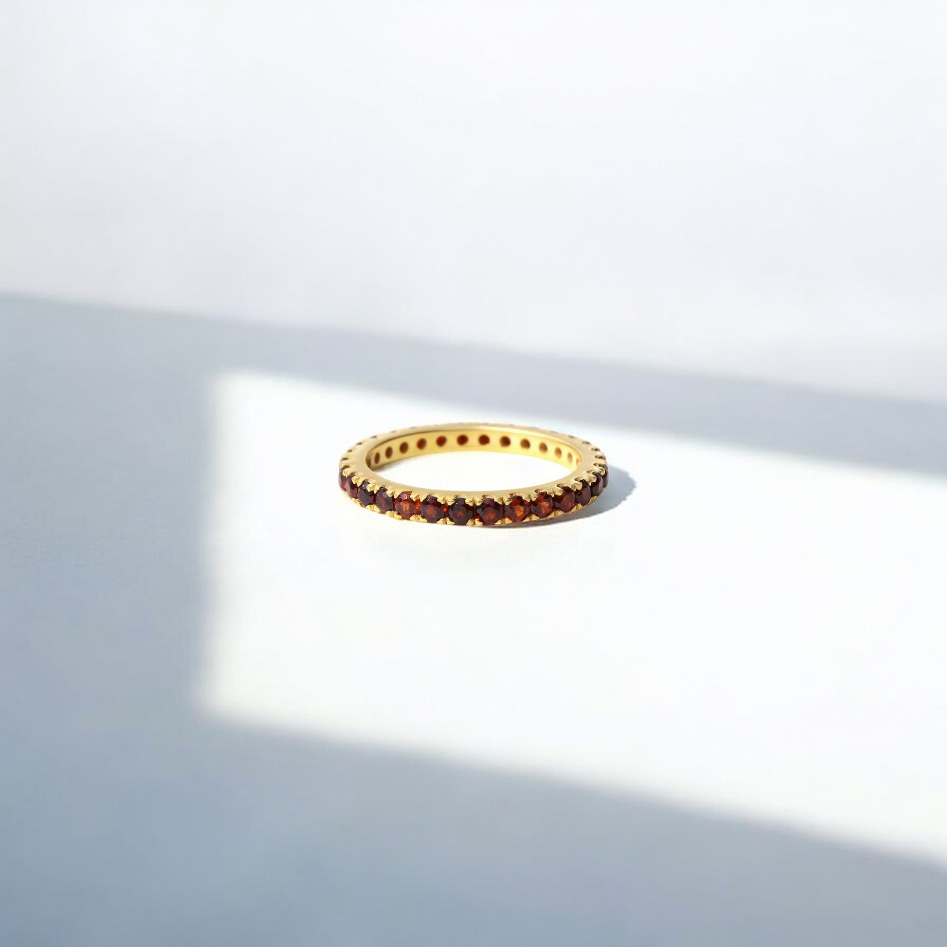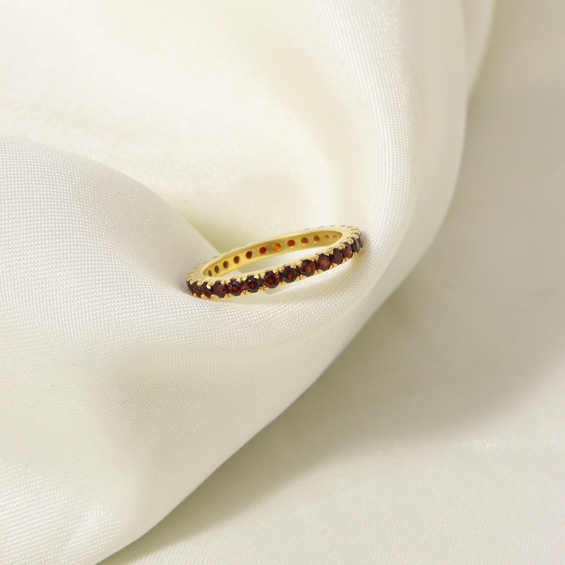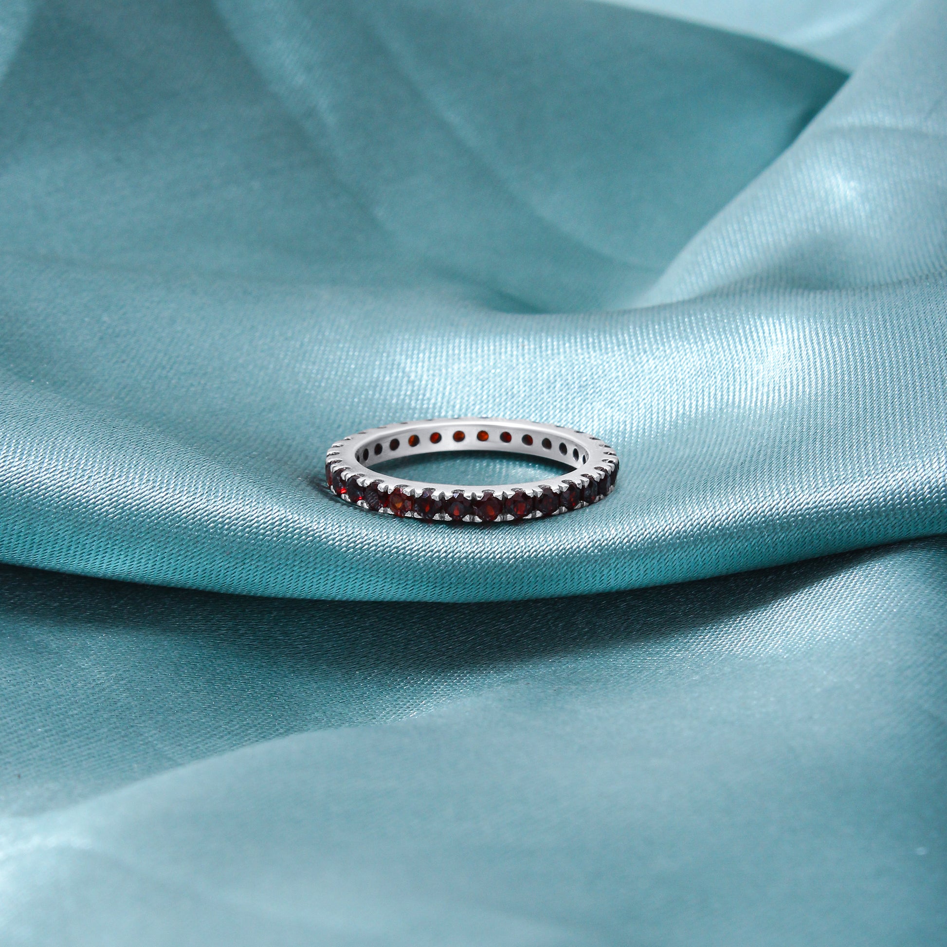 925 Sterling Silver Red Garnet Stacking Ring | Natural Gemstone Eternity Band