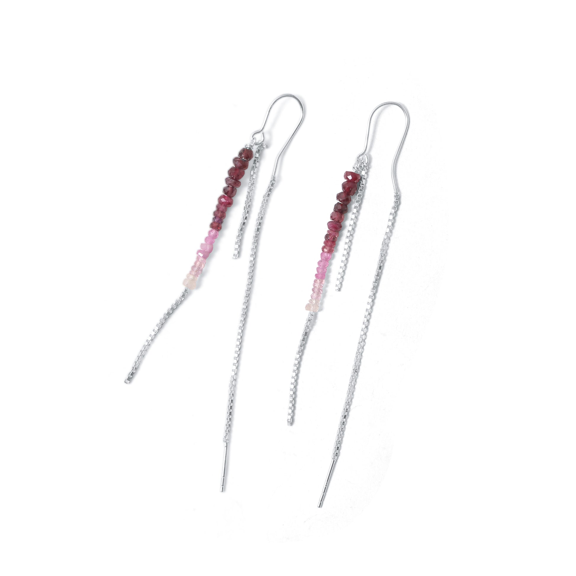 ITEM: 925 Sterling Silver Shaded Pink Ruby Threader Earrings