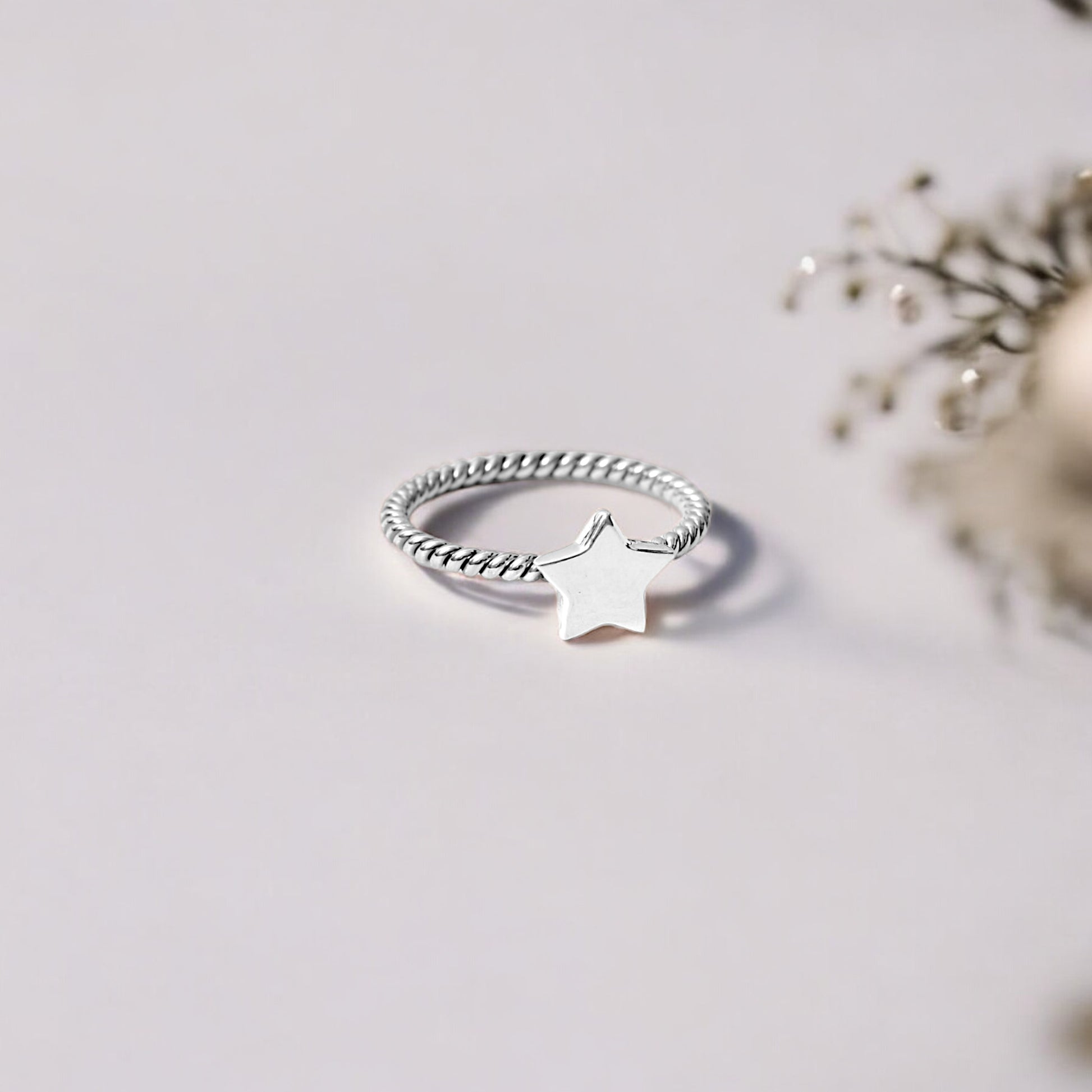 Discover the elegance of our 925 Sterling Silver Star Ring, featuring a charming star design on a twisted band. This exquisite ring is perfect for daily wear, offering the benefits of silver's natural hypoallergenic properties and timeless shine. Elevate any outfit with this versatile piece, whether you're dressing up for a special occasion or adding a touch of sparkle to your everyday look.