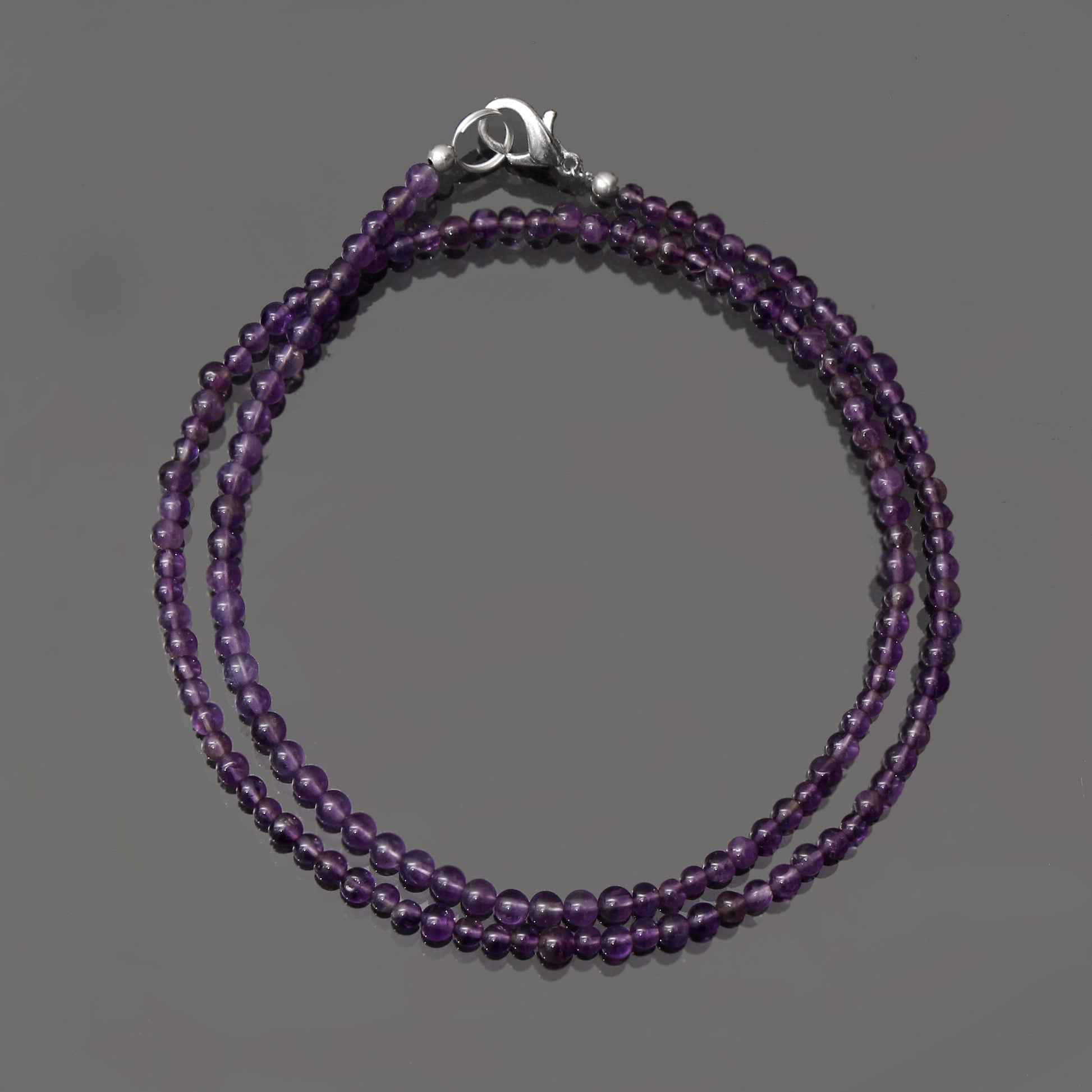 ITEM : Tiny Minimalist Amethyst Round 3.5mm Beaded Necklace with 925 Sterling Silver Lobster Lock.