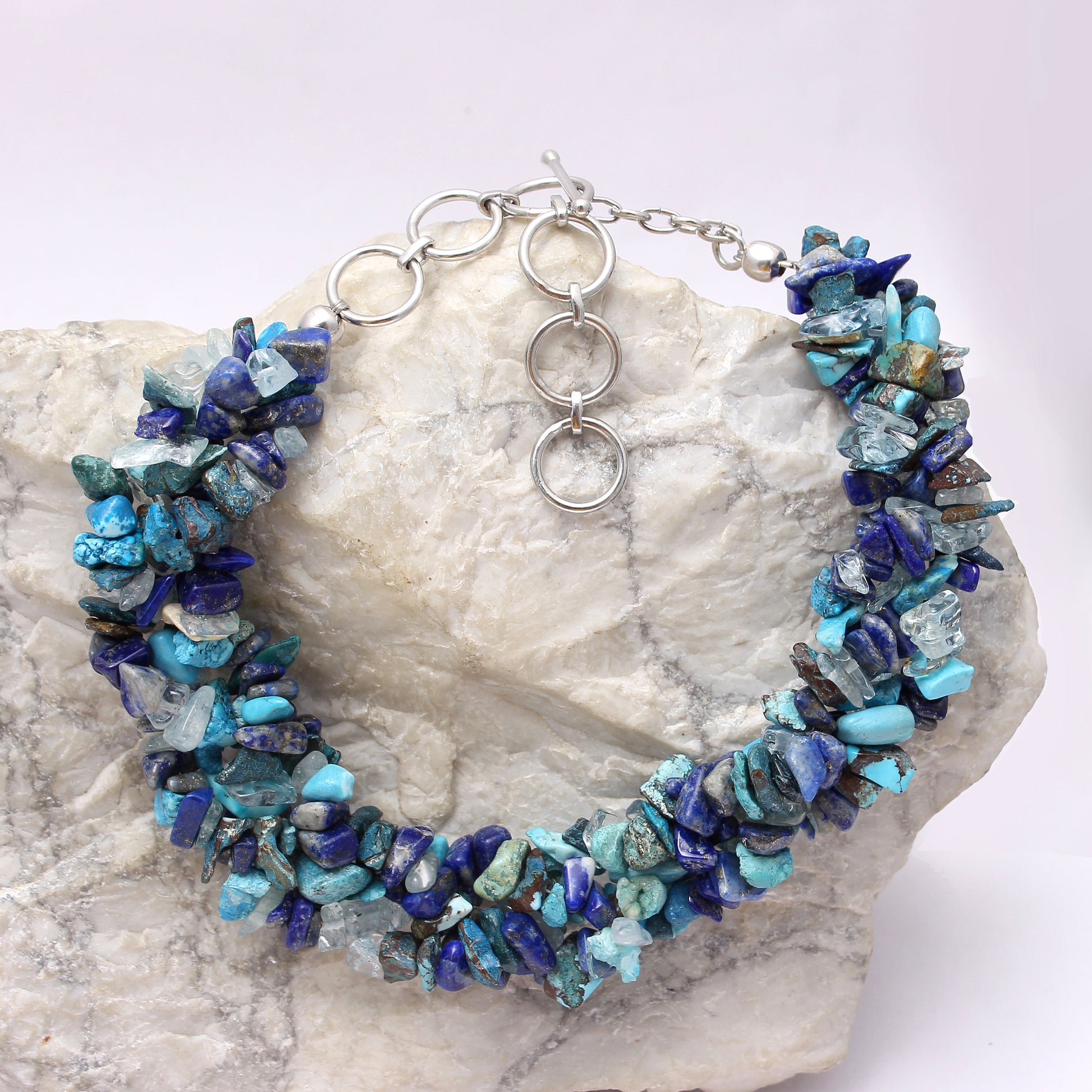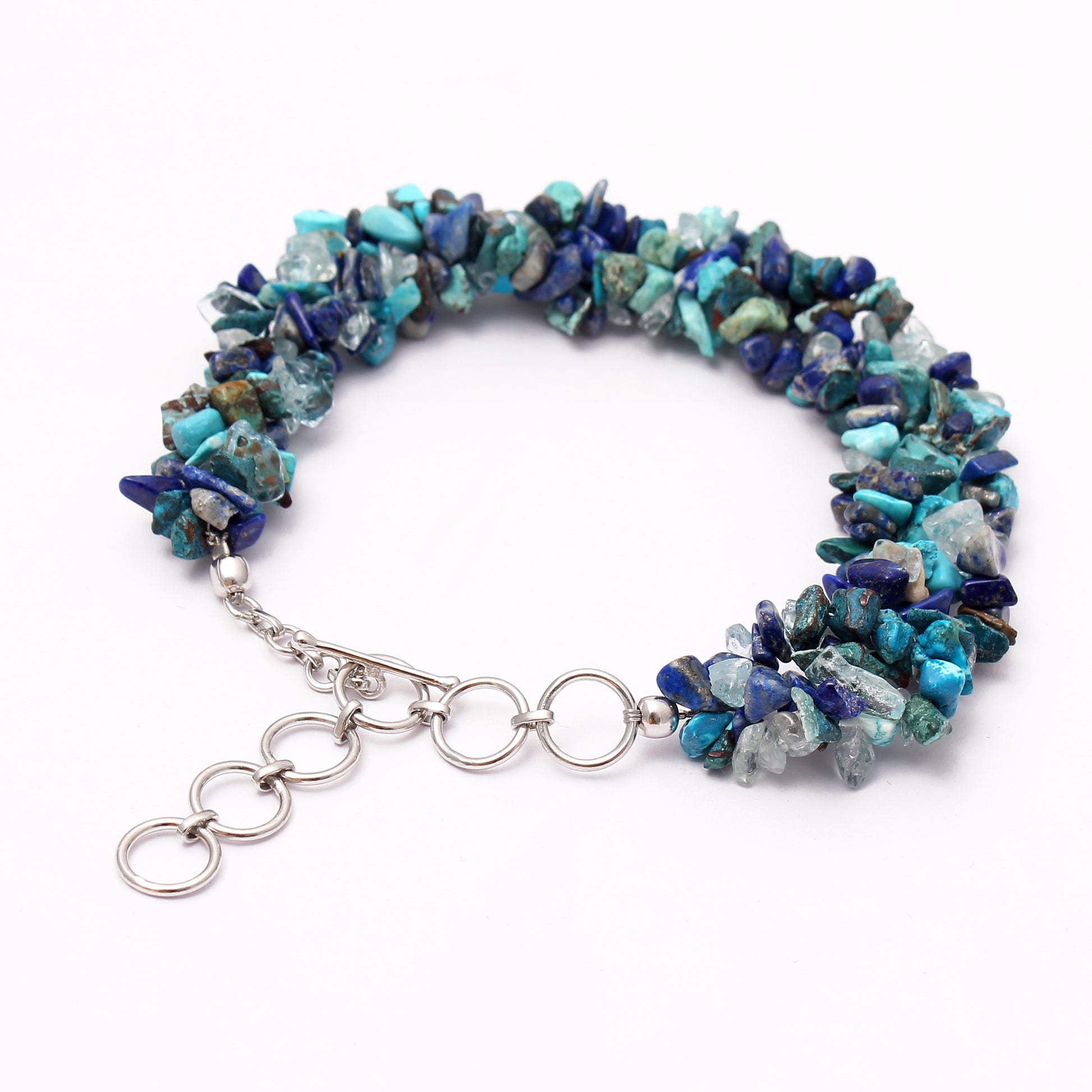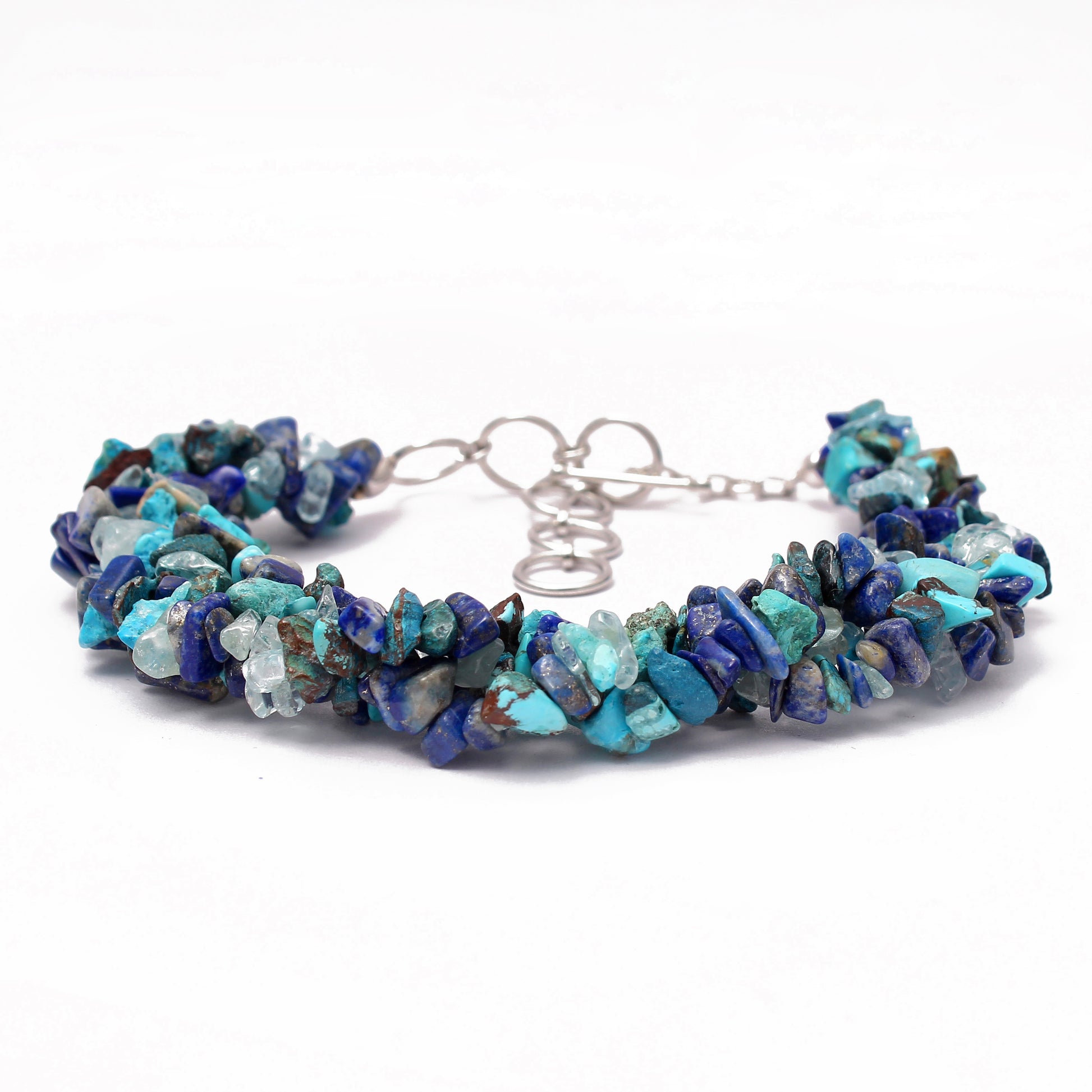 Product Details : Dazzling blue gemstone bracelet with aquamarine, lapis, and aquamarine chips. Perfect for any occasion.