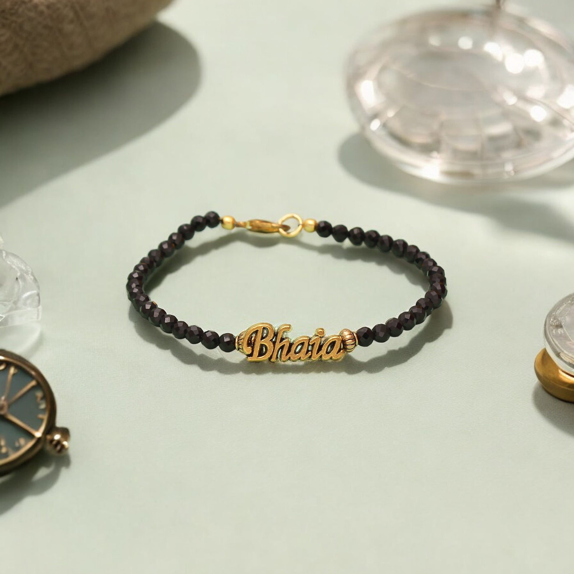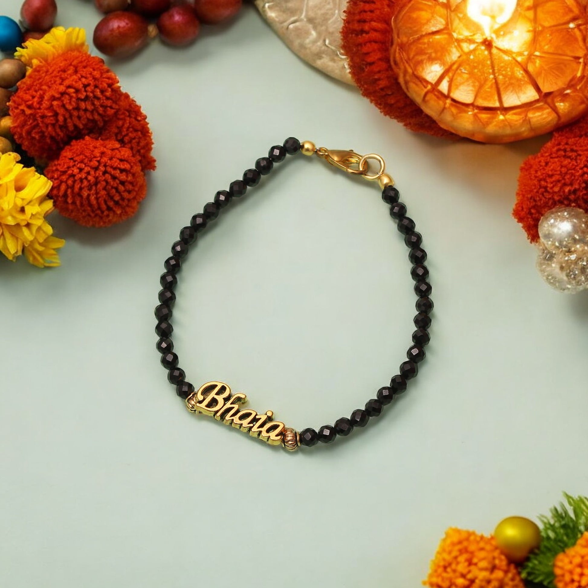Black Spinel Beaded Bracelet/Rakhi - Strength & Protection