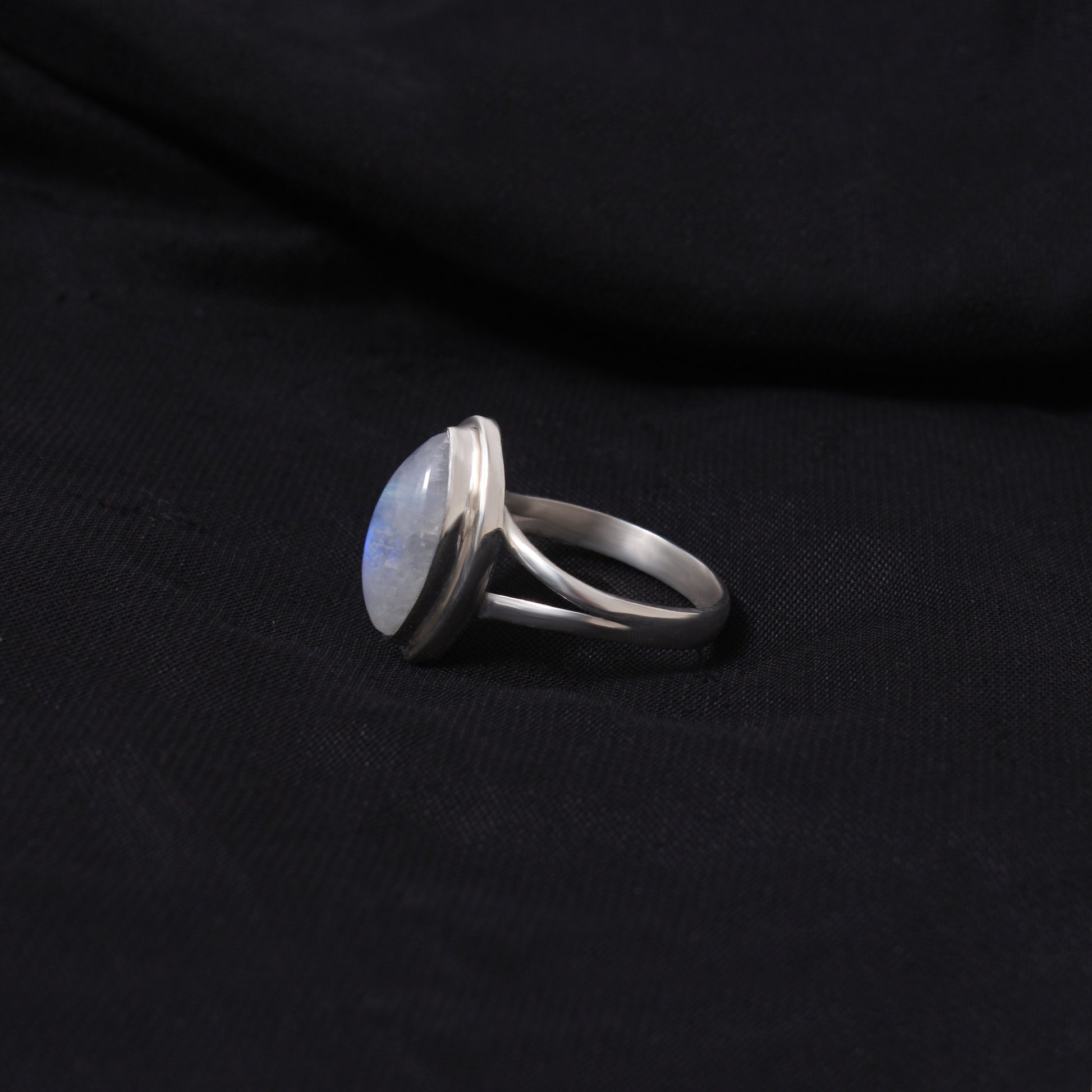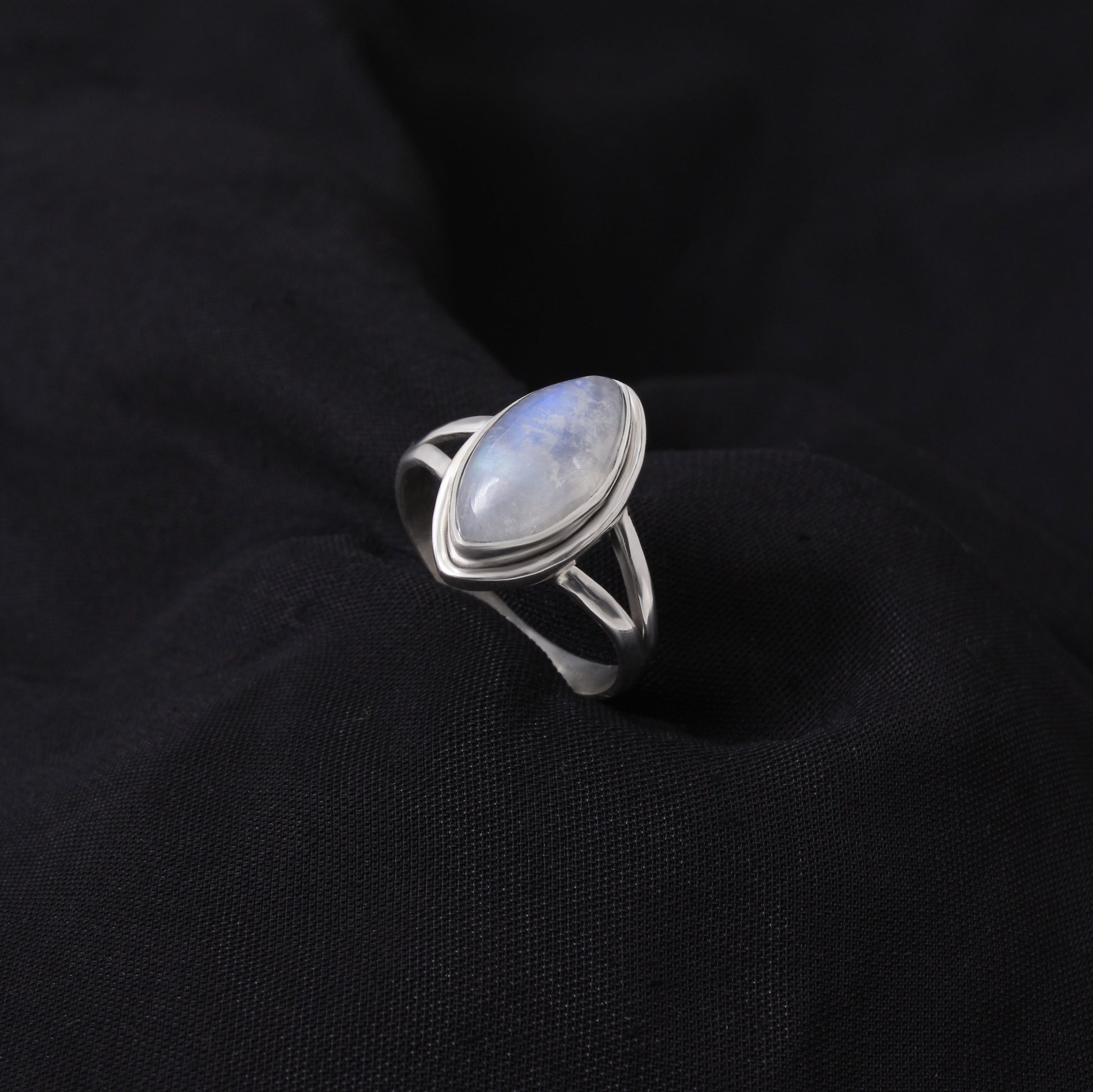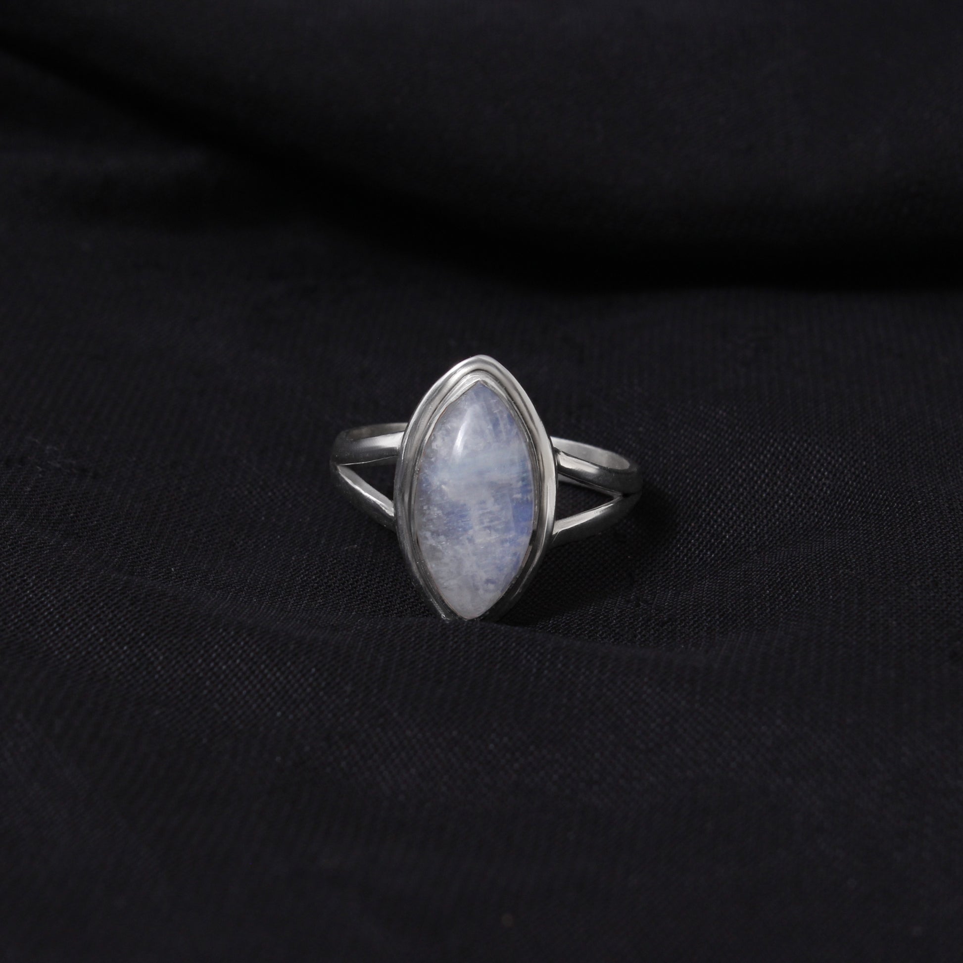 Elegant Blue Flashy Marquise Shape Rainbow Moonstone Sterling Silver Ring – Handmade Gemstone Jewelry for Feminine Energy & Inner Clarity