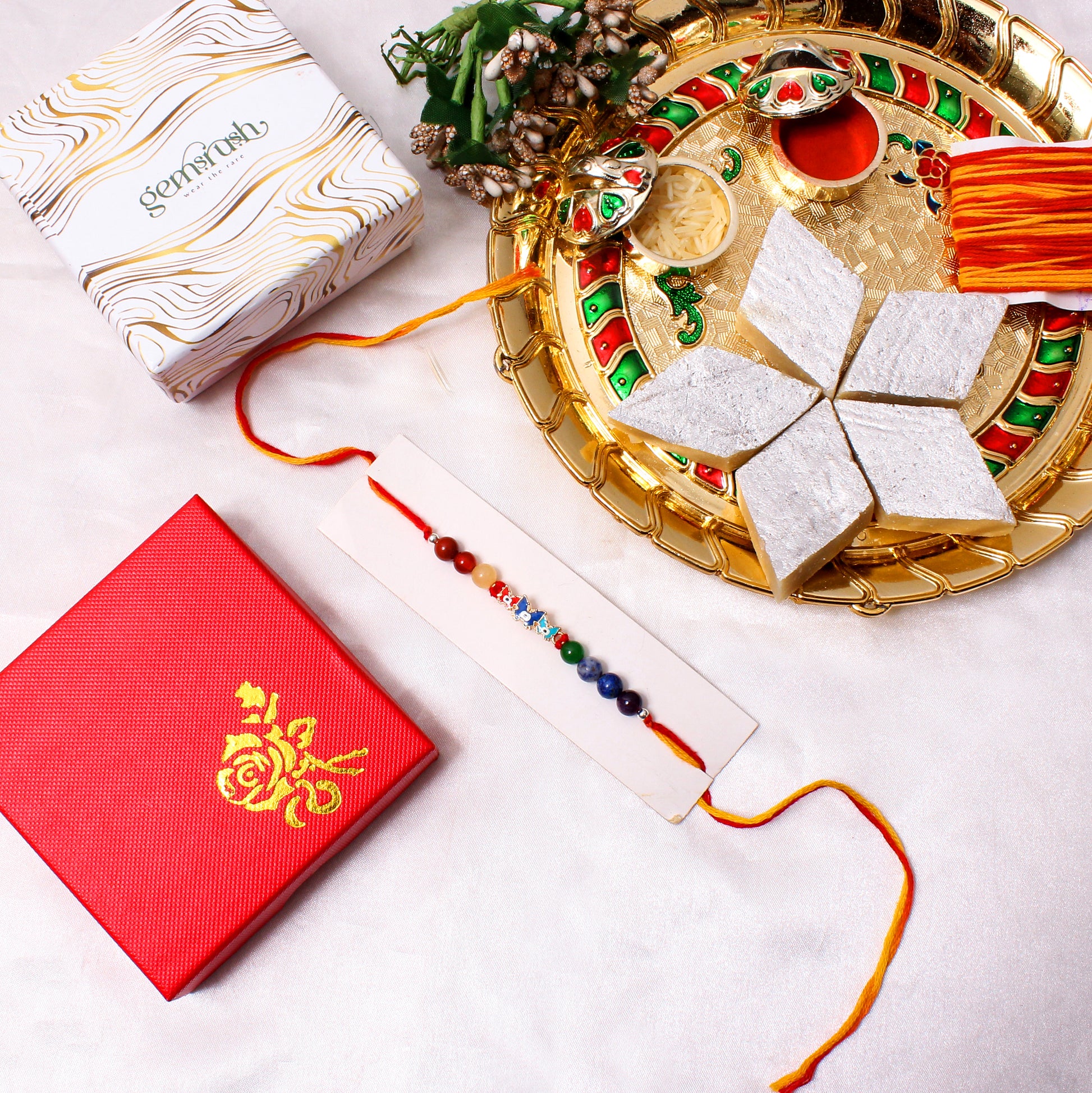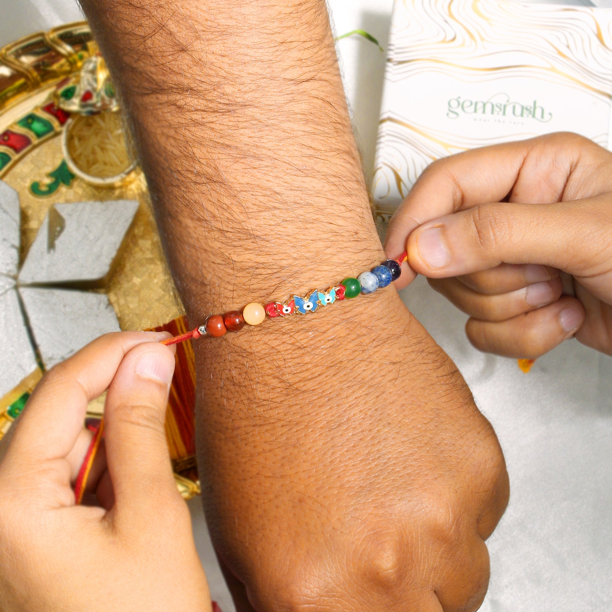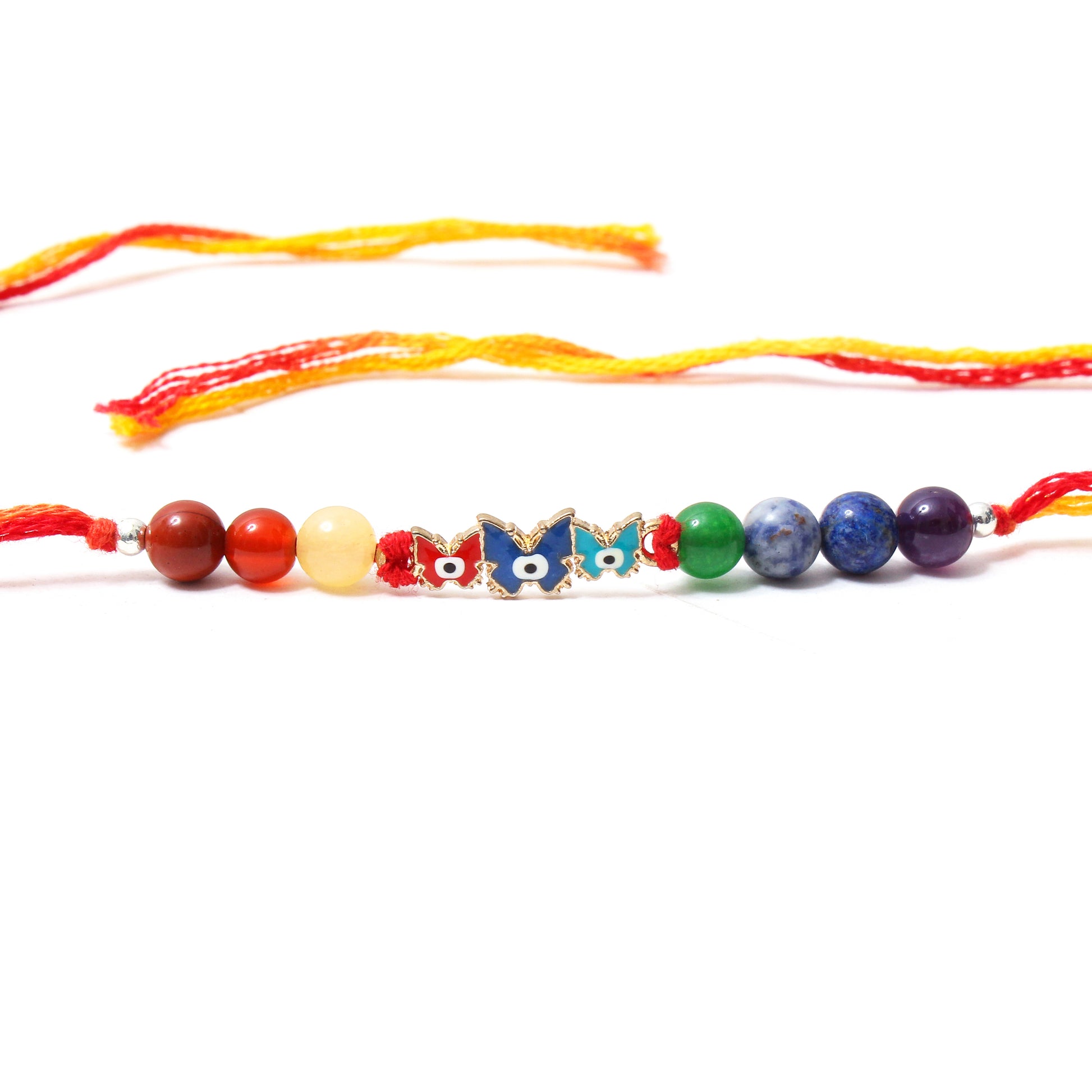 Butterfly Evil Eye Charm Gemstone Rakhi – Vibrant Protection & Love