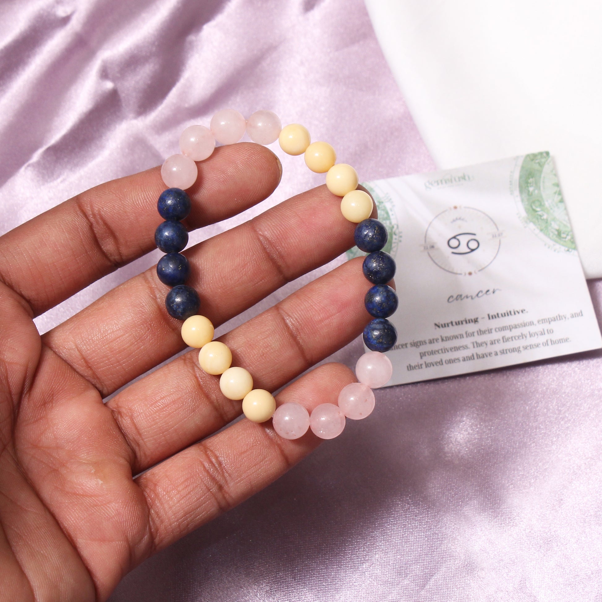 Cancer Zodiac Bracelet (Kark Rashi Bracelet) – Natural Rose Quartz, Lapis Lazuli & Dolomites Beads