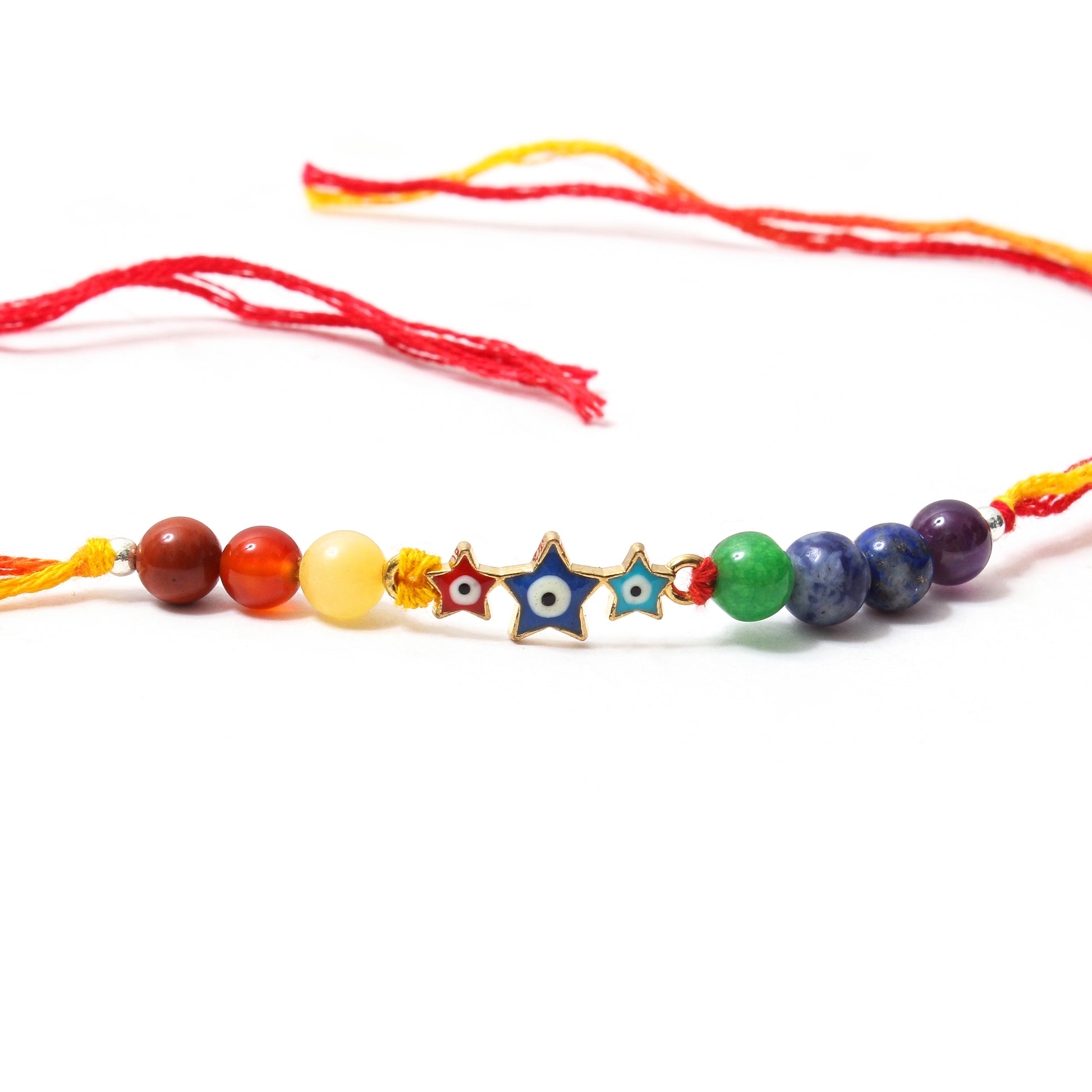 Colorful Star Evil Eye Charm Gemstone Rakhi – Protective & Stylish Gift for Raksha Bandhan