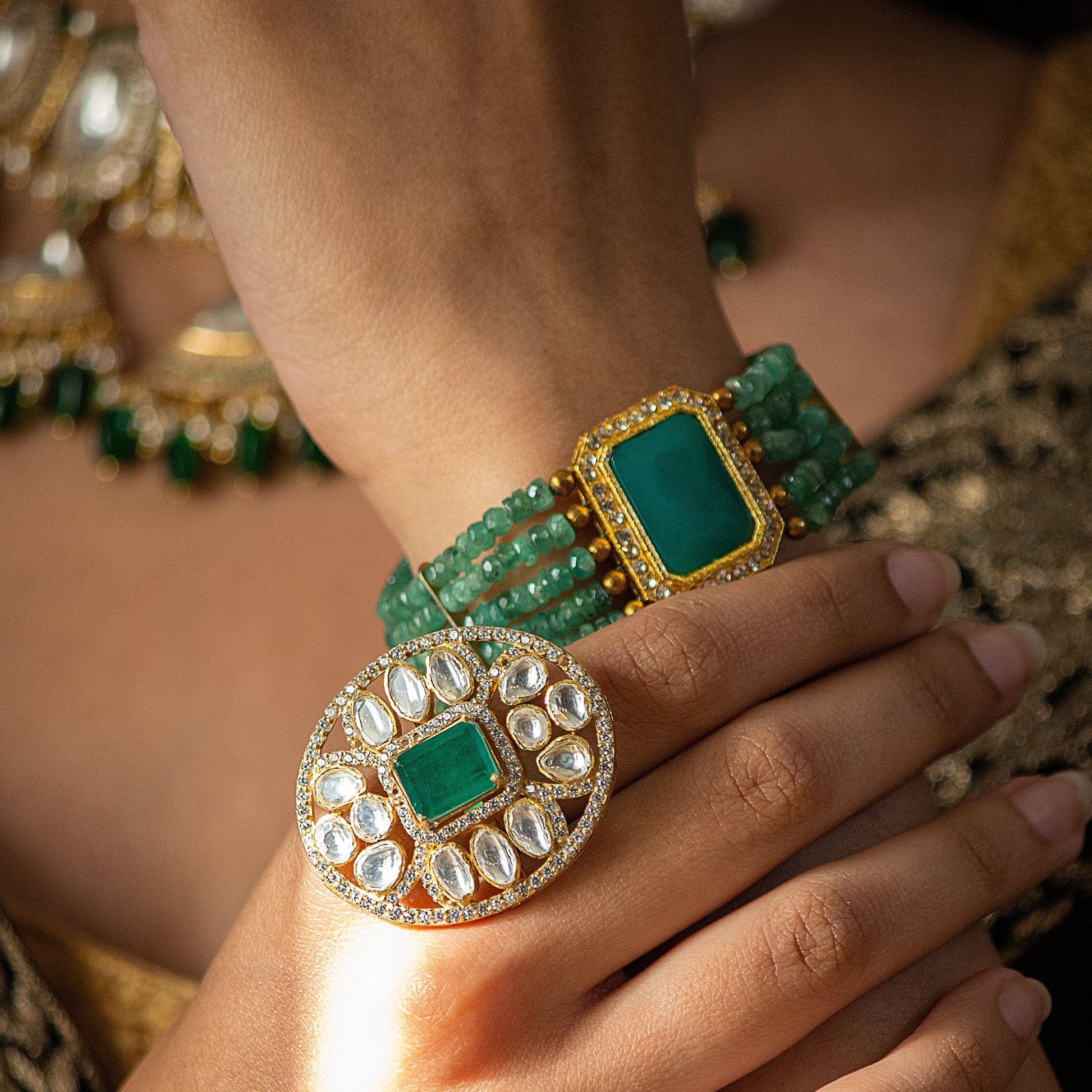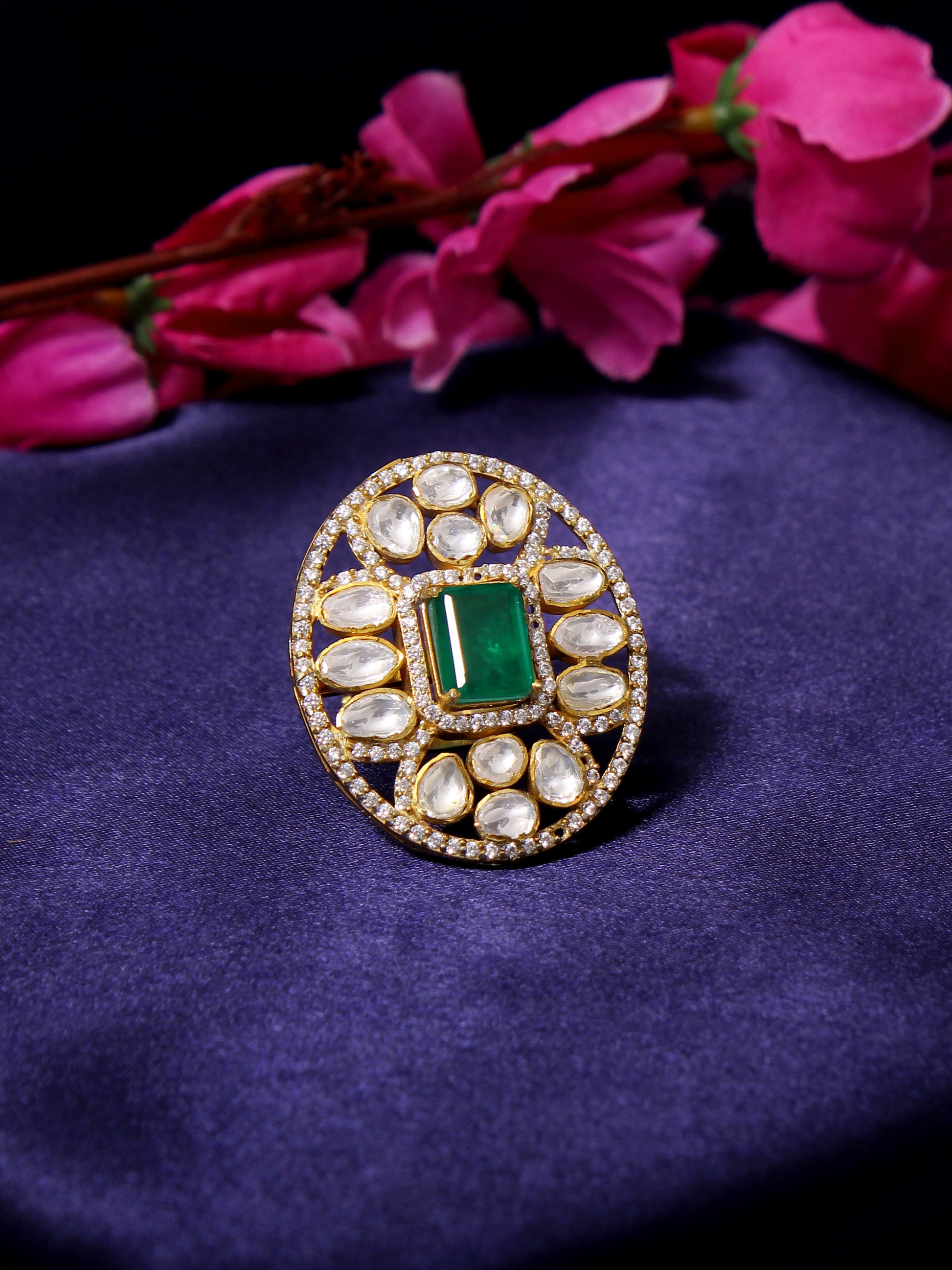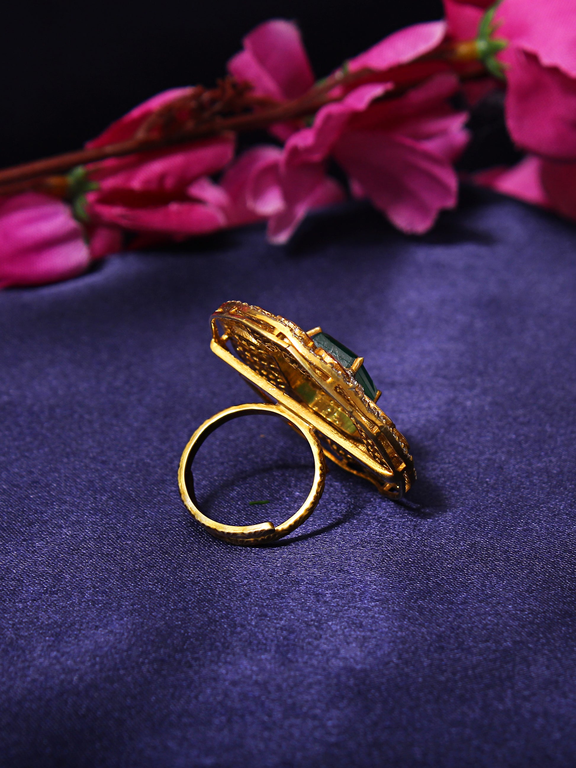 Elegance: Simulated Emerald & Faux Diamond Traditional Indian Ring (Adjustable)