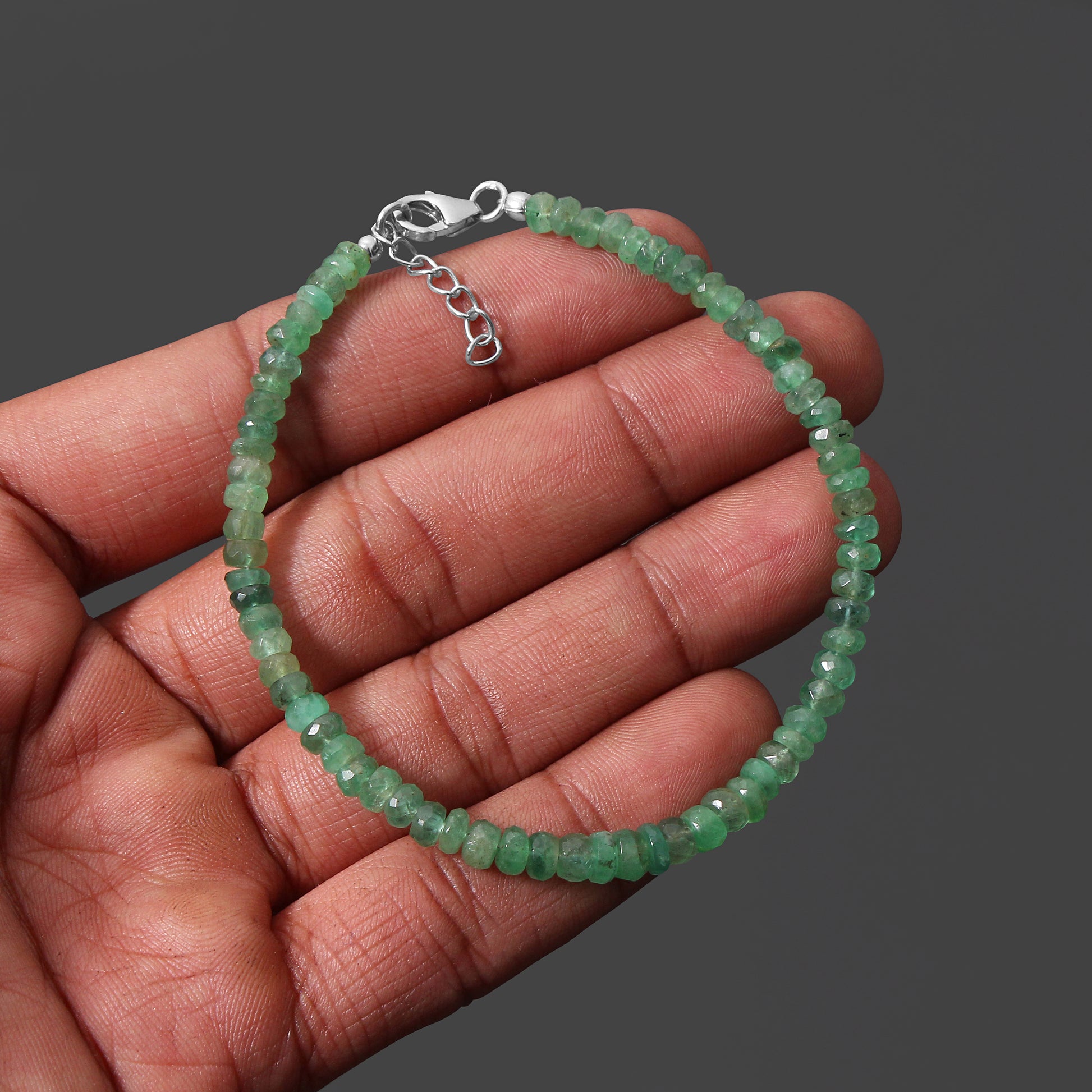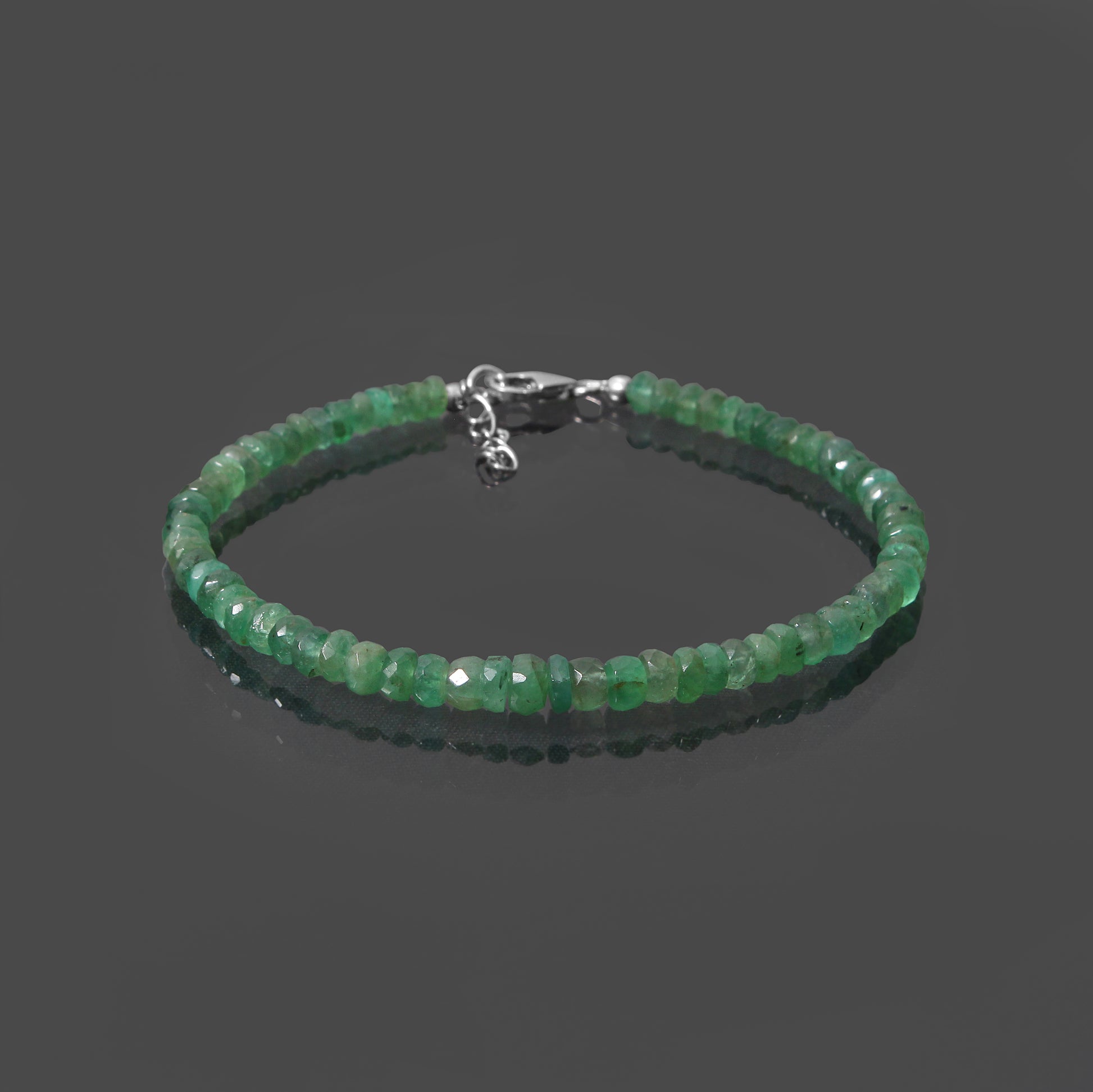 - A piece of art to cherish: The emerald rondelles in this bracelet are carefully cut and placed to create a stunning piece of art that you can wear on your wrist.