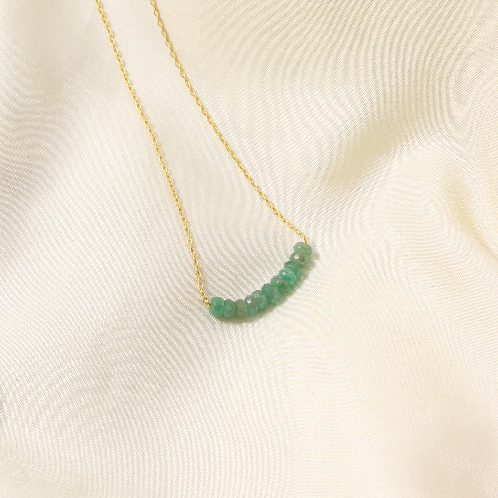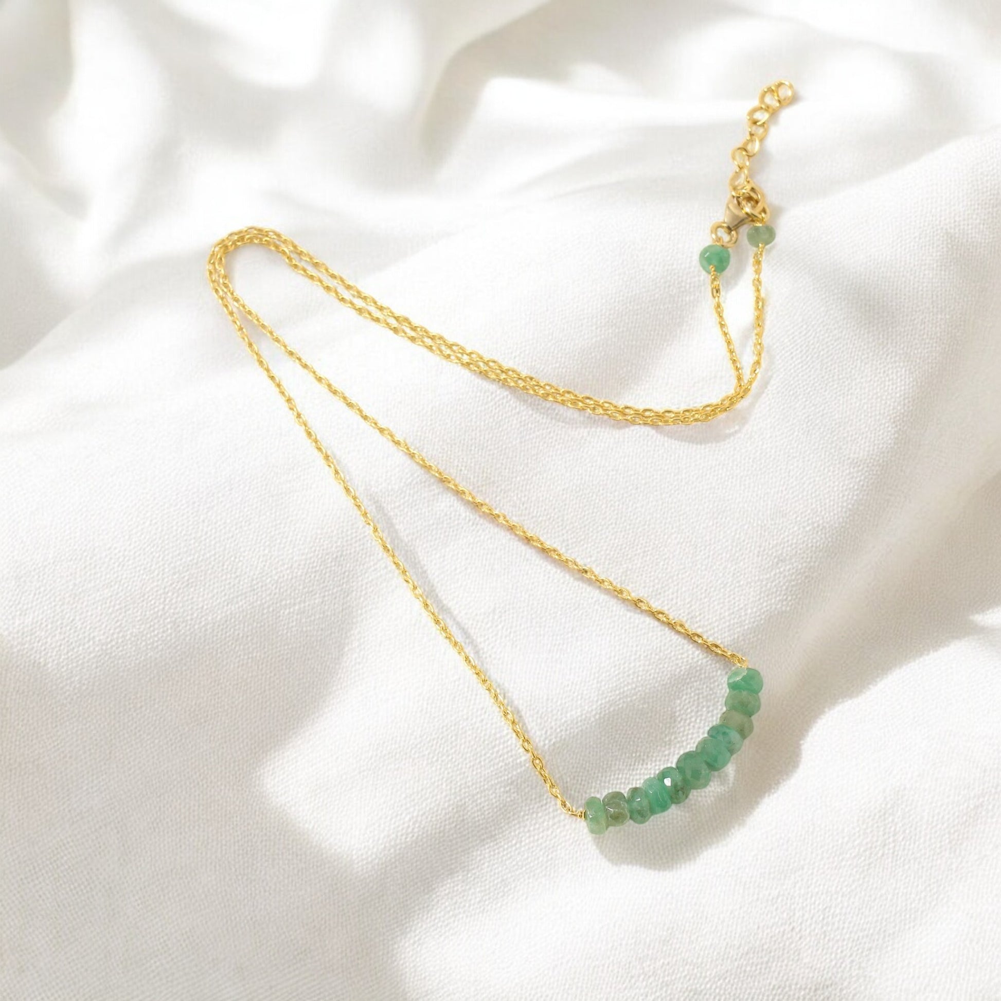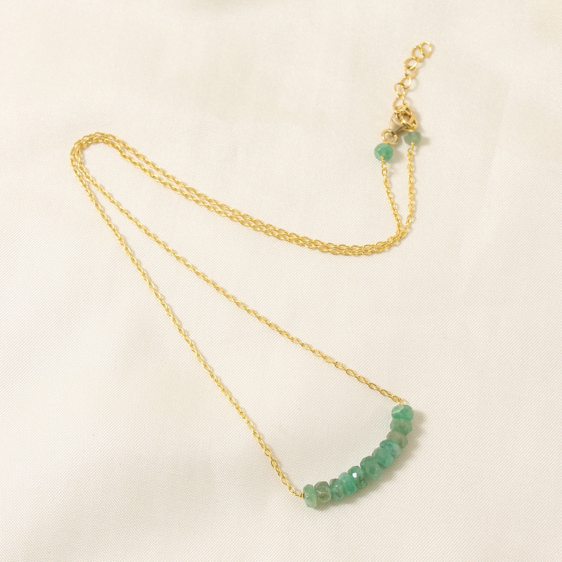 Delicate Natural Emerald Beaded Bar Necklace – Minimalist Birthstone Jewelry