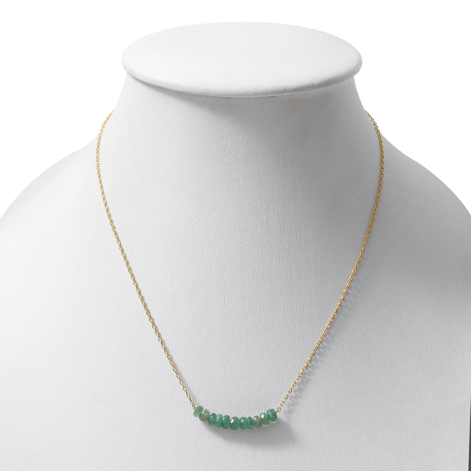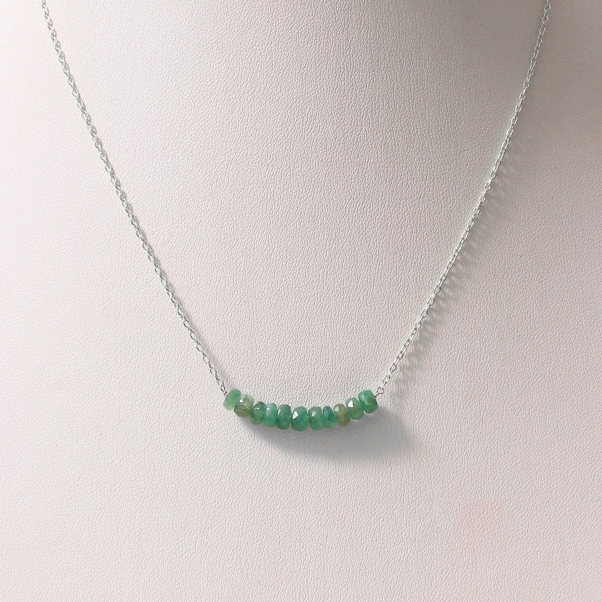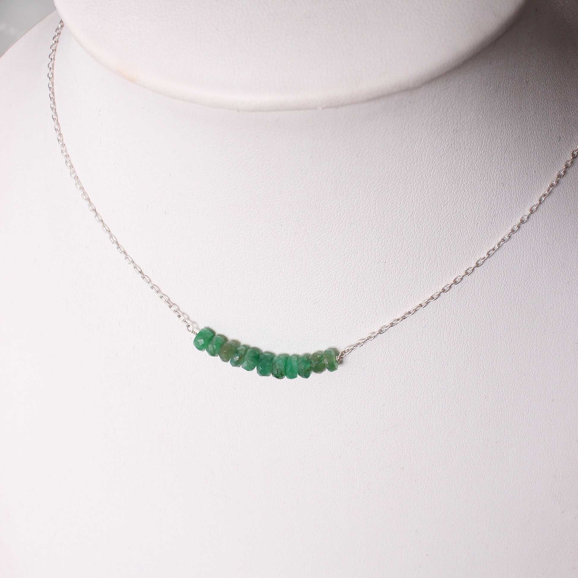 Delicate Natural Emerald Beaded Bar Necklace – Minimalist Birthstone Jewelry
