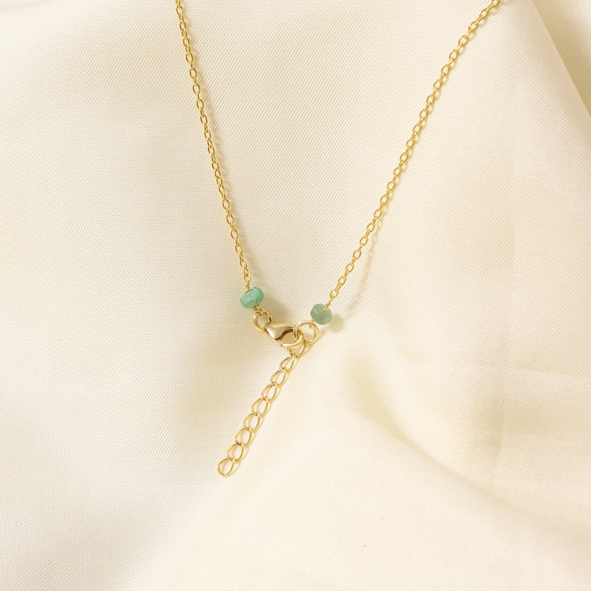 Add a touch of elegance to your everyday look with this dainty emerald beaded bar necklace. Featuring natural green emerald stones strung on a sleek gold-plated chain, this piece promotes clarity, love, and prosperity. Lightweight, stylish, and adjustable for the perfect fit – a beautiful gift or personal treasure.