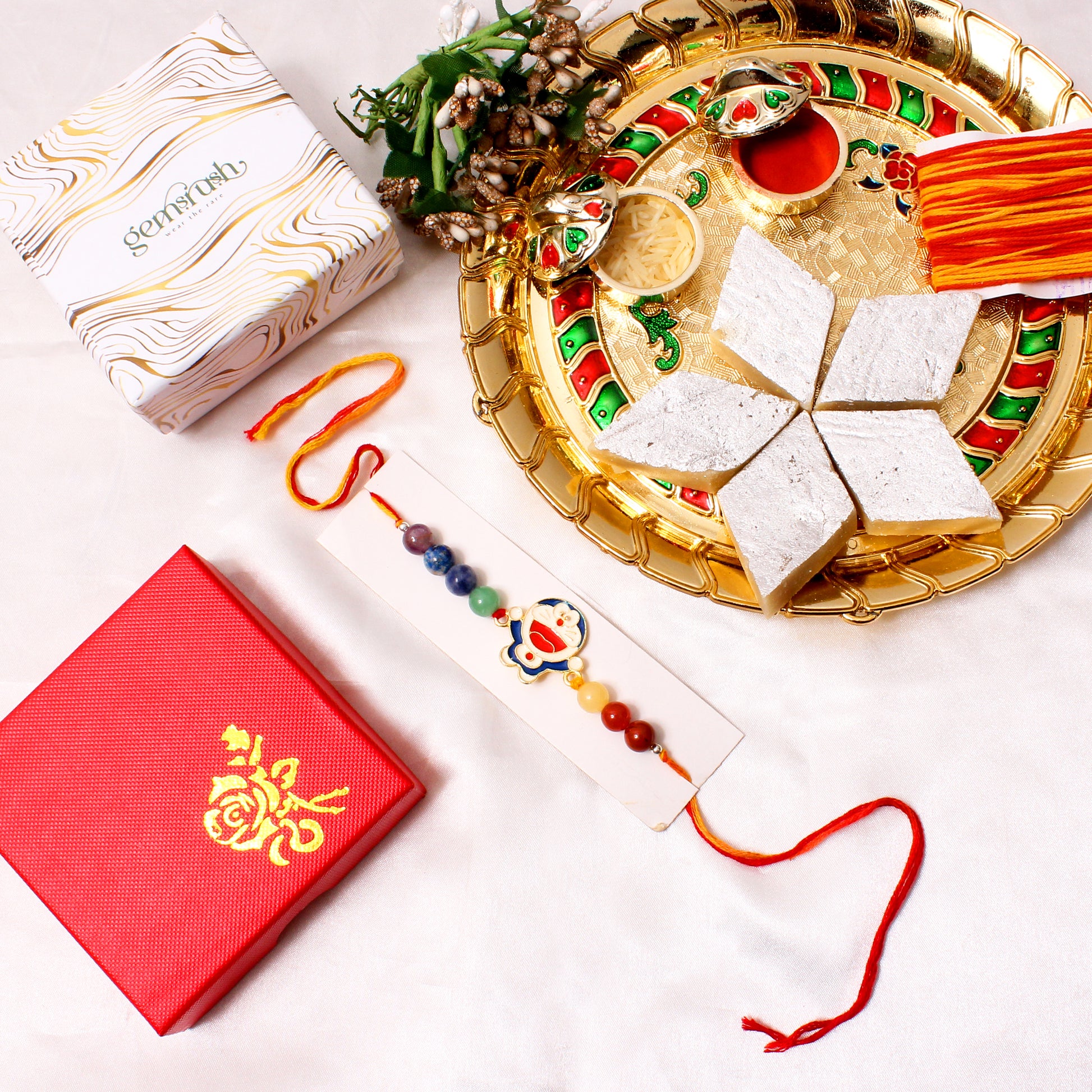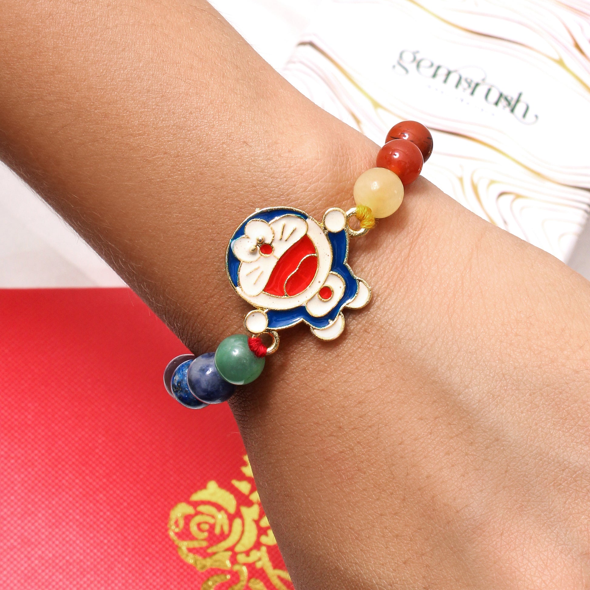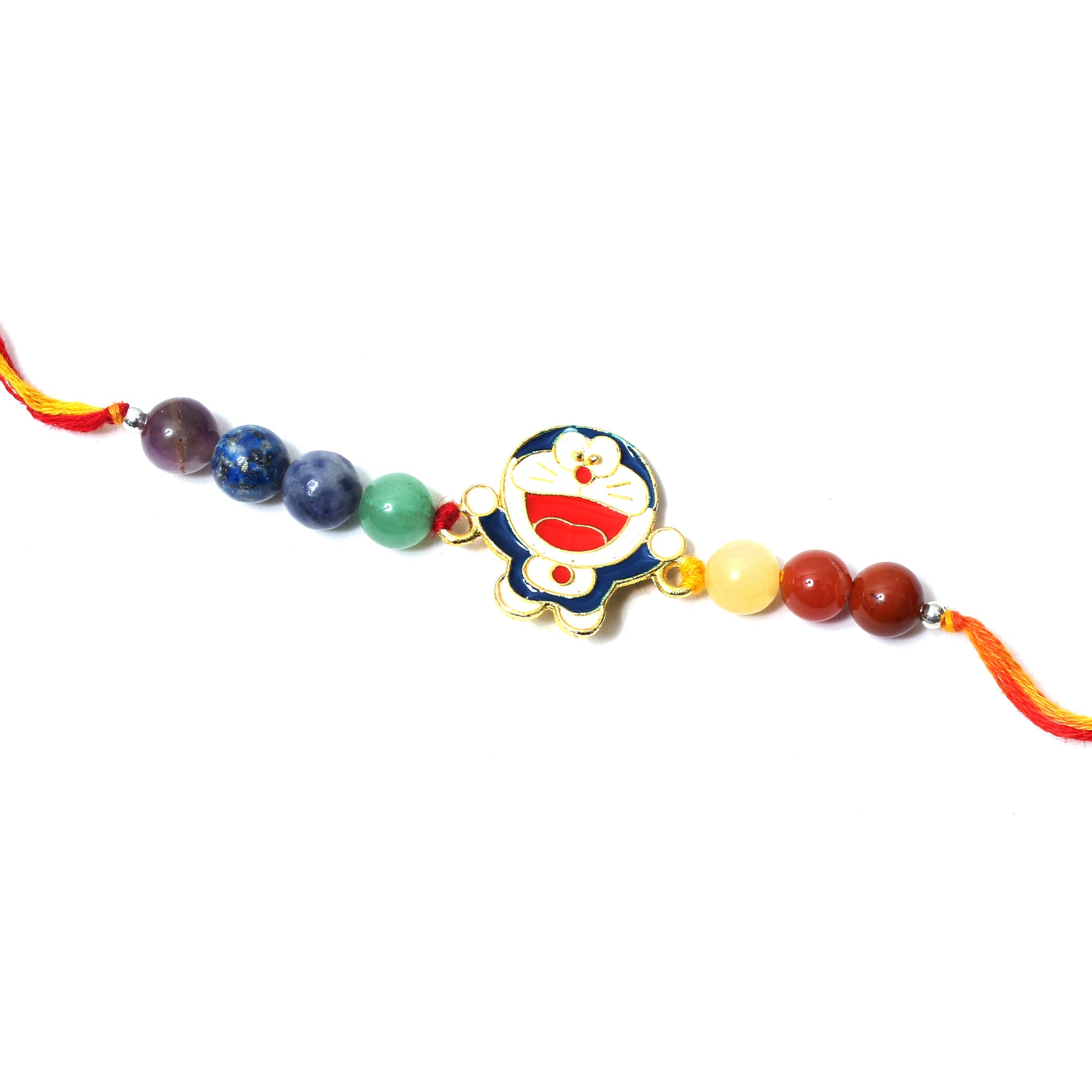 Doraemon Charm Gemstone Rakhi for Kids – With Natural Healing Beads & Playful Charm