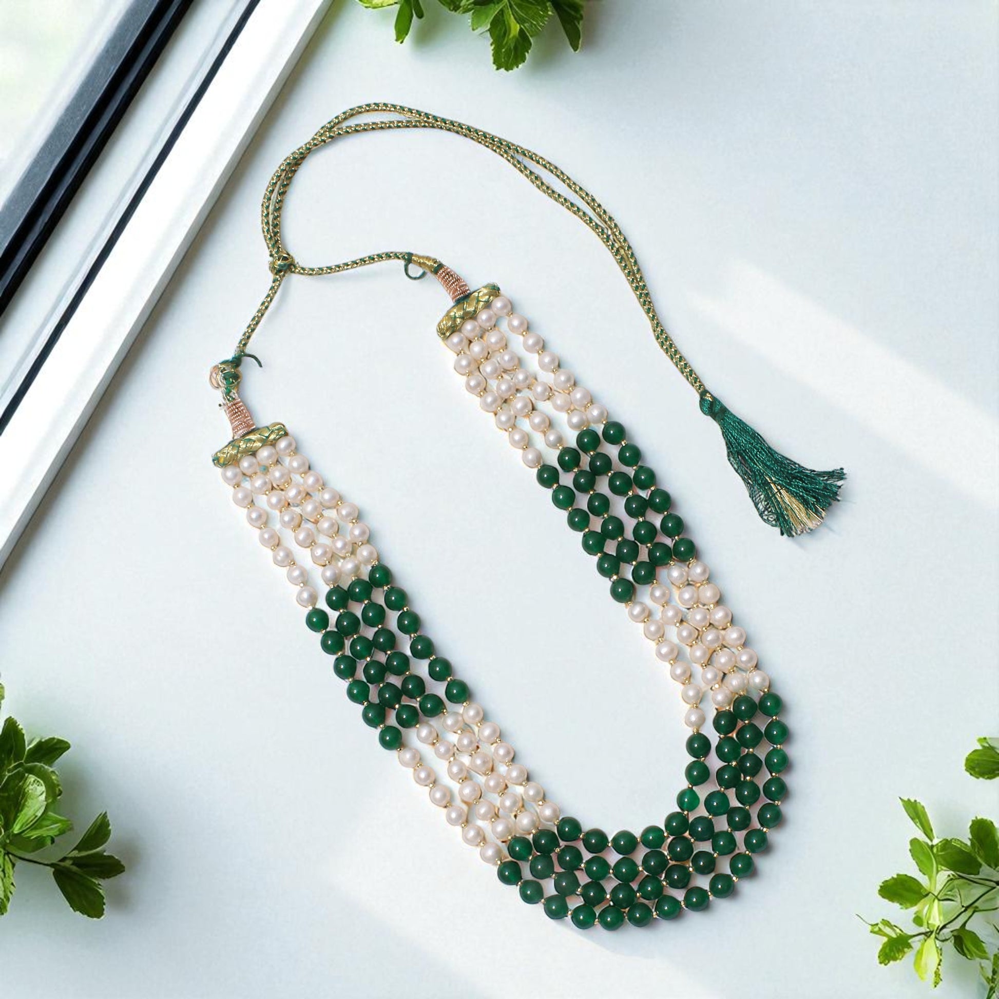 🔷🤍 Benefits of Elegant 4-Layer Green Jade, Pearl & Pyrite Sarafa Necklace 🔷🤍