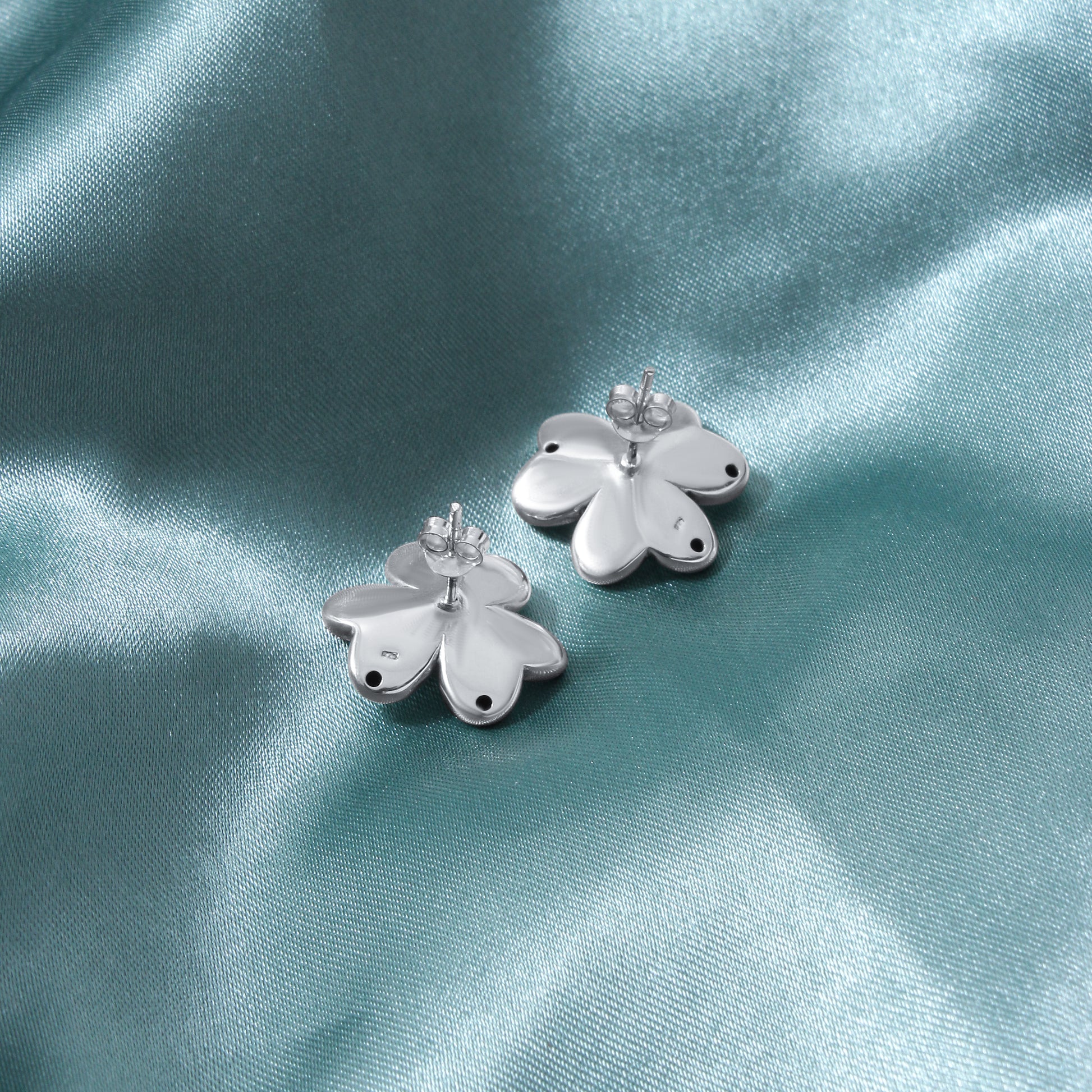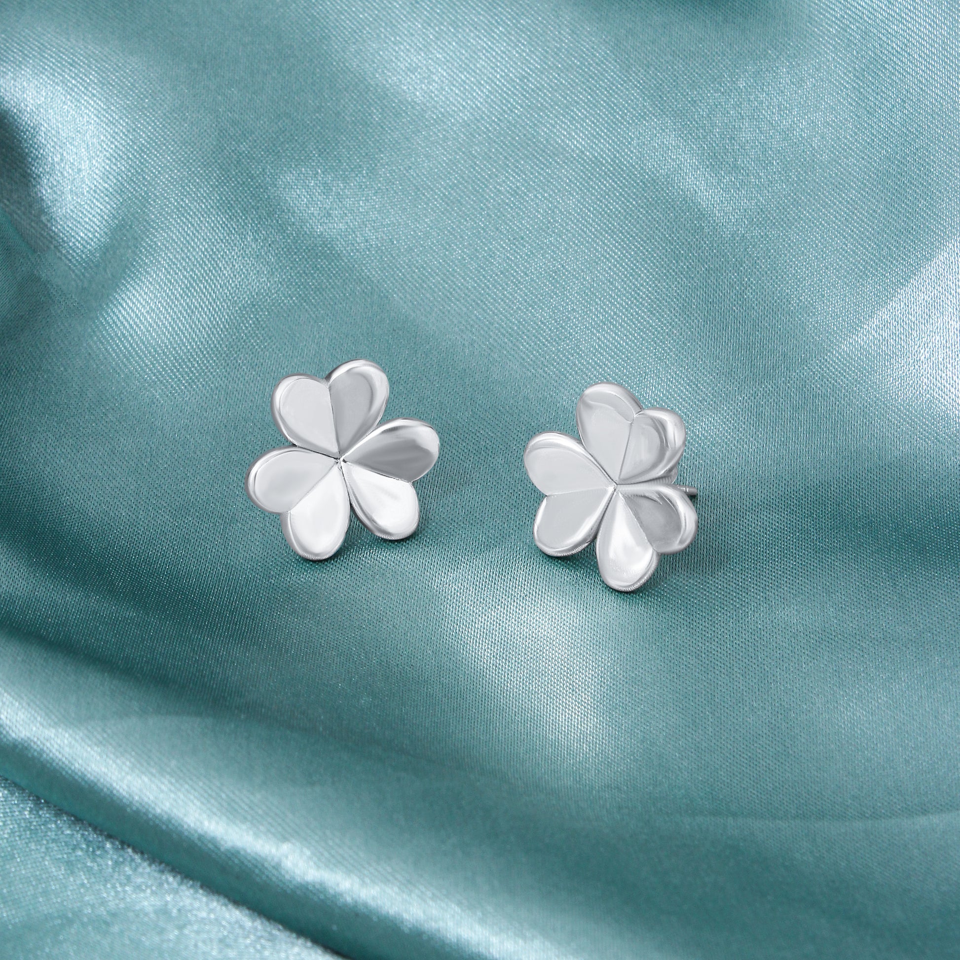 ITEM : 925 Sterling Silver Three-Leaf Stud Earrings