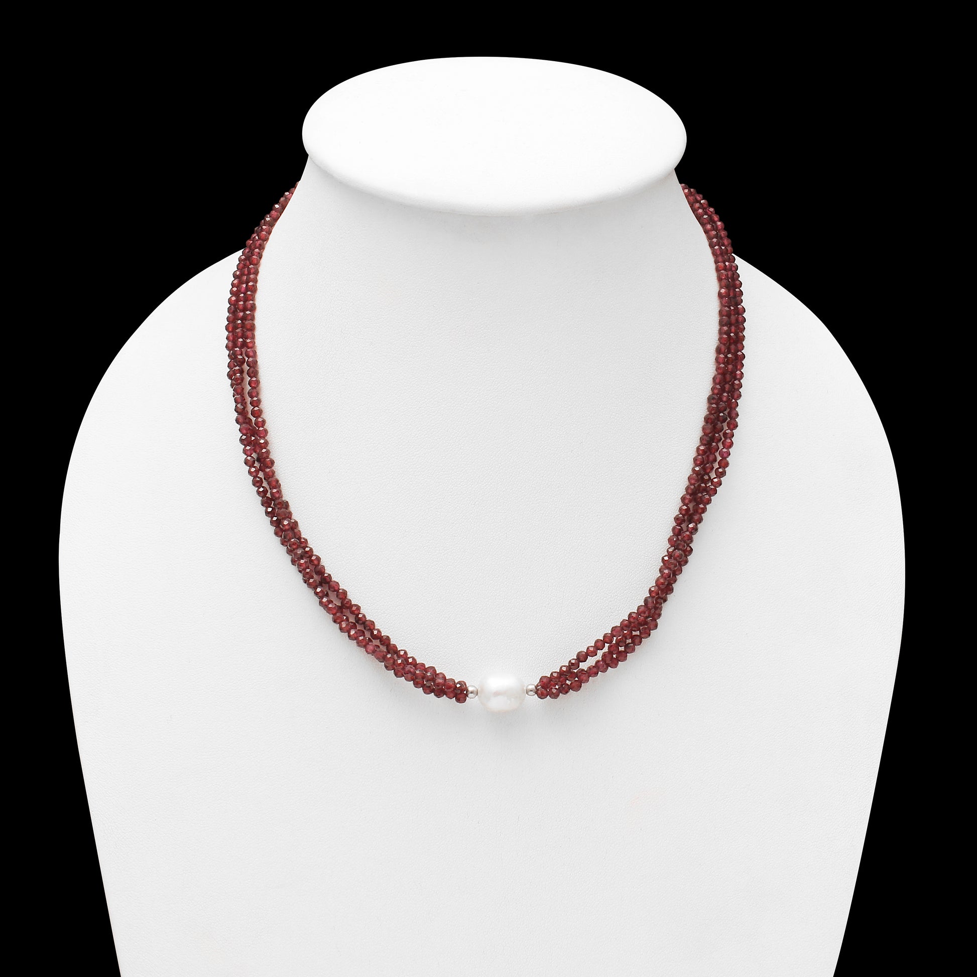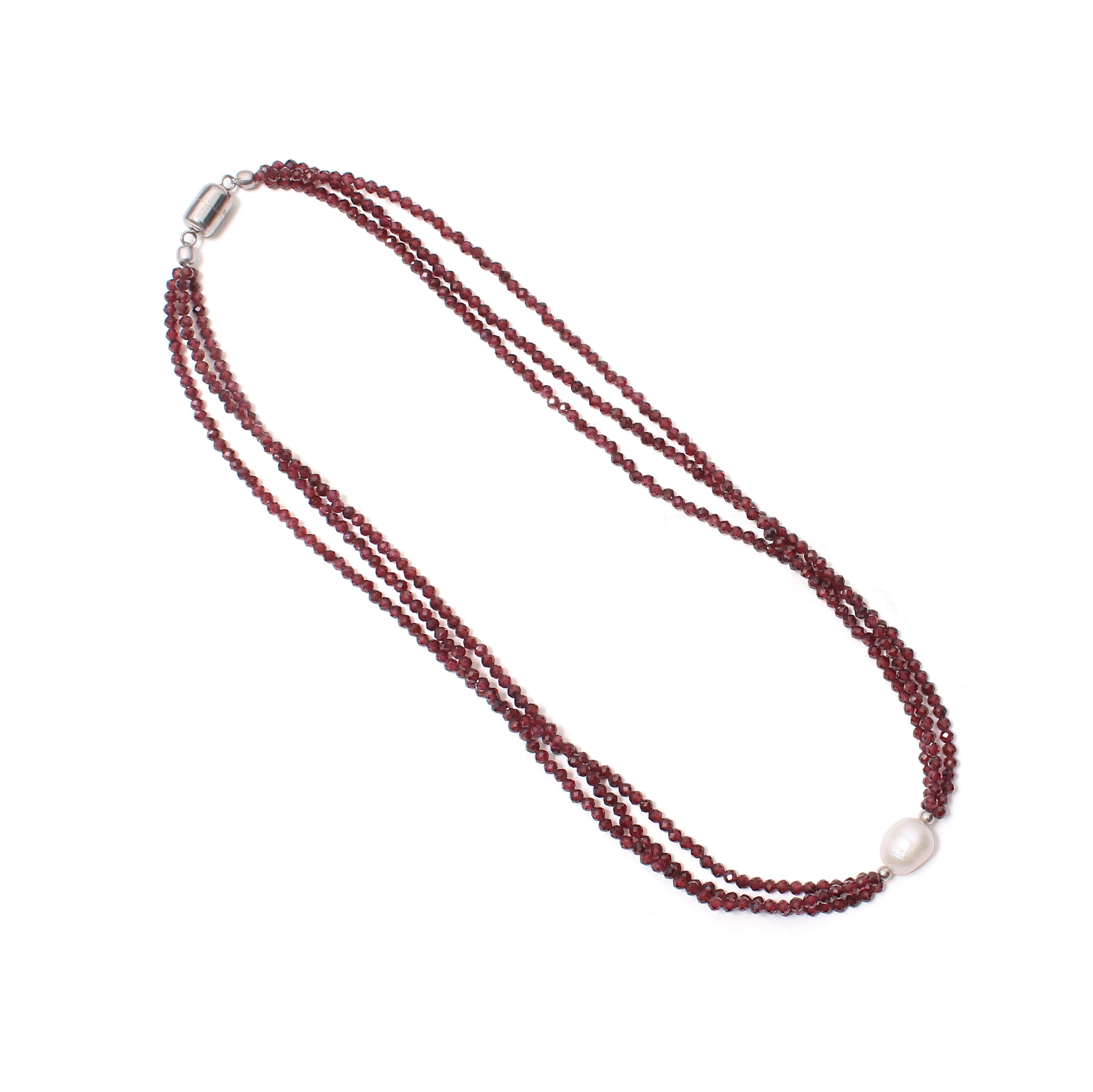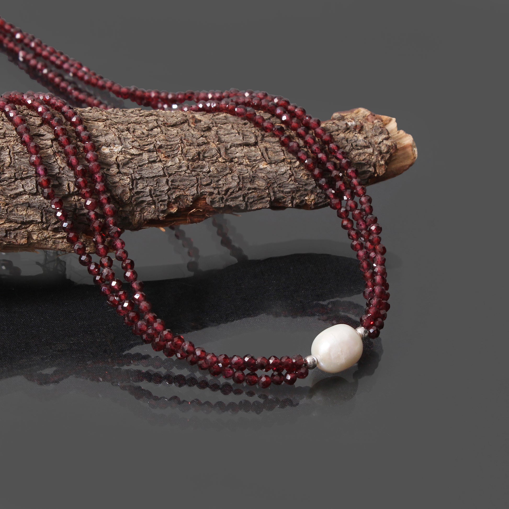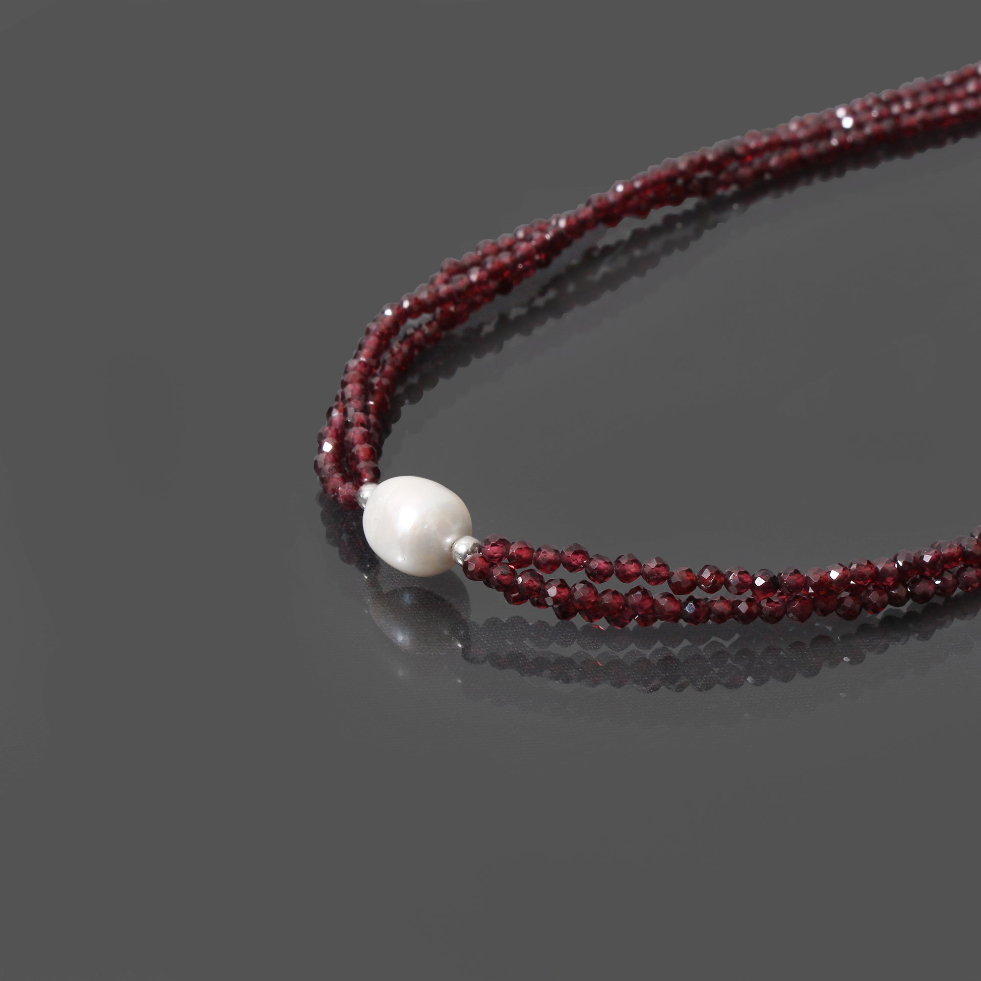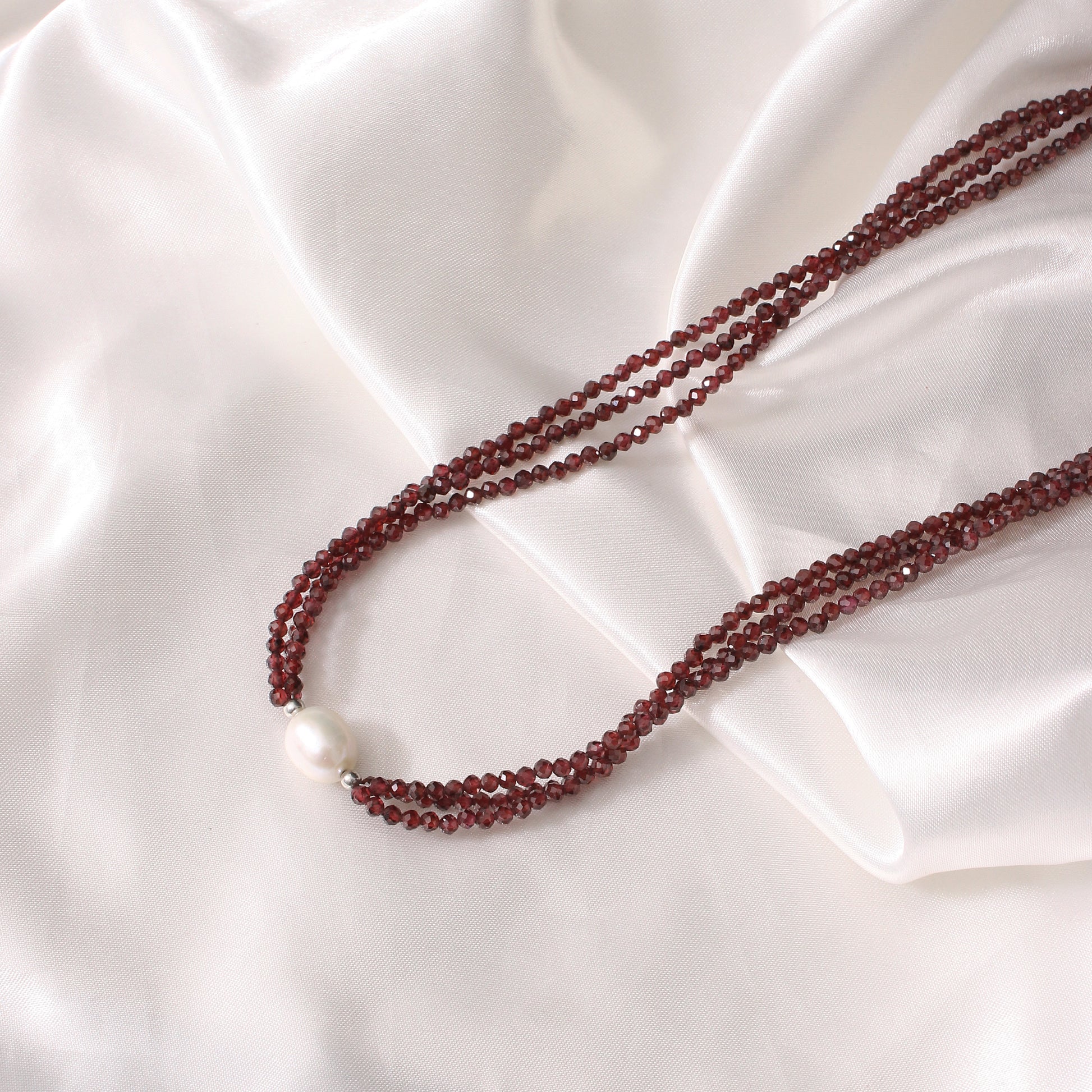 Add a touch of elegance with this handcrafted garnet and pearl necklace. Featuring vibrant garnet beads, a timeless pearl accent, and a secure sterling silver clasp, this multi-strand necklace symbolizes love, protection, and sophistication—perfect for January birthdays or any special occasion.