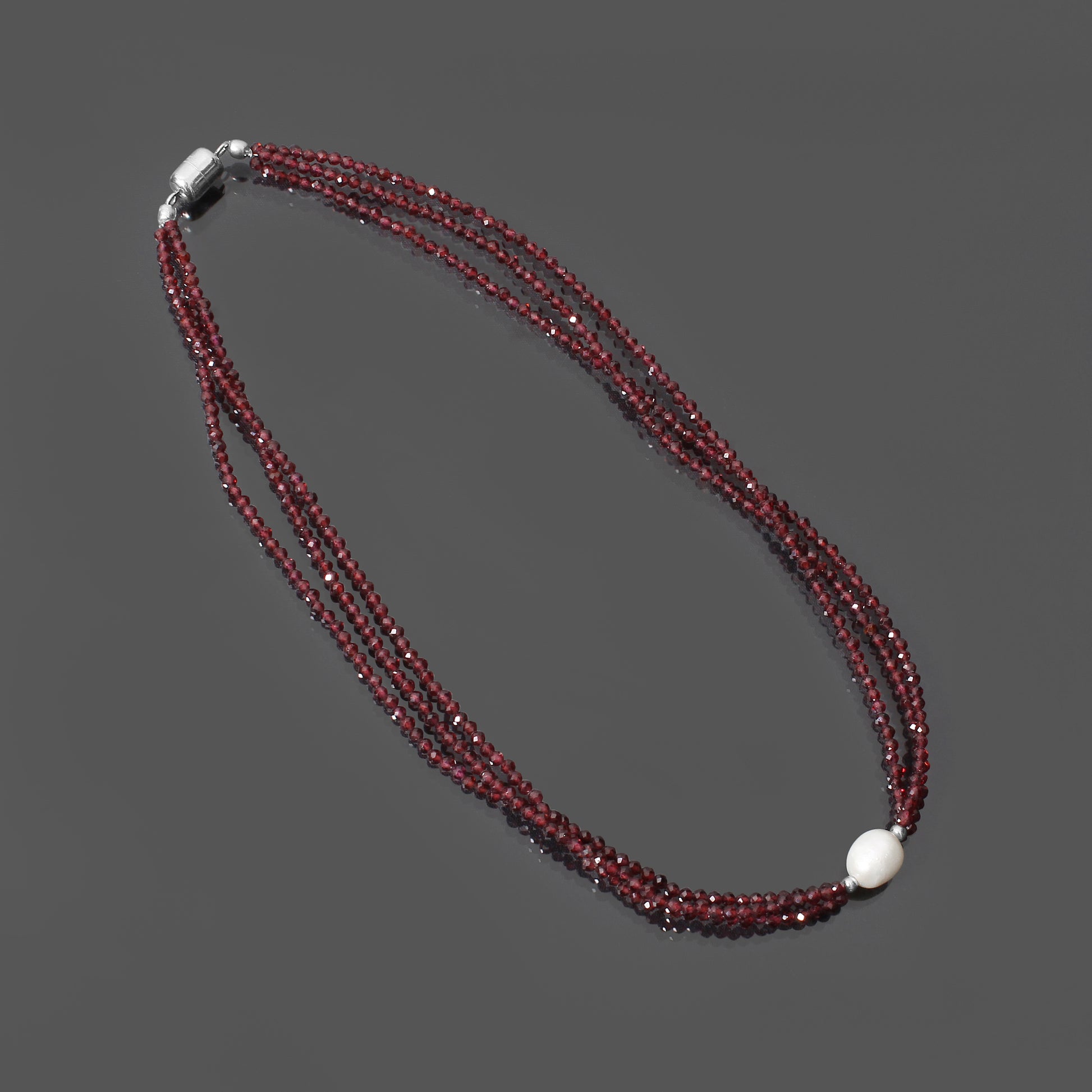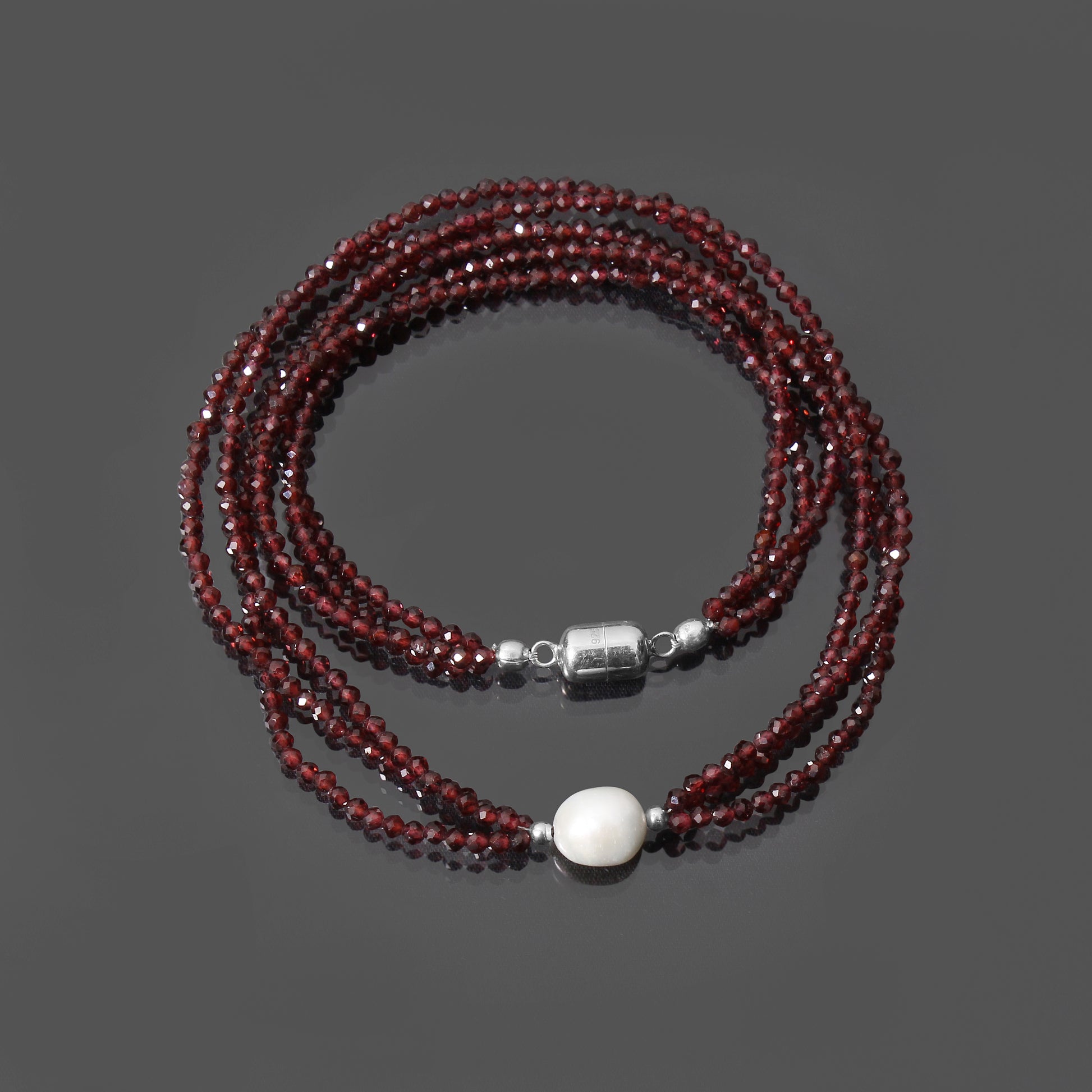 Elegant Multi-Strand Natural Garnet and Pearl Beaded Necklace with Sterling Silver Clasp – Jewelry for Women