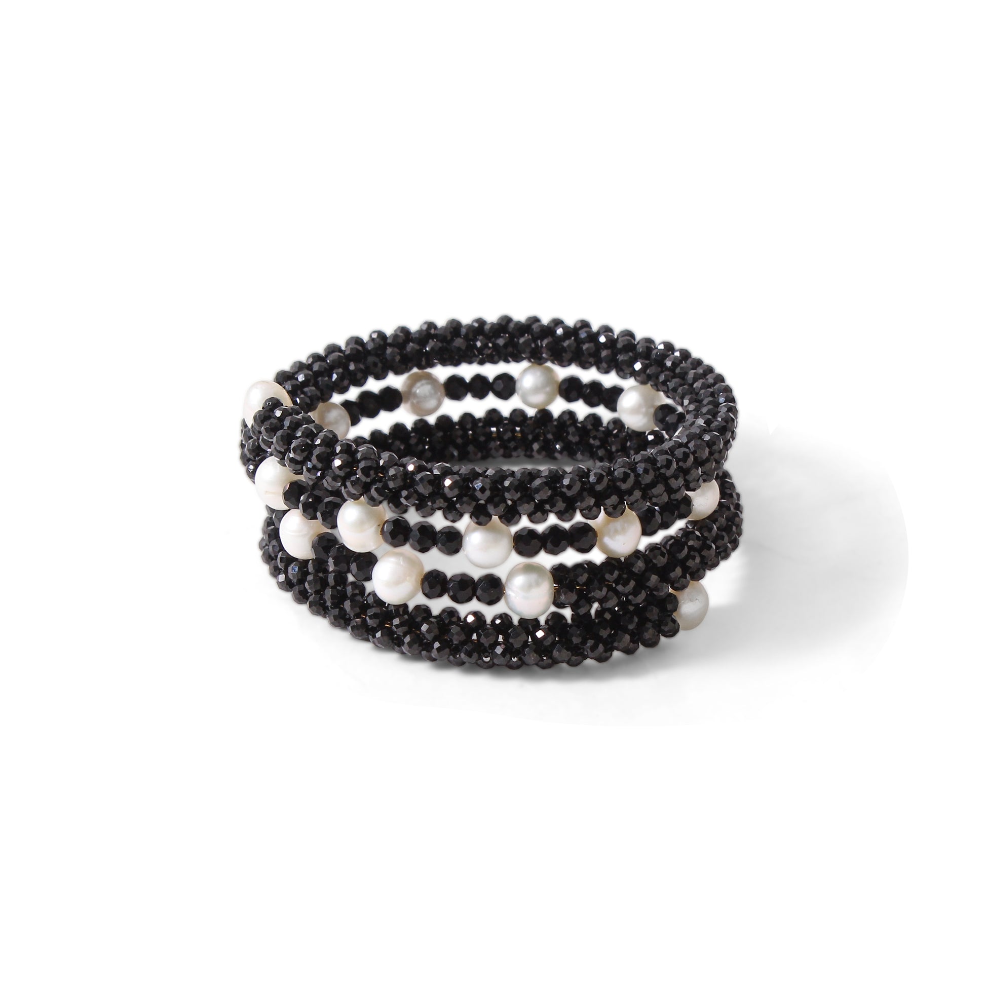 ITEM: Black Spinel and Pearl Wrap Style Bangle