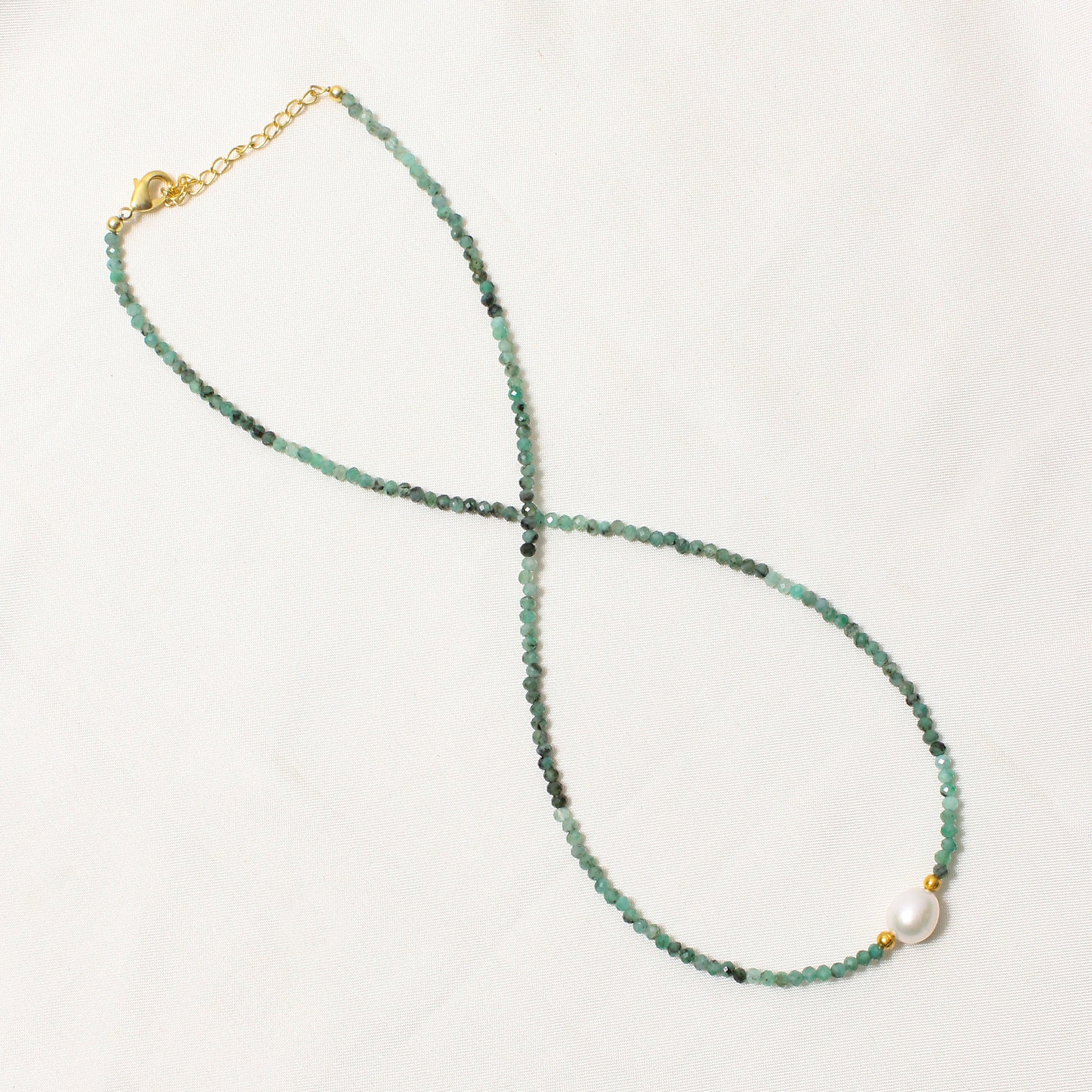 Elegant Natural Emerald & Pearl Beaded Necklace – Healing Green Gemstone Jewelry for Balance & Beauty