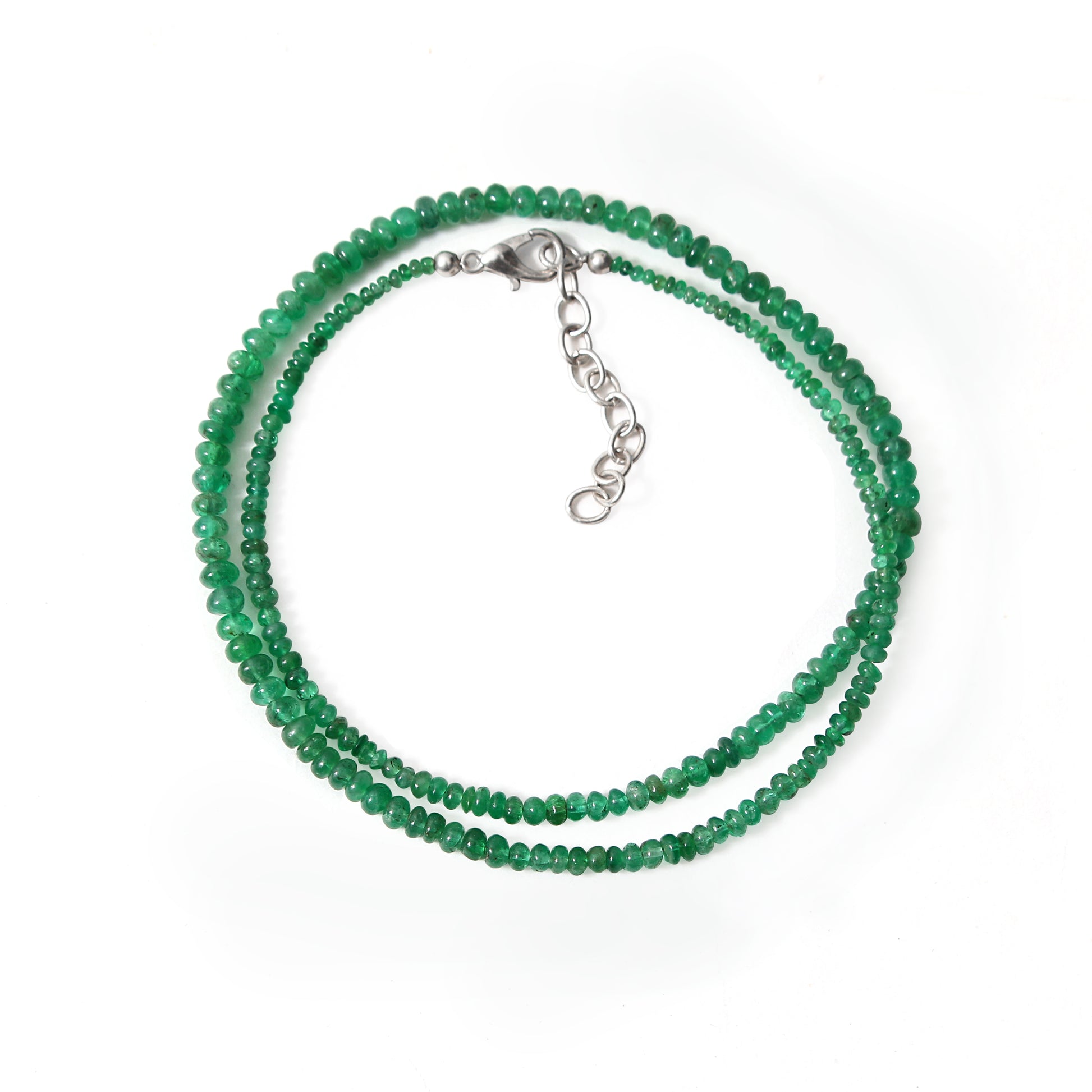 Crafted with premium 2–4 mm natural emerald smooth rondelle beads, this elegant necklace promotes emotional balance, prosperity, and heart chakra alignment. Emerald is known as the “Stone of Growth,” enhancing harmony, intuition, and inner peace while adding a refined, timeless touch to any outfit. Perfect for healing, meditation, or everyday luxury.