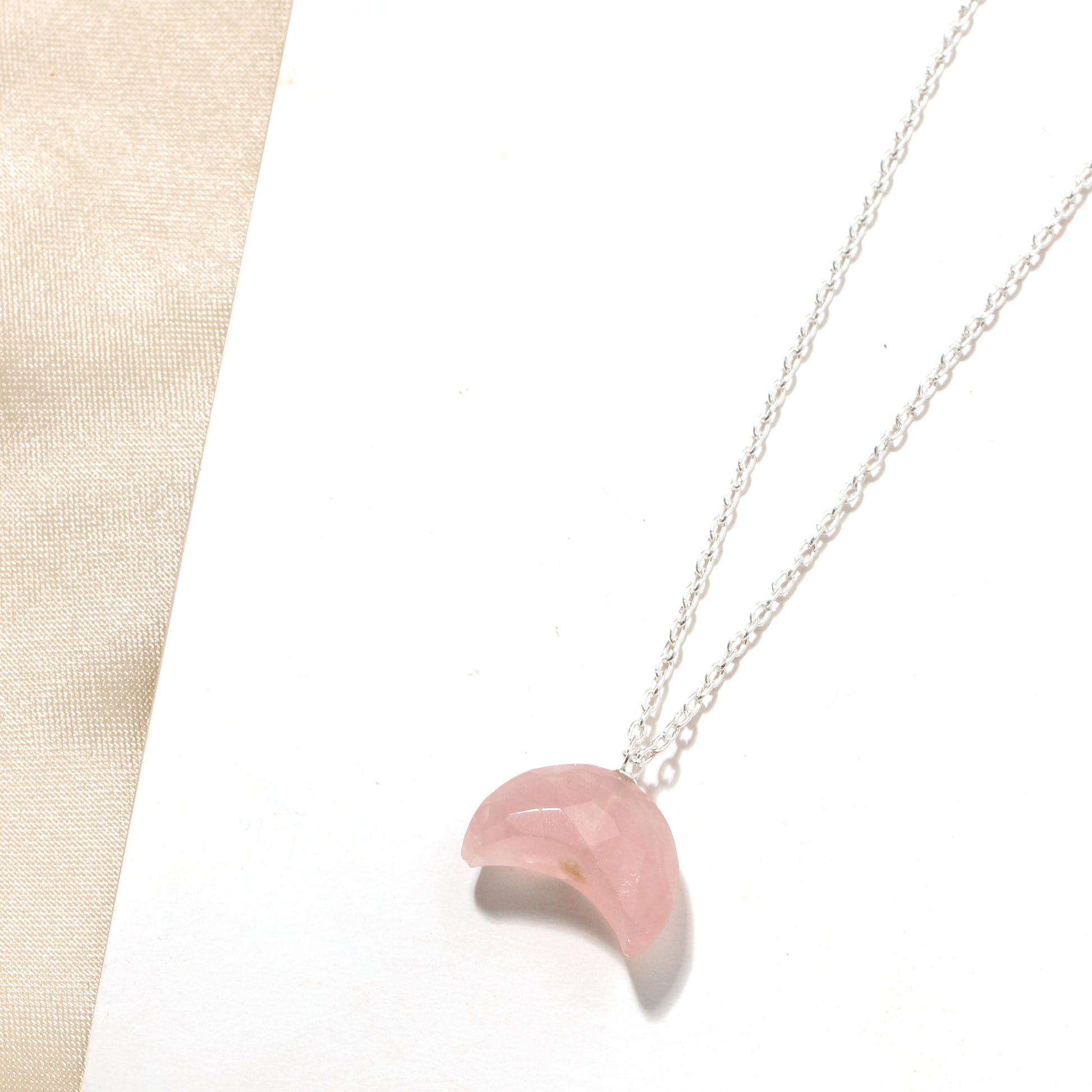 ITEM: Natural Rose Quartz Crescent Moon Pendant Necklace