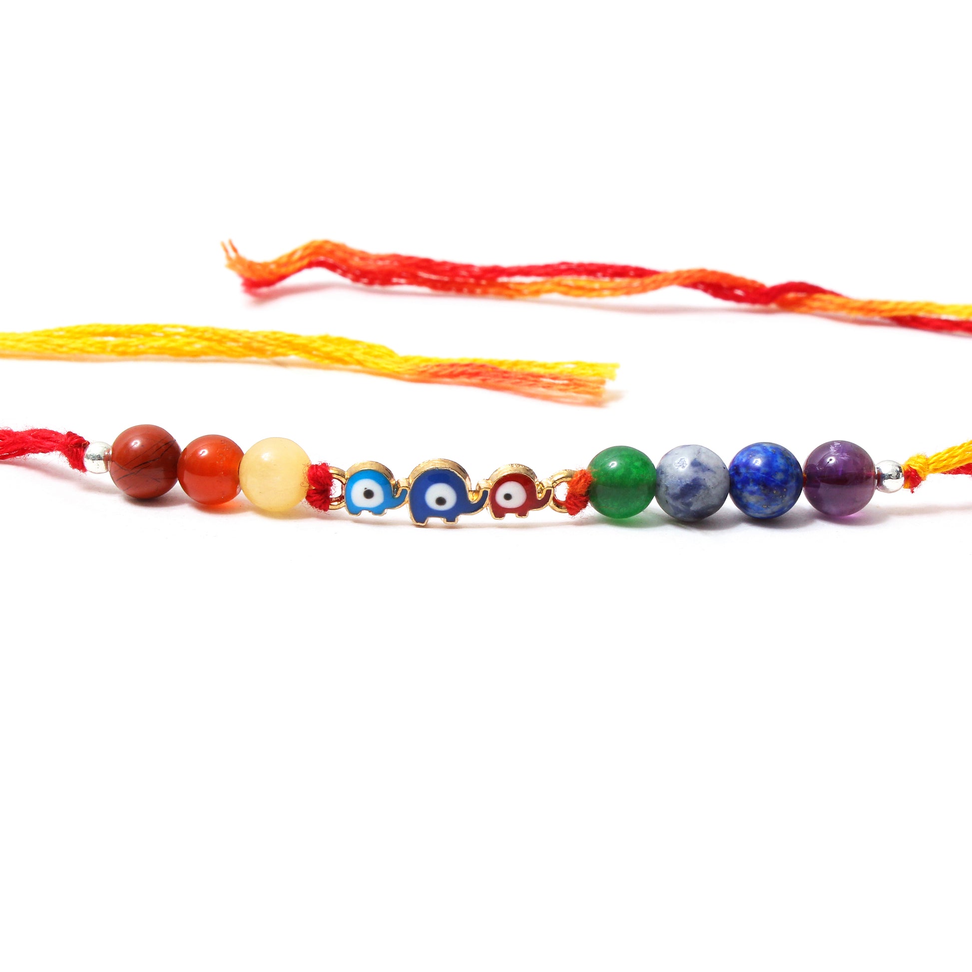 Elephant Evil Eye Charm Gemstone Rakhi – Amethyst, Lapis Lazuli, Aventurine & More for Protection & Positivity