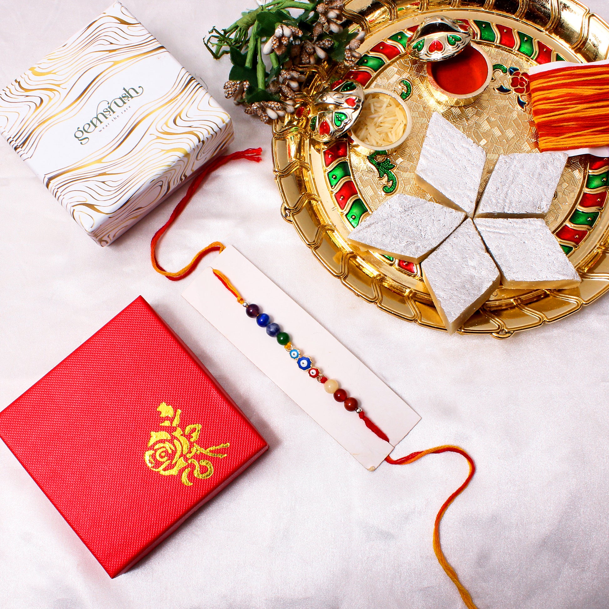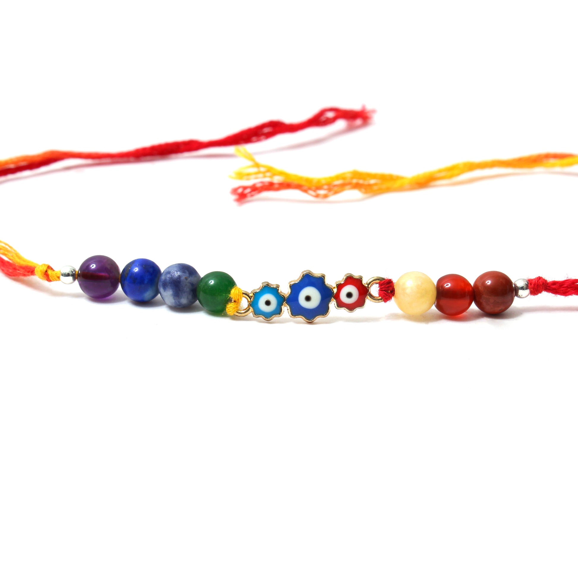 Flower Evil Eye Charm & Gemstone Rakhi – Protective Healing Crystal Rakhi for Raksha Bandhan