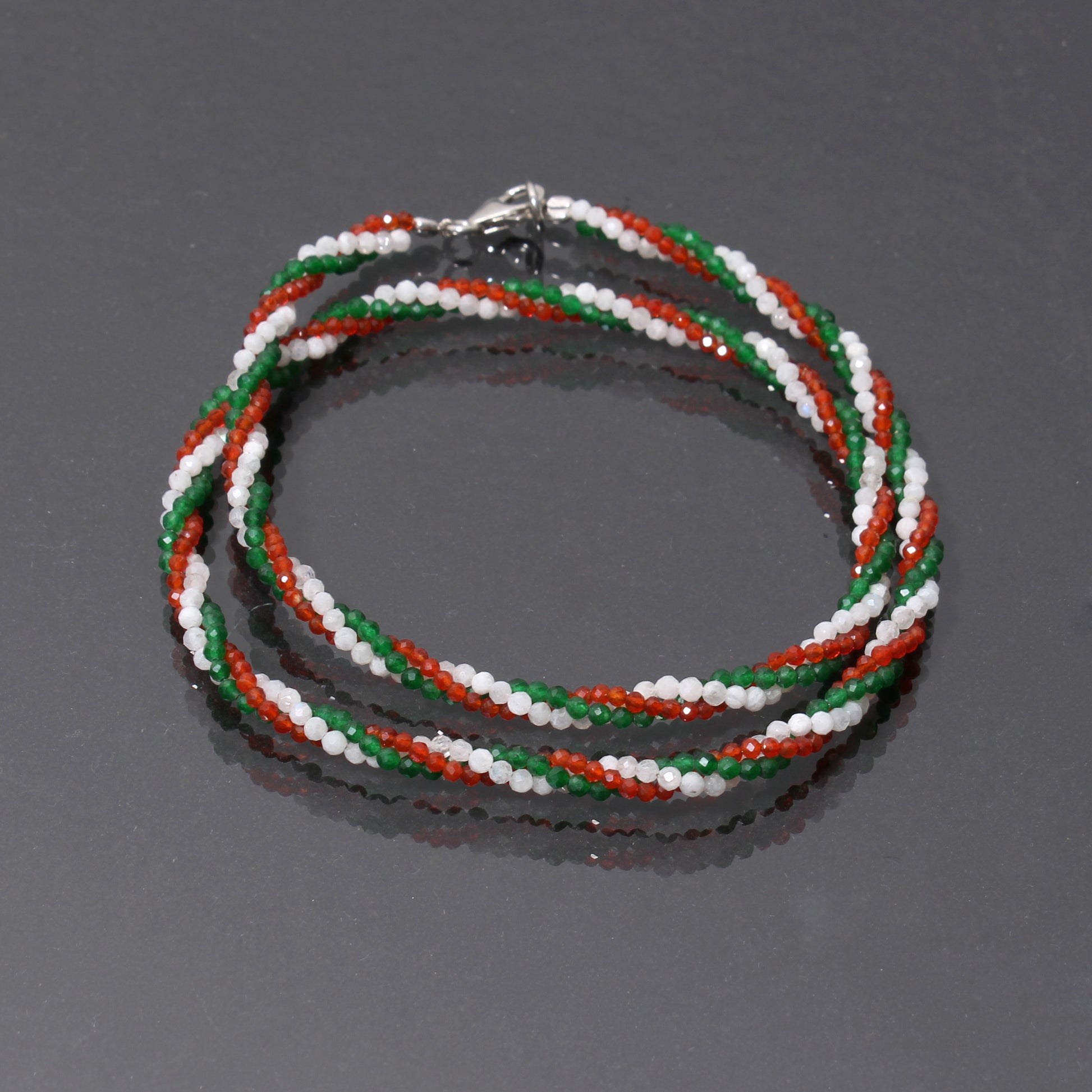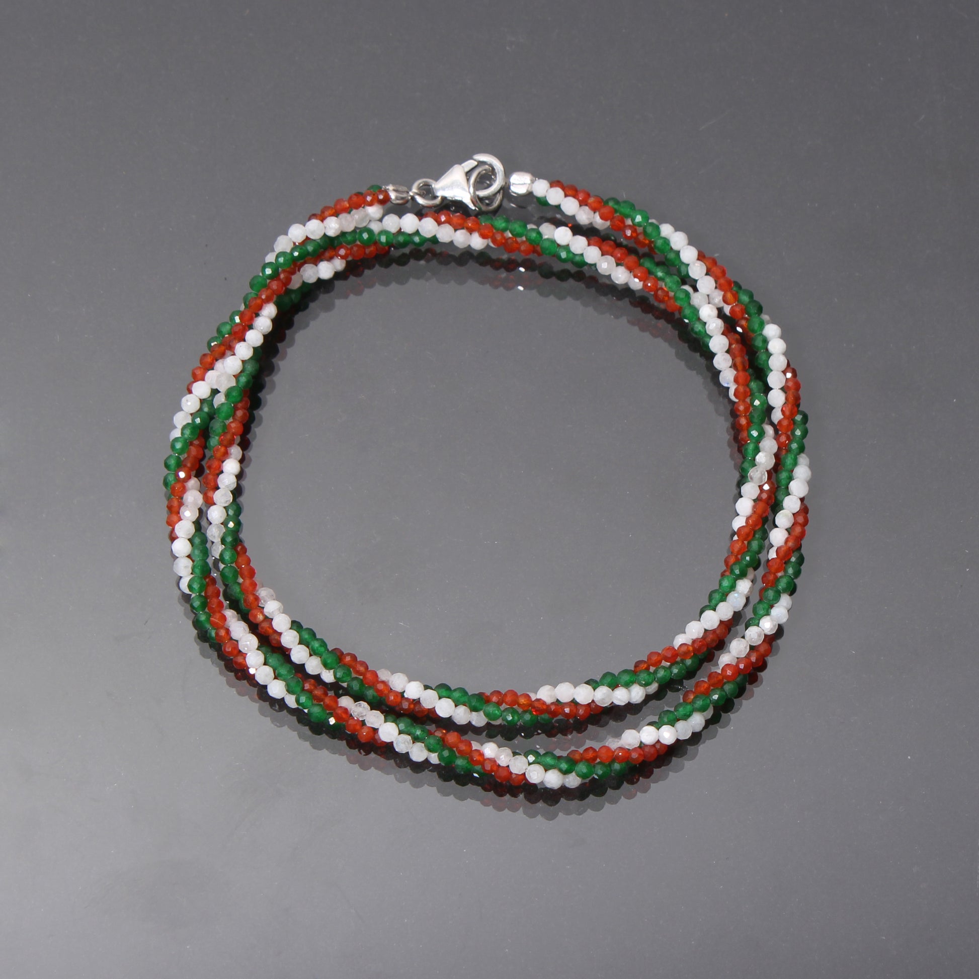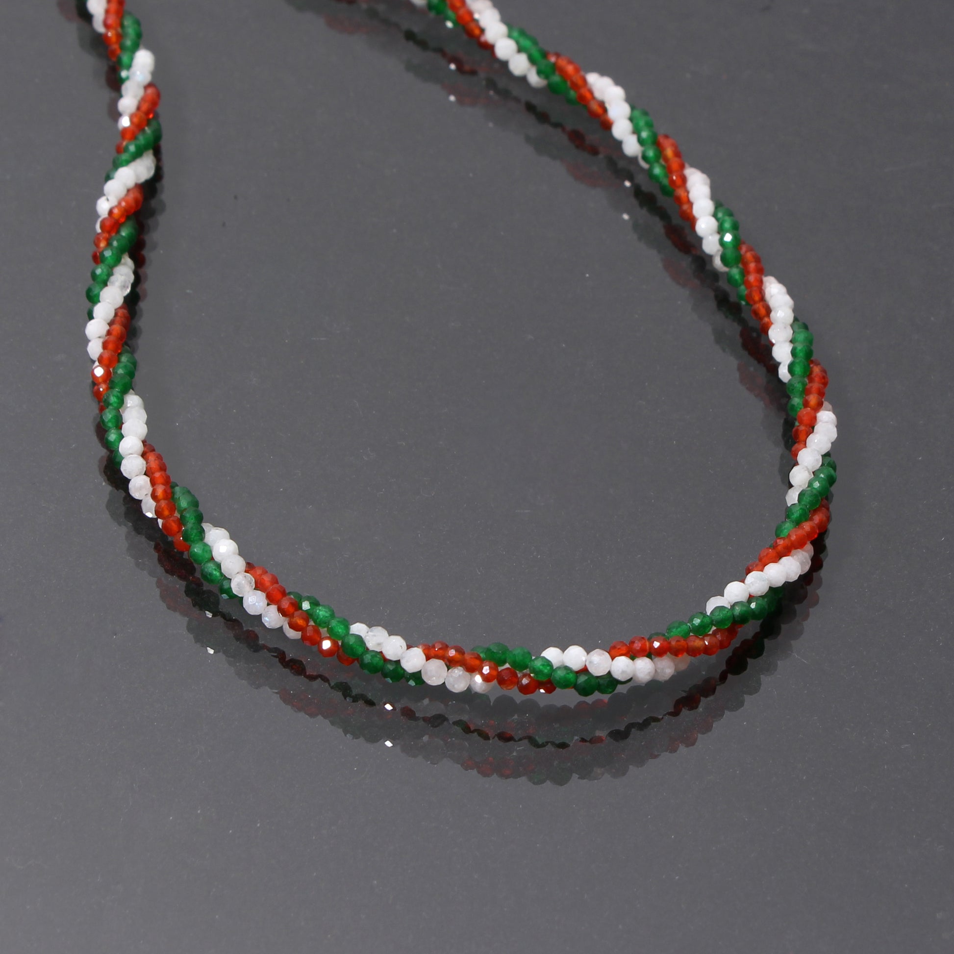 Green Onyx/ Carnelian/Moonstone Beads Twister Necklace For Independence Day Gifts