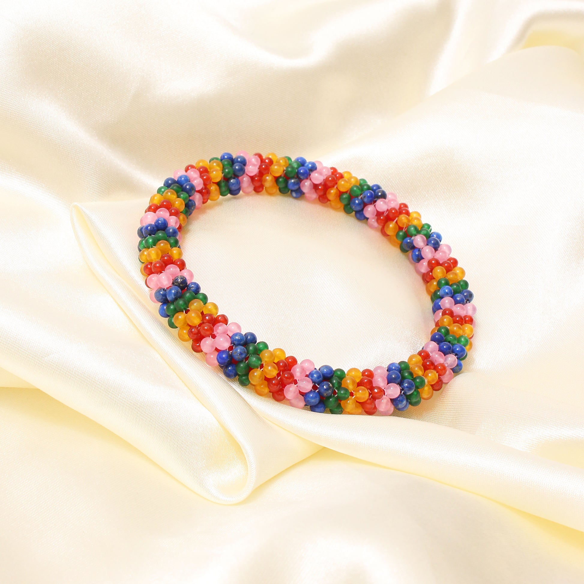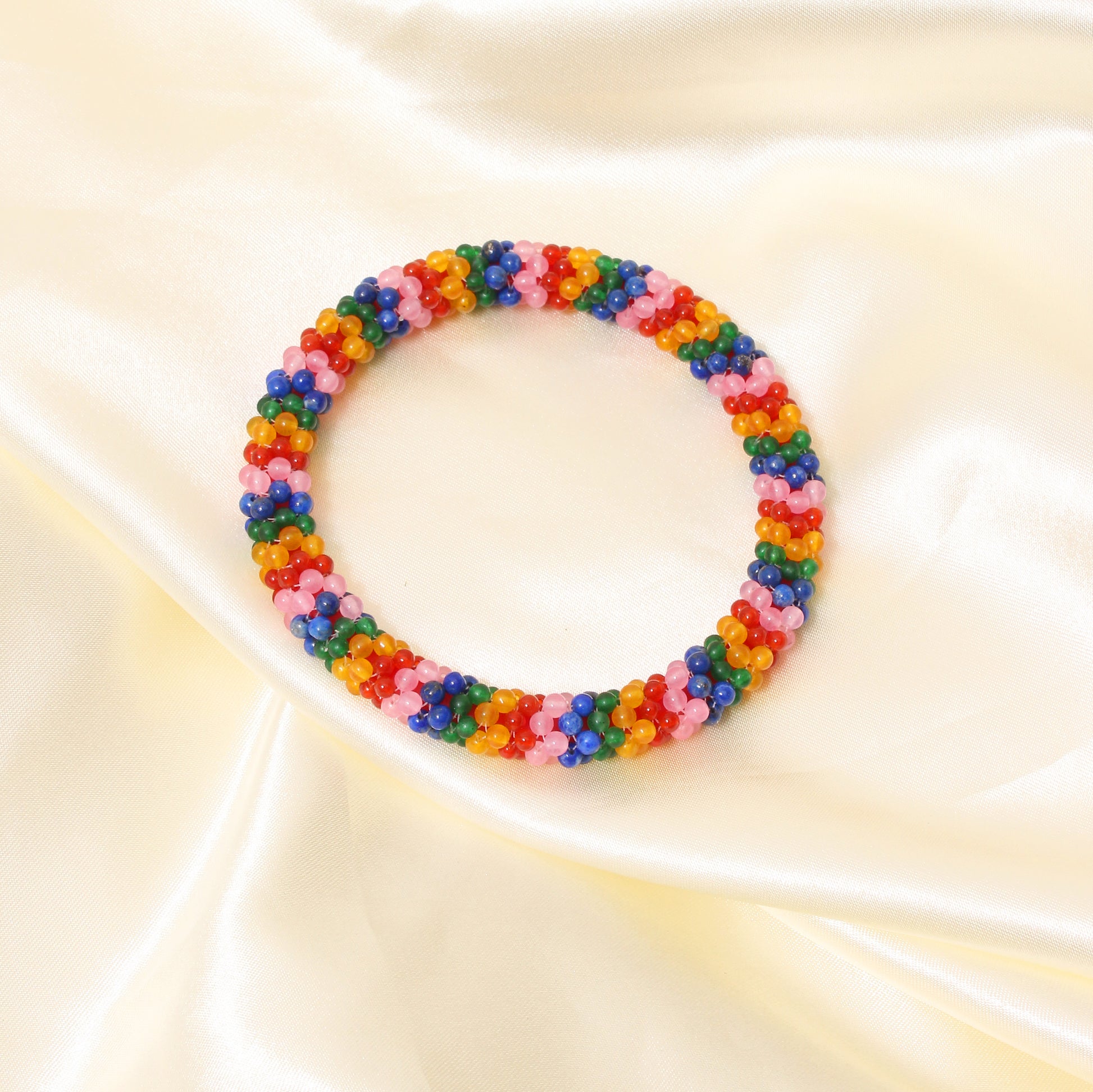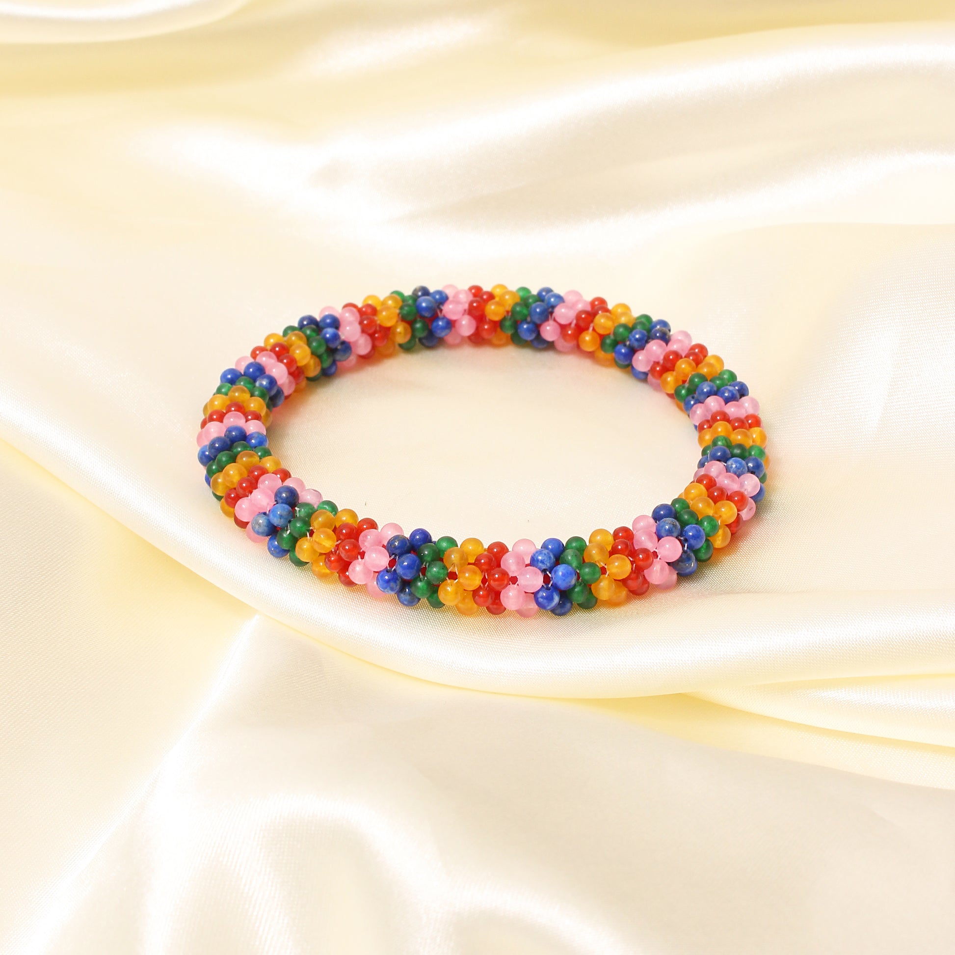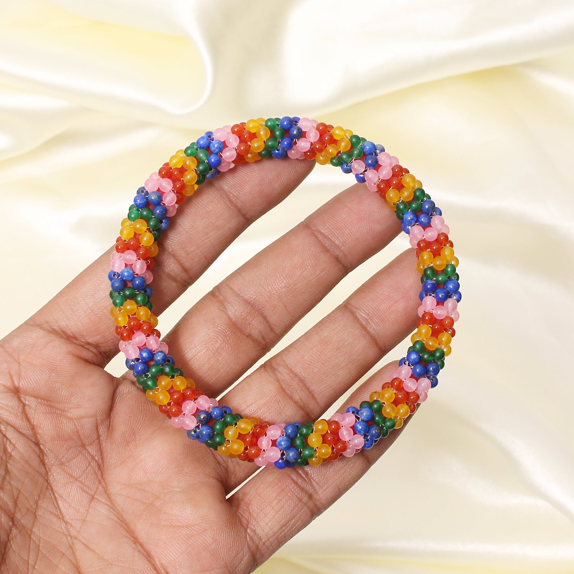 Add a splash of color to your look with this handcrafted multicolor beaded bangle. Designed with a mix of vibrant gemstone beads, this bracelet symbolizes joy, positivity, and creativity. Lightweight, comfortable, and stylish—perfect for daily wear or as a unique gift!