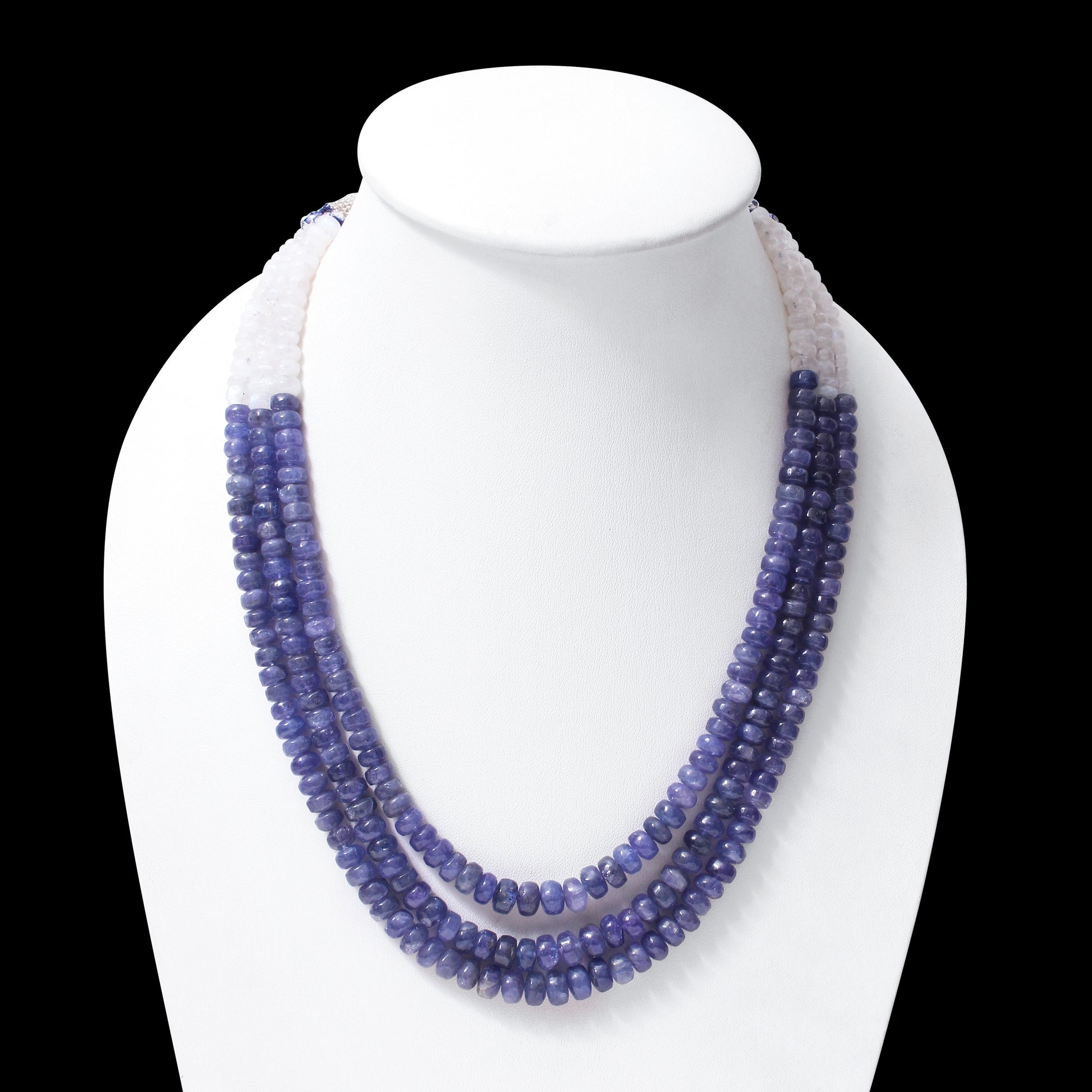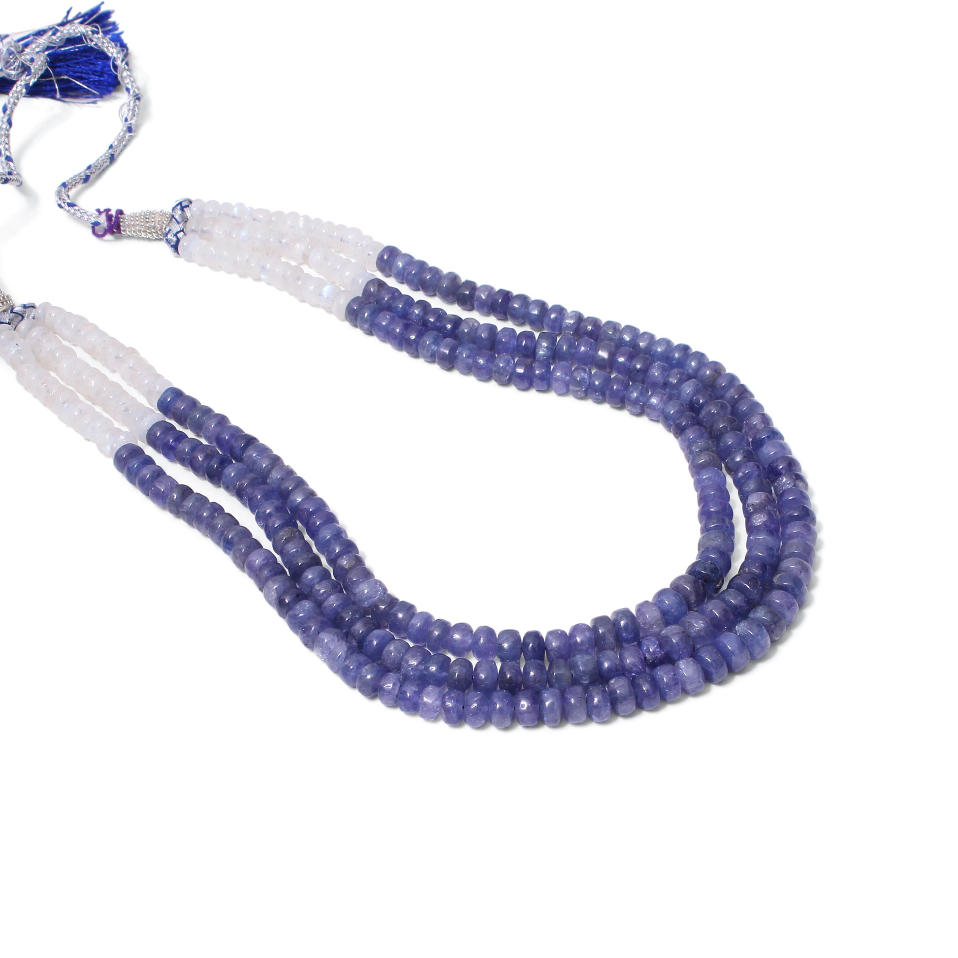 ITEM: Handmade Tanzanite & Moonstone 3-Layer Beaded Sarafa Necklace