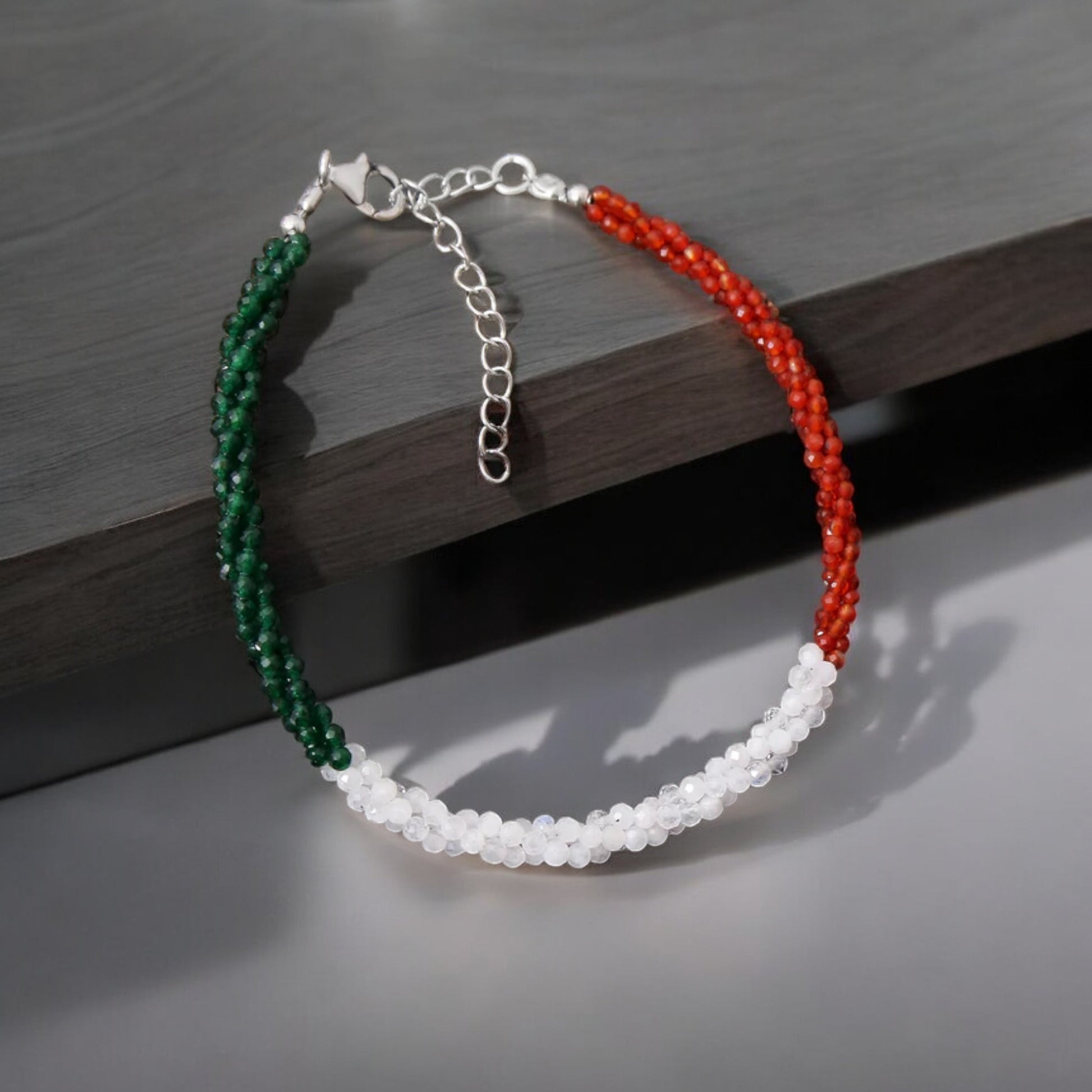 - It is a stylish and patriotic bracelet made with genuine gemstones in the colors of the Indian flag. This bracelet is perfect for celebrating Independence Day or any other special occasion. It is also a great way to show your patriotism and to represent your country.